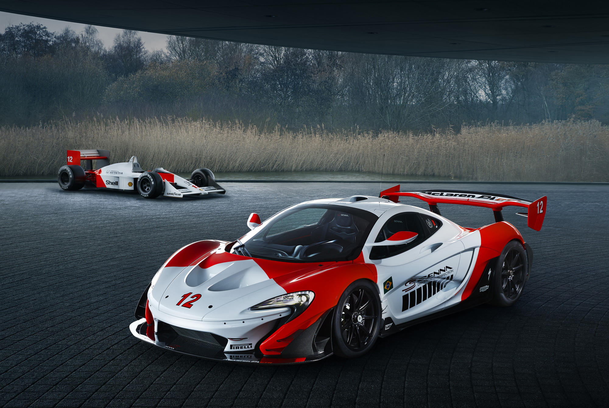 Заказчик этого автомобиля пожелал особым образом отметить 30 лет первому чемпионскому званию легендарного гонщика Формулы-1 Айртона Сенны. В 1988 году бразилец выиграл свой первый (из трёх) титул за рулём Макларена MP4/4 в цветах тогдашнего спонсора команды — Marlboro. Ныне аналогичную красно-белую раскраску вместе с рядом иных изменений получил уникальный образец гиперкара McLaren P1 GTR. Разумеется, над преобразованием машины с шасси номер 12 поколдовало отделение MSO, известное большими возможностями по персонализации Макларенов.