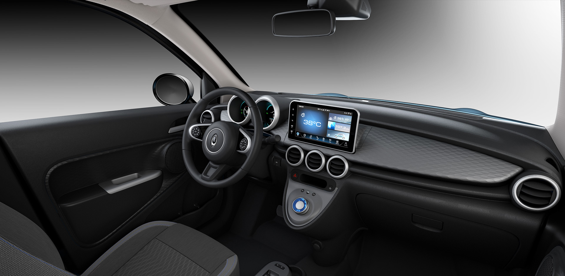 На хлипких дверях Оры R1 не нашлось места для клавиш стеклоподъёмников, и они пристроены на центральном тоннеле. Переднего багажника нет, а задний совсем крошечный (объём не указан). Салон — строго четырёхместный. В богатые комплектации входят шесть подушек безопасности, камера заднего вида, медиацентр с навигатором, распознаванием голоса и интеграцией смартфона, дистанционные диагностика и запуск кондиционера. Заказанные сейчас электрокары китайские покупатели получат в 2019 году.