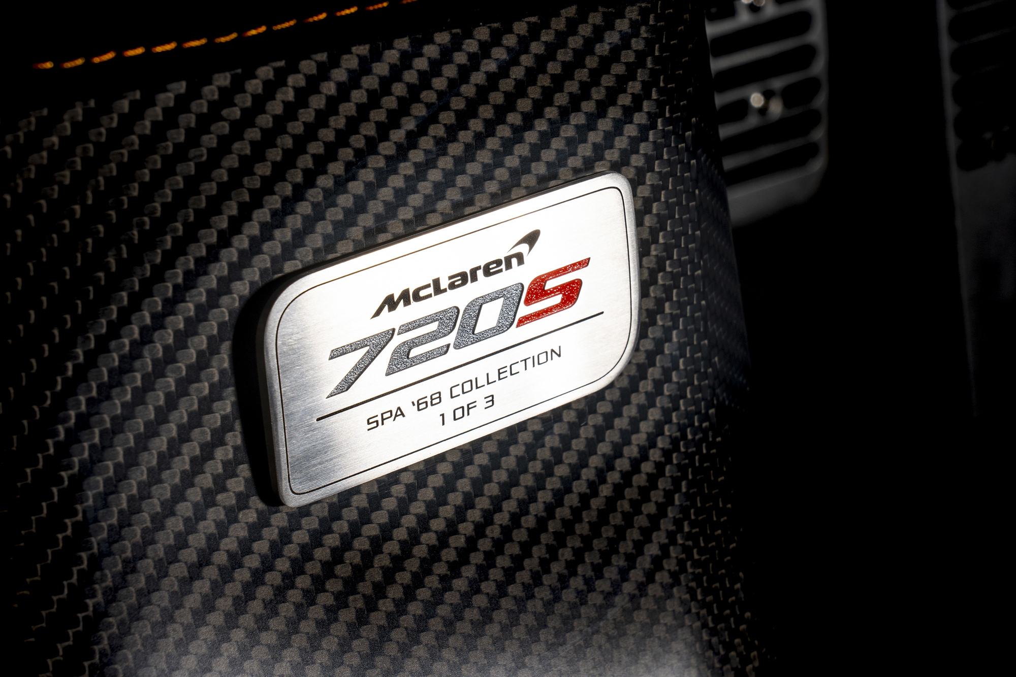 Для столь значимой даты особые элементы в машине немногочисленны (кажется, их не больше, чем в уникальном прошлогоднем 720-м с цитатой Брюса). Окраска, серебряная надпись Spa 1968 на брелоке цвета Anniversary Orange, серебристый же контур трассы на борту (перед задними колёсами), причём кольца именно 1968 года, а в салоне — памятная табличка с номером машины в лимитированной серии и снова рисунок трассы, вышитый на подголовниках.