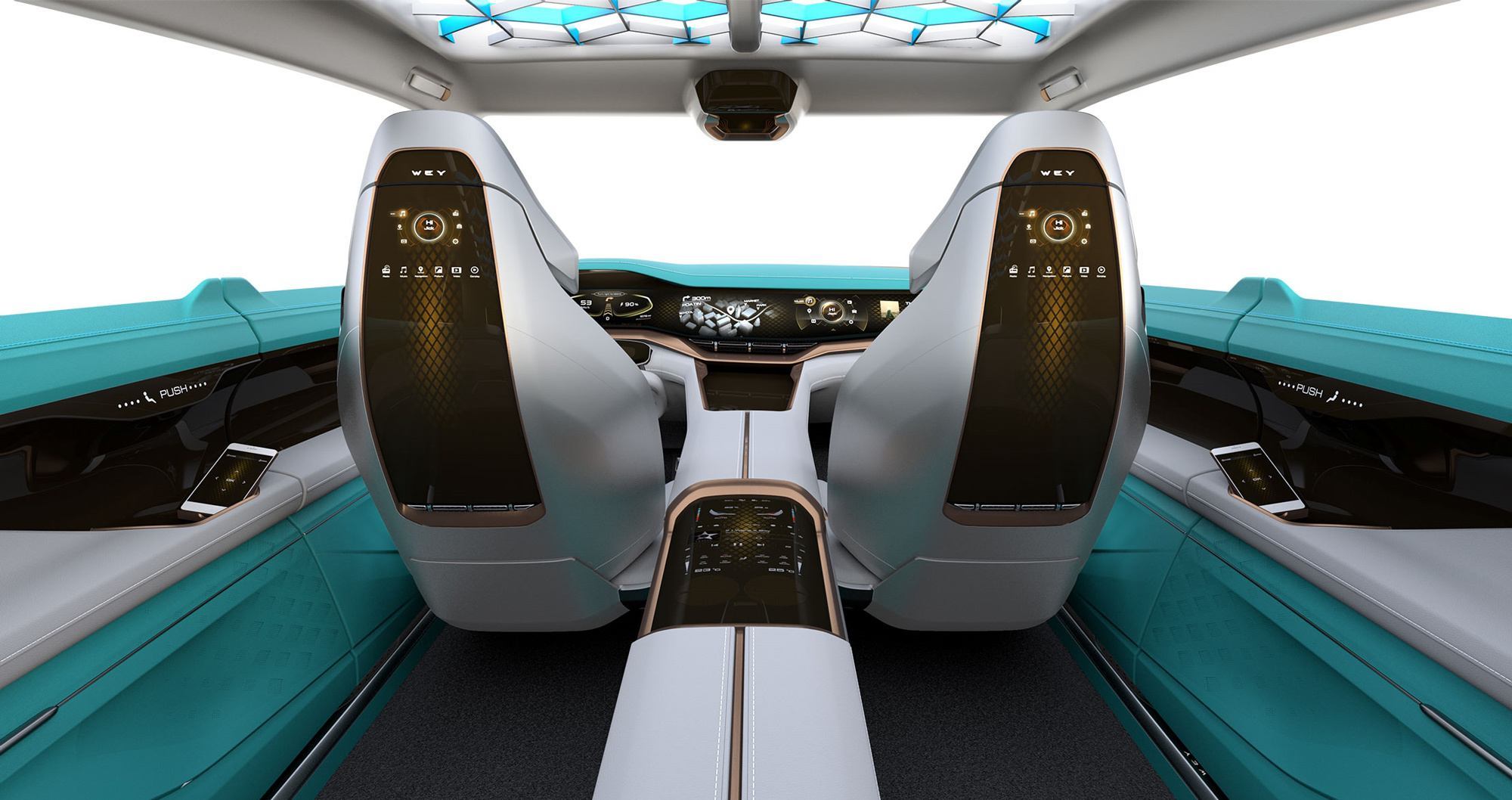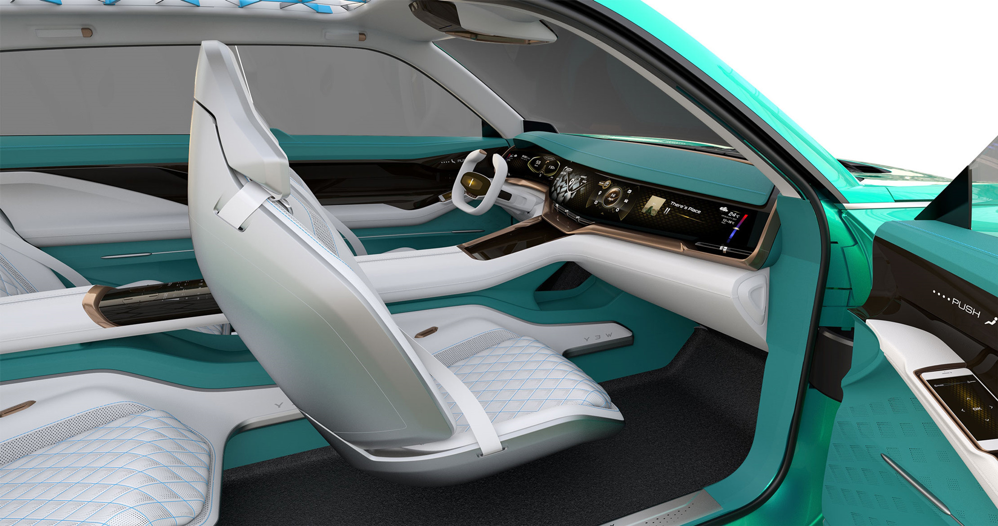 Новые картинки подтвердили опасения, что концепт — неходовой макет, напрочь оторванный от реальности. Интерьерщикам, кажется, нужно было под завязку набить салон сенсорными экранами, и они превратили в дисплей всю переднюю панель, центральный тоннель, спинки кресел, дверные карты. В коннект-карах иначе нельзя.