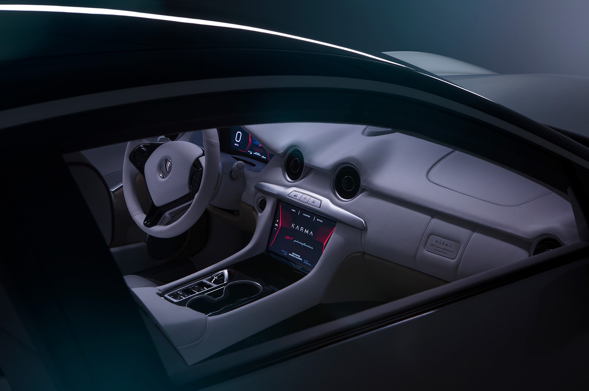 Третья премьера — шоу-кар Karma SC1 Vision Concept, созданный без участия Пинифарины. Это взгляд в будущее, уже сугубо электрическое. Такой машине, по утверждению создателей, не обойтись без систем распознавания лиц и слежения за взглядом водителя, проекционного дисплея с дополненной реальностью и возможности подключения комплекса автономного вождения. Что из этого действительно работает, а что существует только на бумаге, не сообщается.