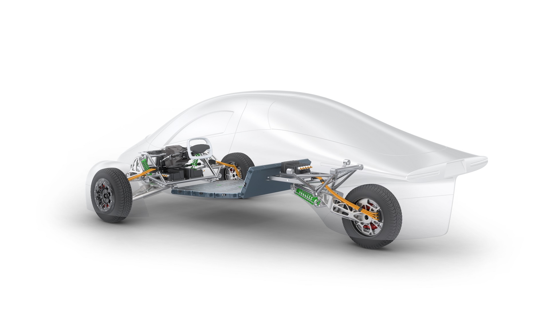 В новой Аптере будут трудиться три электрических мотор-колеса по 50 кВт (68 л.с.) каждый. Эффективность будет оцениваться при включении только двух передних, третий, видимо, должен подключаться при интенсивных разгонах. Американцы хотят предложить покупателям несколько разных по ёмкости тяговых батарей. На данный момент названы три варианта: на 40, 60 и 100 кВт•ч.