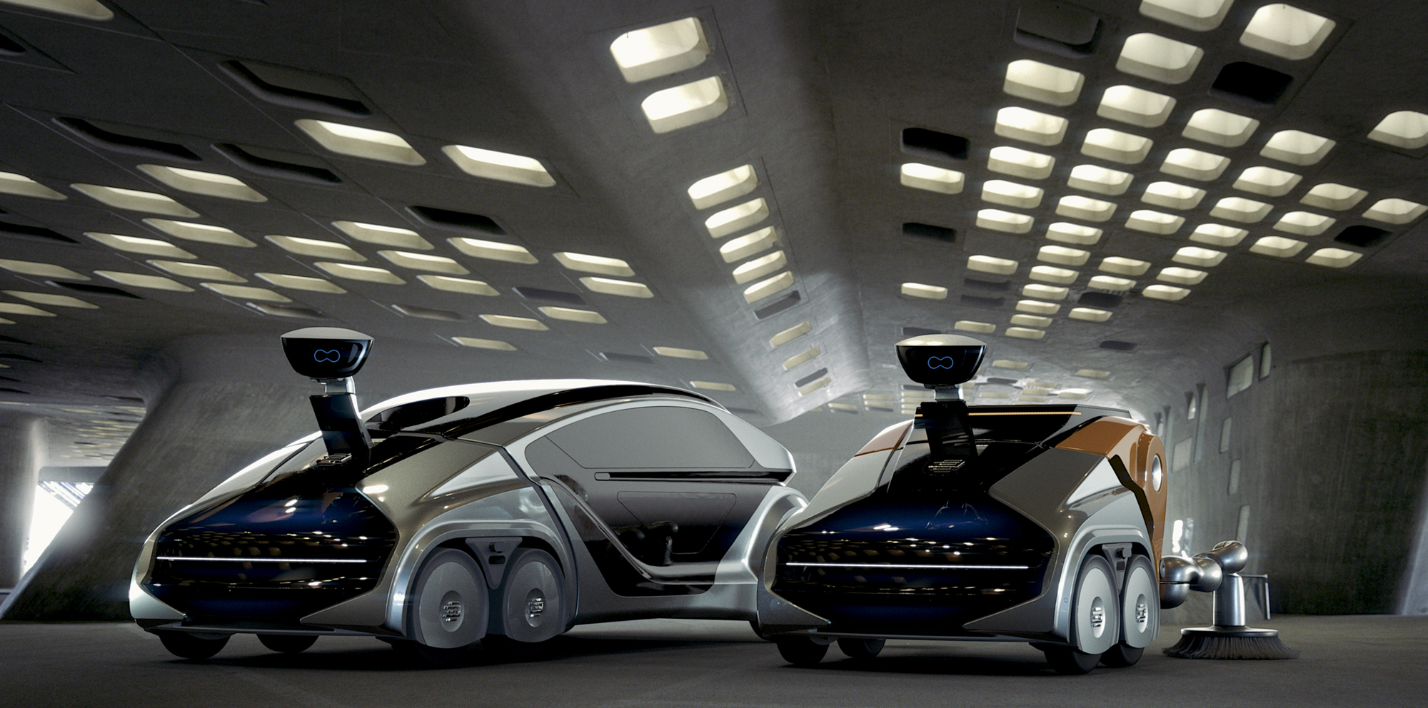 В самых общих чертах замысел похож на модульные транспортные системы вроде Toyota e-Palette, Rinspeed Snap или Mercedes-Benz Vision Urbanetic. Тут есть основная часть с системой привода и автопилотом, а также сменные блоки. Последние могут быть пассажирской капсулой, грузовым отсеком, уборочным агрегатом для коммунальных служб.