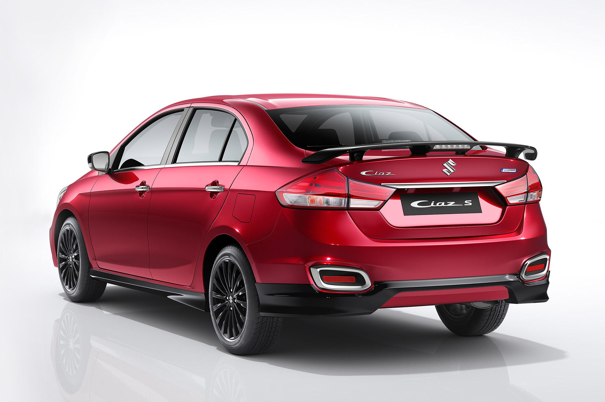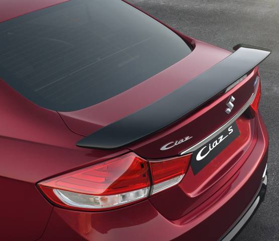 Стандартная четырёхдверка Maruti Suzuki Ciaz обновилась летом 2018 года, и только сейчас её примеру последовала «спортивная» версия Ciaz S. Отныне она отличается двухцветной отделкой, ведь с окрасом кузова (красным, белым либо серебристым) контрастируют чёрные элементы: окантовка противотуманок, корпуса наружных зеркал, накладки на пороги и задний бампер, антикрыло, 16-дюймовые легкосплавные диски.