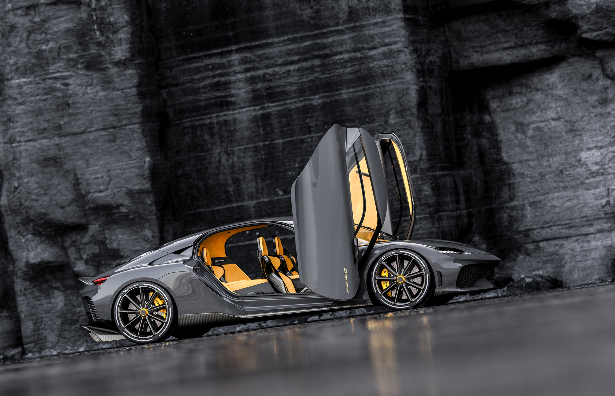 Ещё у Гемеры в активе углепластиковый монокок с жёсткостью на кручение в 40 кН•м/град, углепластиковые внешние панели, две подъёмные двери с приводом, подвески на алюминиевых подрамниках, на двойных поперечных рычагах с настраиваемыми амортизаторами и клиренсом, шесть подушек безопасности и автопилот уровня 2.5 (адаптивный круиз-контроль, контроль рядности). Тут есть векторизация тяги на обеих осях и задняя управляемая ось.