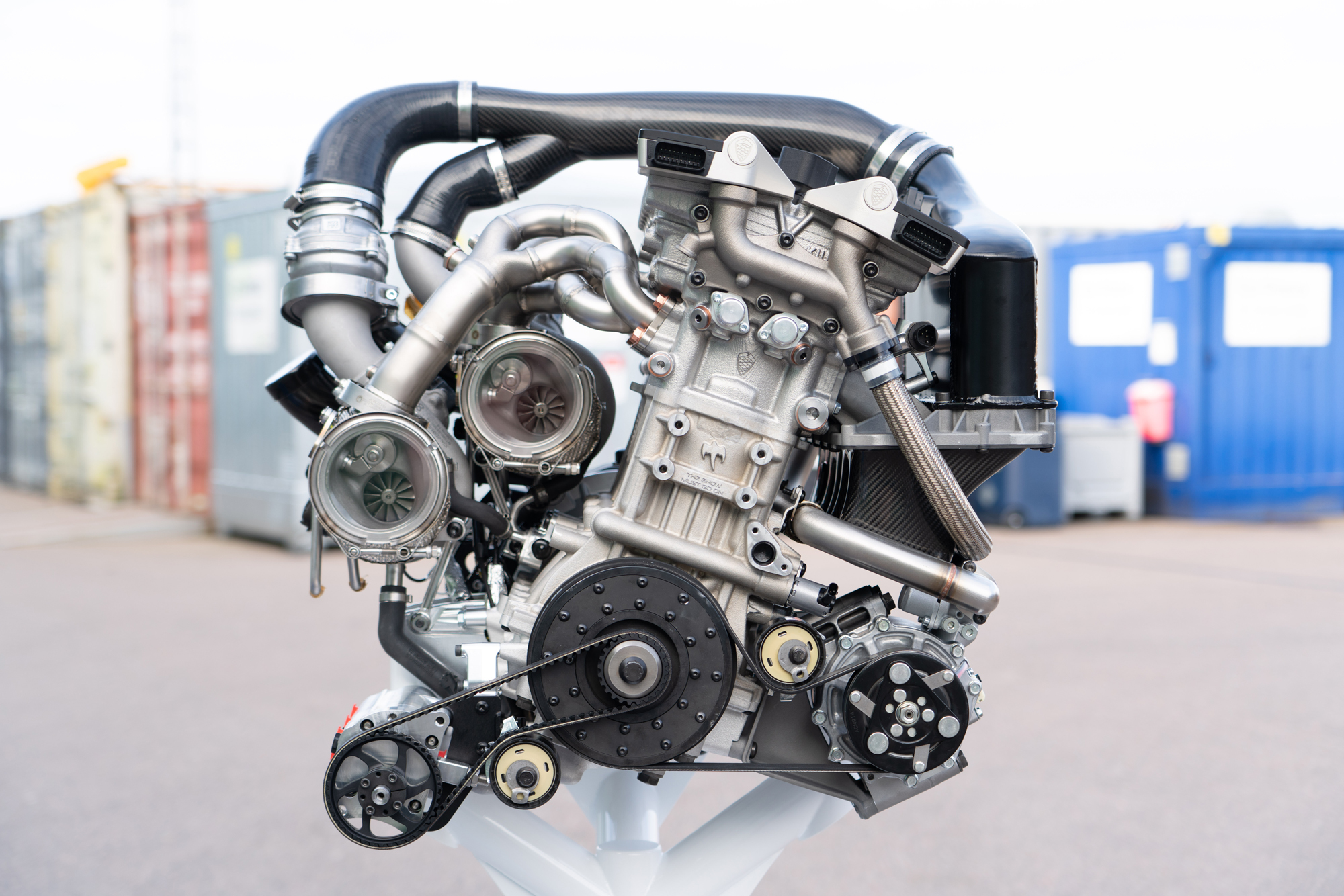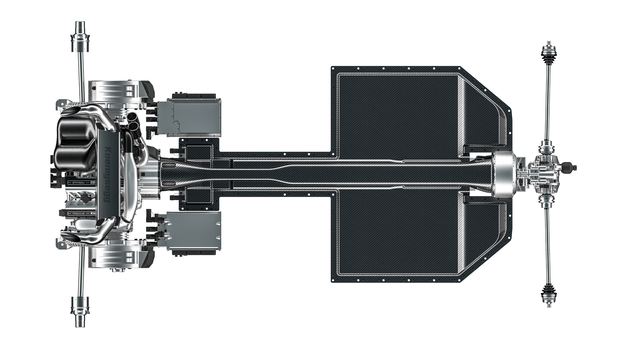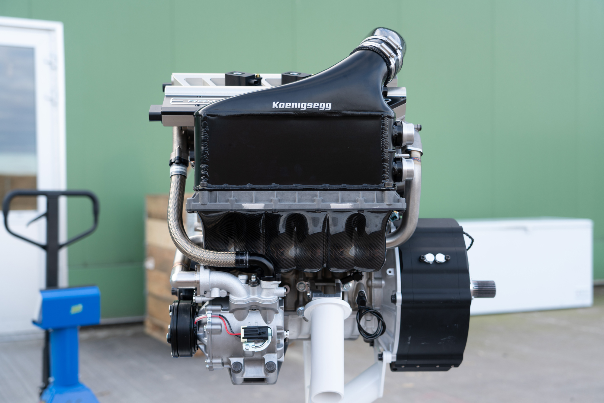 Мотор Tiny Friendly Giant (TFG, маленький дружелюбный гигант) оснащён системой индивидуального привода клапанов от фирмы Freevalve (сестринская компания Кёнигсегга). Степень сжатия у него составляет 9,5:1, а турбокомпрессоров тут два. Первый присоединён к первому выпускному клапану в каждом из трёх цилиндров, а второй — ко второму выпускному, опять же в каждом из цилиндров. На низких нагрузках и оборотах открывается только первый выпускной клапан и работает только один турбонаддув, а при высоких нагрузках в дело вступает второй комплект.