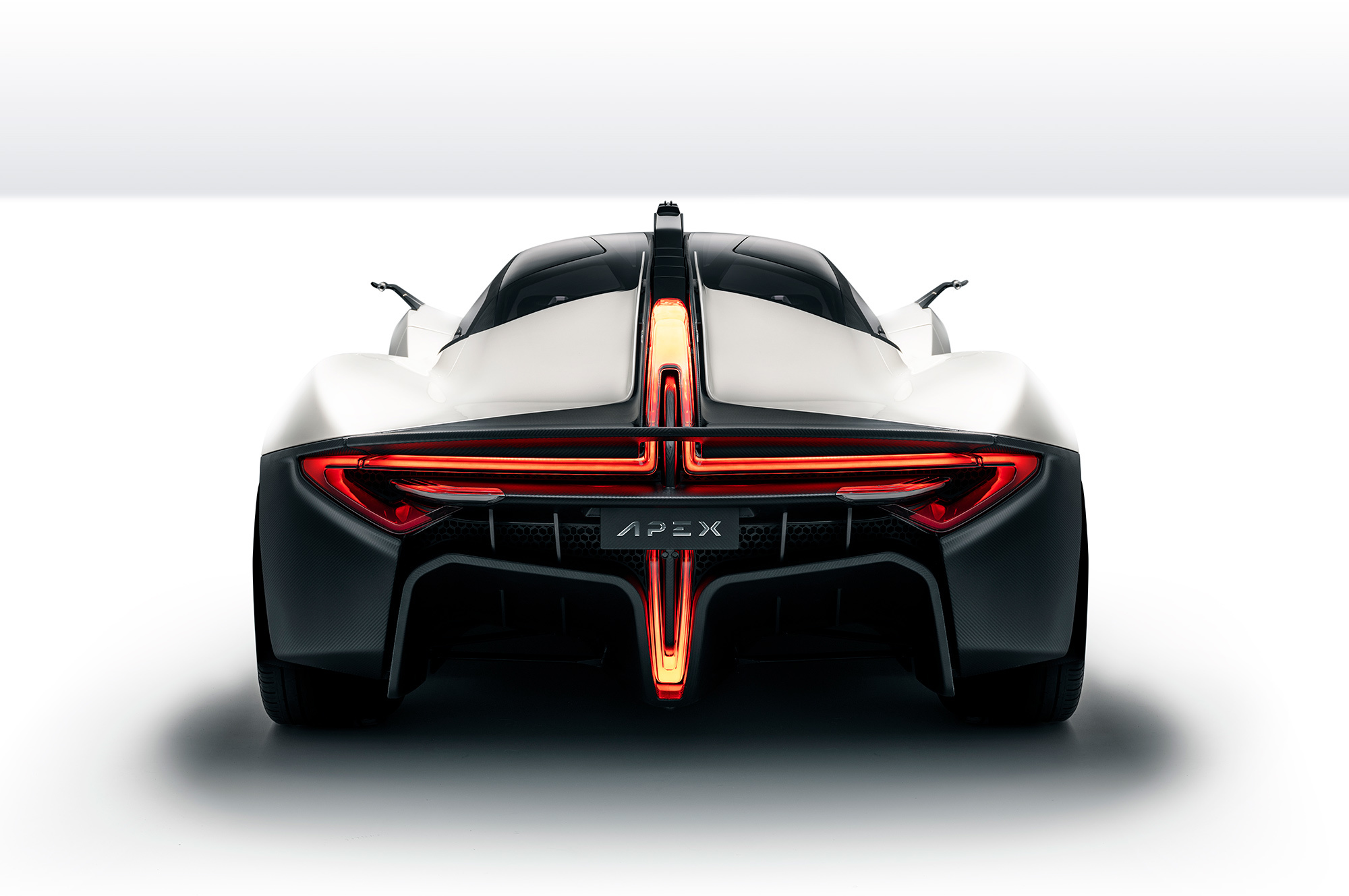 Вся конструкция трек-кара вдохновлена Формулой-1 и лемановскими болидами. Дизайн — не исключение. За него в ответе Гай Колборн, в прошлом соучредитель фирмы Elemental Motor. Панели кузова выполнены из углепластика, классические зеркала заднего вида заменены плавниками с камерами, сзади — огромный диффузор. Характерной чертой стал хребет на крыше с лидаром в основании. Обязательный элемент системы автономного движения видит с расстояния более ста метров при любых погодных условиях. Отметим, что эталонный киль суперкара Veneno смотрится элегантней, но зато версия Апекса функциональней.