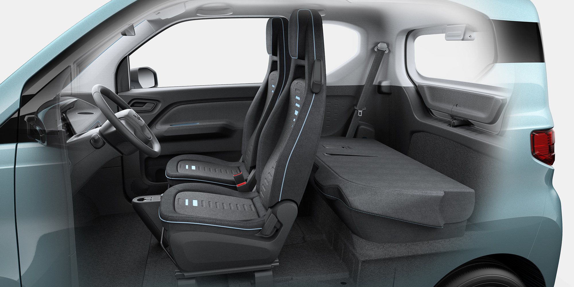 Спустя неделю после первого анонса подоспели официальные изображения интерьера. Как и внешность, он нарочито прост и не лишён скромного обаяния. Заднее сиденье «в стиле скамейки» занимает весь багажник, но неразрезную спинку дивана можно завалить и выиграть 740 л объёма для грузов. По словам GM, места хватит для пары чемоданов или детской коляски. Обещана дюжина ёмкостей для мелочовки, включая подстаканники.