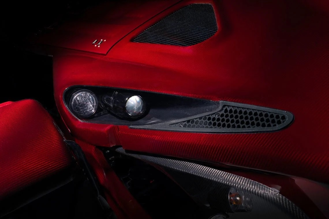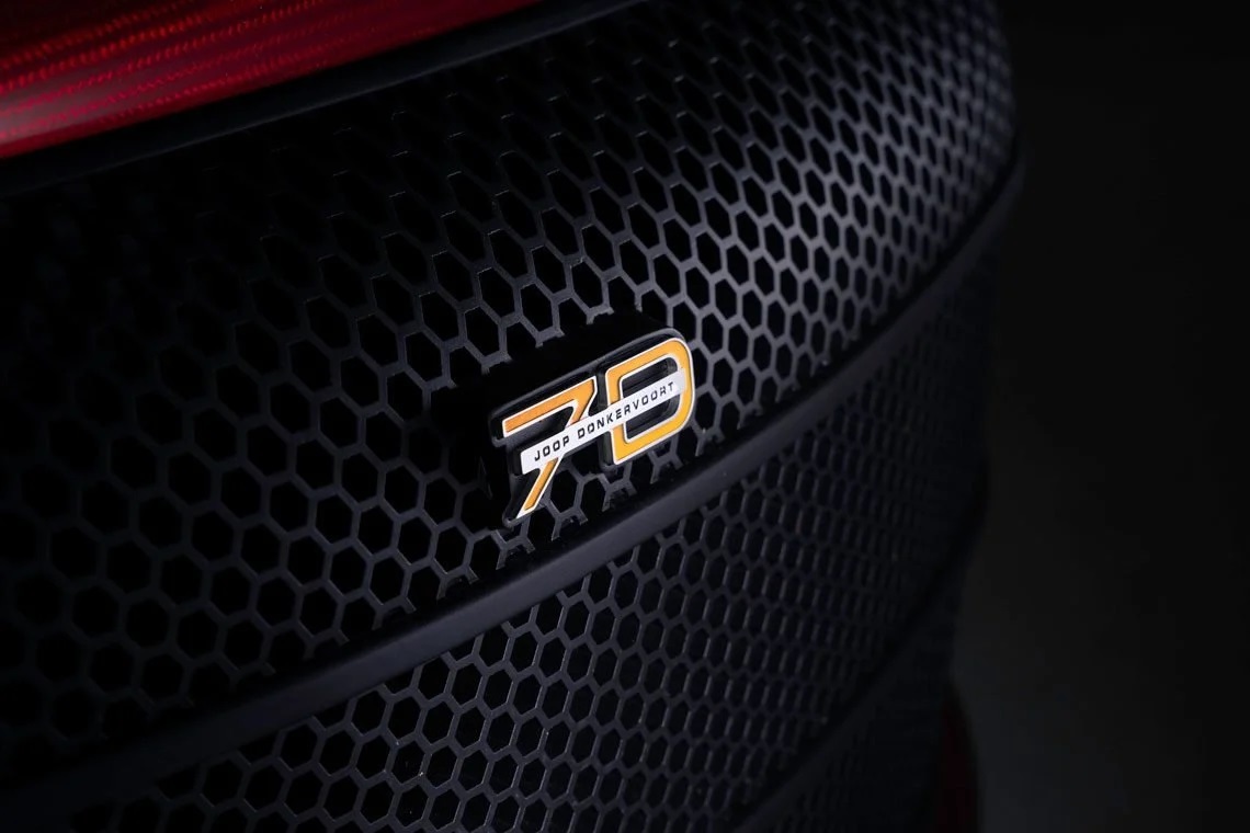Кузов двухдверки Donkervoort D8 GTO-JD70 на 95% состоит из углепластика или переплетения углеволокна и кевлара. А в случае с версией Bare Naked Carbon Edition клиент без труда увидит во всей красе композит, который покрыт исключительно лаком. По умолчанию он бесцветный, но голландцы по прихоти заказчика могут покрыть внешние детали лаком почти любого колера, не скрывая при этом плетение композитного материала. Обнажение кузовных панелей может быть разной степени, а если краска отсутствует везде, включая кожух выпускной системы, то это, по словам создателей, экономит ещё несколько килограммов снаряжённой массы.