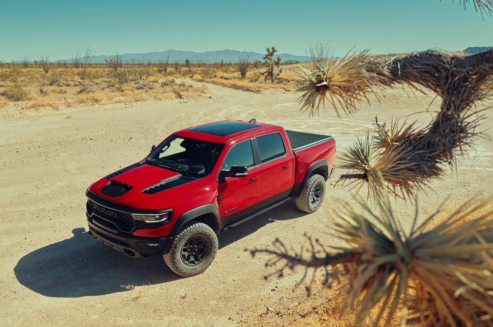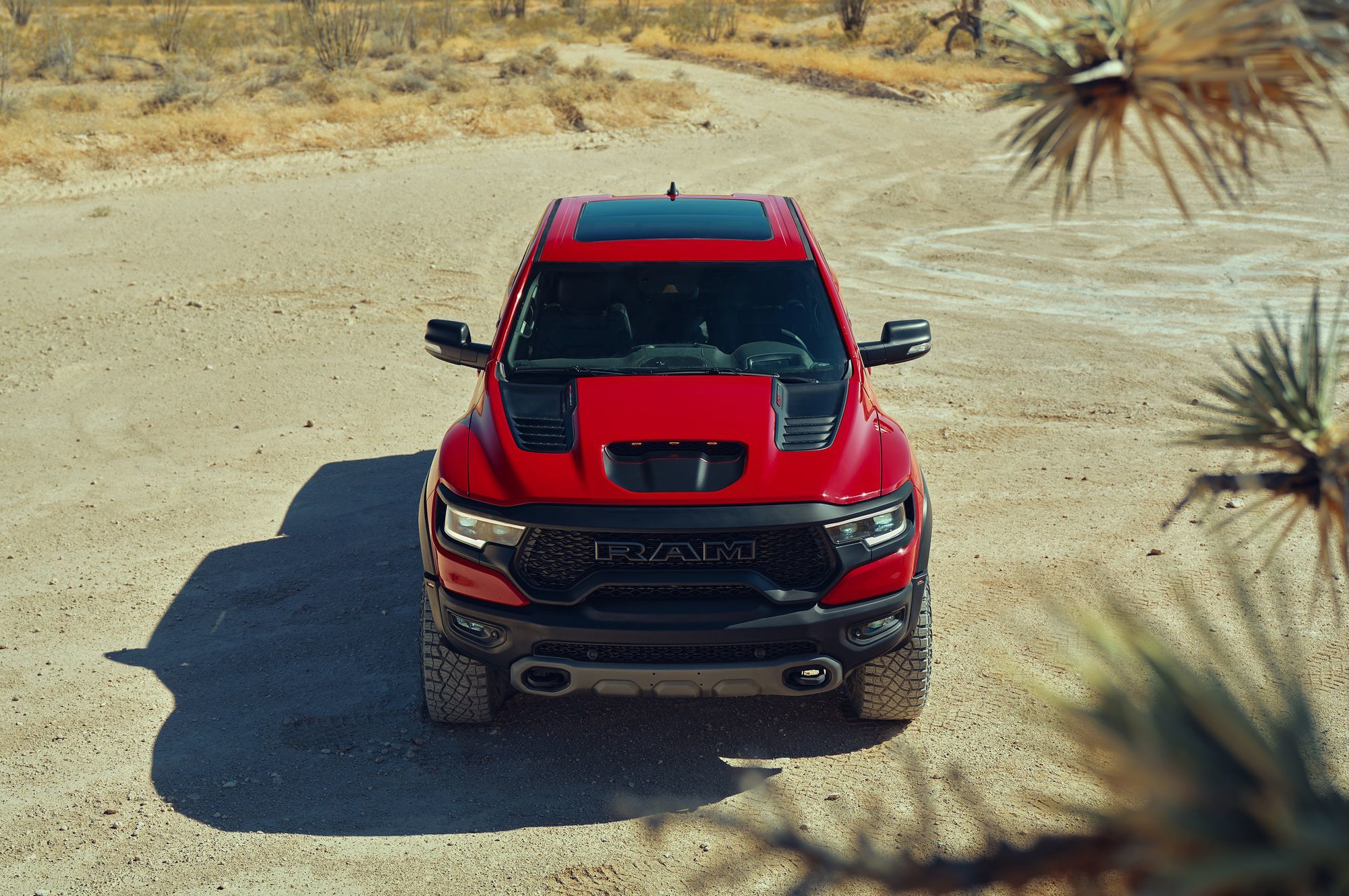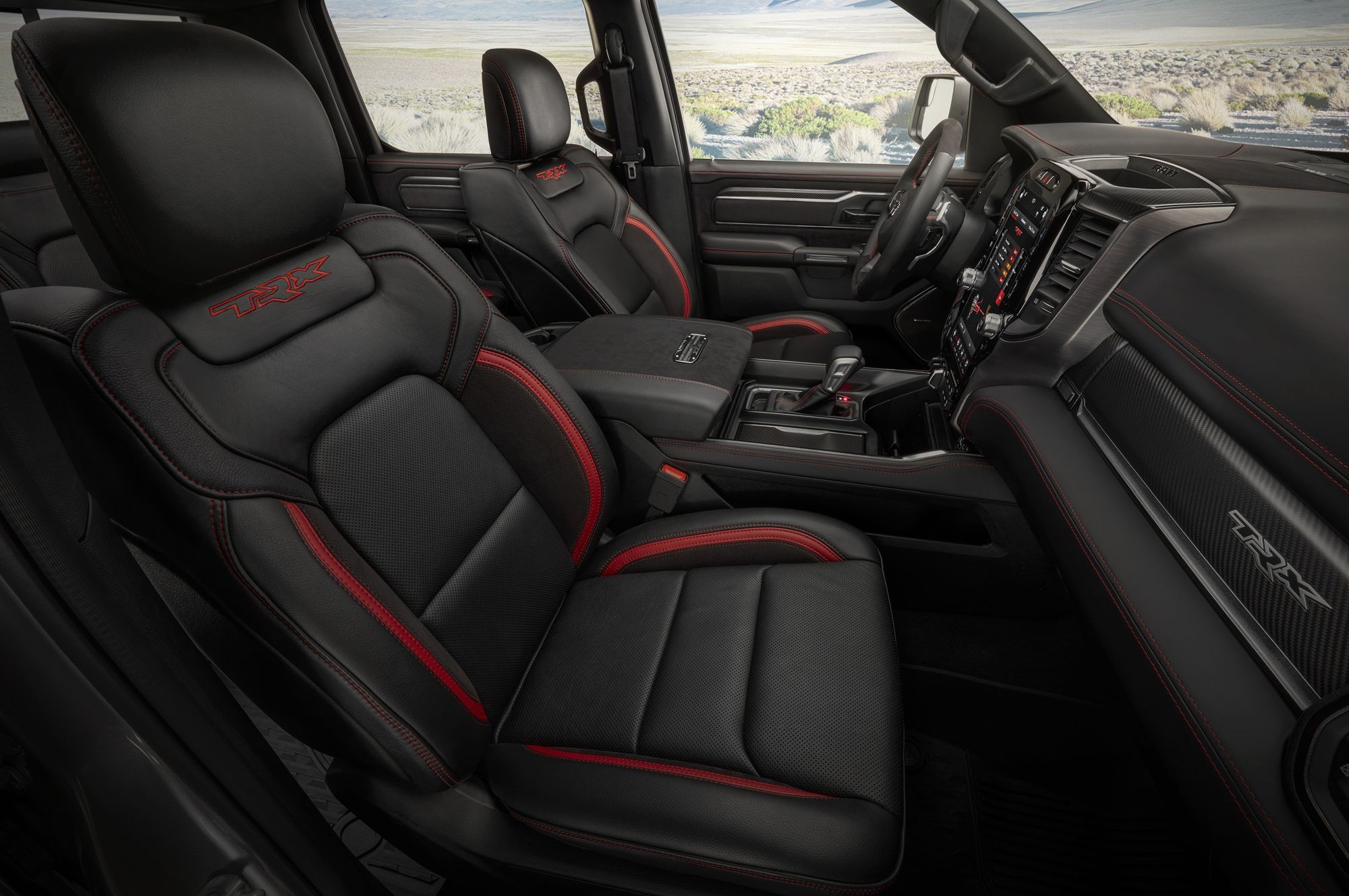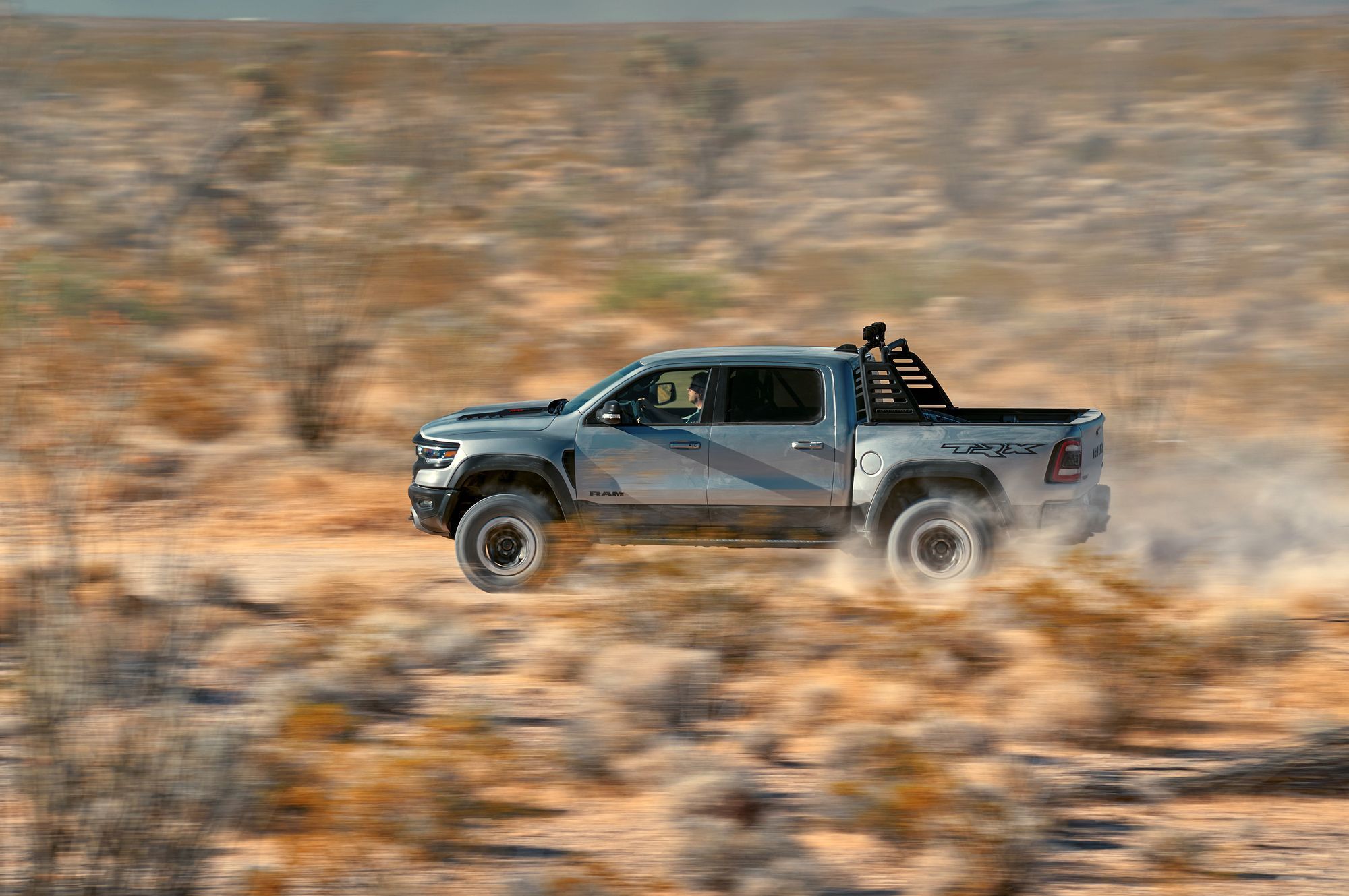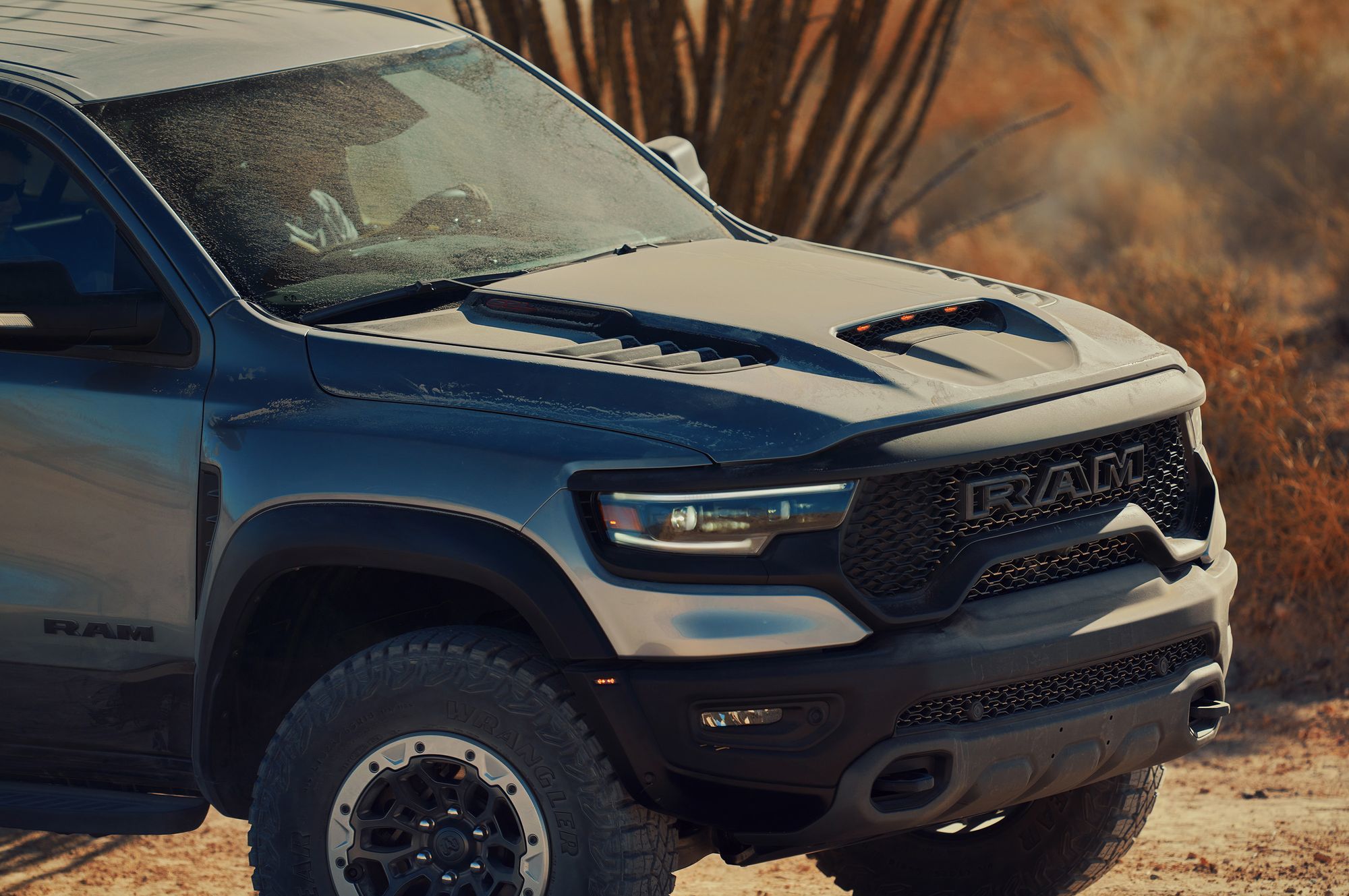 Восьмицилиндровый мотор обзавёлся двухканальной системой впуска: воздух в бокс объёмом 29 л поступает поровну через воздухозаборники в капоте и в решётке радиатора. Сложная система фильтрации поступающего потока задерживает не только грязь, но и воду, для которой предусмотрен слив. Пара фильтров — крупнейшие в сегменте! Общая площадь их поверхности достигает 0,18 квадратных метра. А ещё Ram TRX по умолчанию комплектуется лонч-контролем и технологией обнаружения прыжков, с помощью которой предотвращаются губительные для трансмиссии скачки мощности.