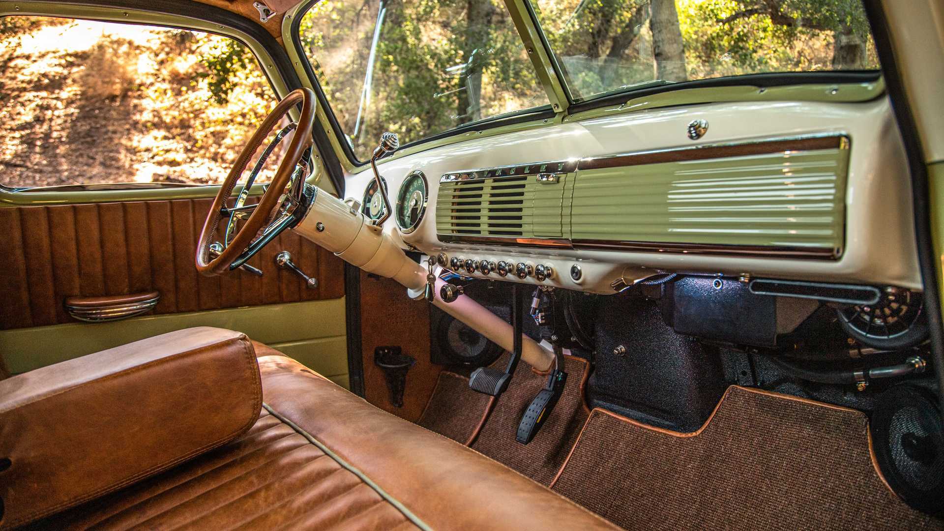 Правда, это не касается технической составляющей. Мастера из Icon установили пикапу современный V8 LS3 объёмом 6,2 л и отдачей 436 л.с. и 575 Н•м, а тяга на задние колёса идёт через четырёхступенчатый «автомат» 4L85-E. Плюс есть механическая блокировка дифференциала. Вместо зависимой подвески установлена полностью независимая от партнёров из компании Art Morrison, которые ещё и регулярно помогают спецам из Icon с модернизацией рамных конструкций. Картину завершает современное рулевое управление и тормоза Brembo с шестипоршневыми суппортами спереди и четырёхпоршневыми сзади.