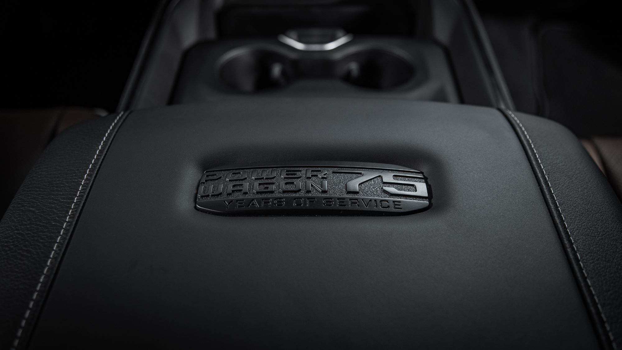 Особенности салона юбилейного издания: премиальная кожаная отделка Mountain Brown, ковшеобразные сиденья с логотипом Power Wagon 75, глянцево-чёрные вставки на приборной панели и дверях, юбилейные значки на центральной консоли и передней панели, а также обрамление мультимедийной системы из тёмного матового алюминия и акценты Piano Black Silverline. В список штатного оснащения добавлена аудиосистема Harman Kardon с 17 динамиками на 750 Вт.