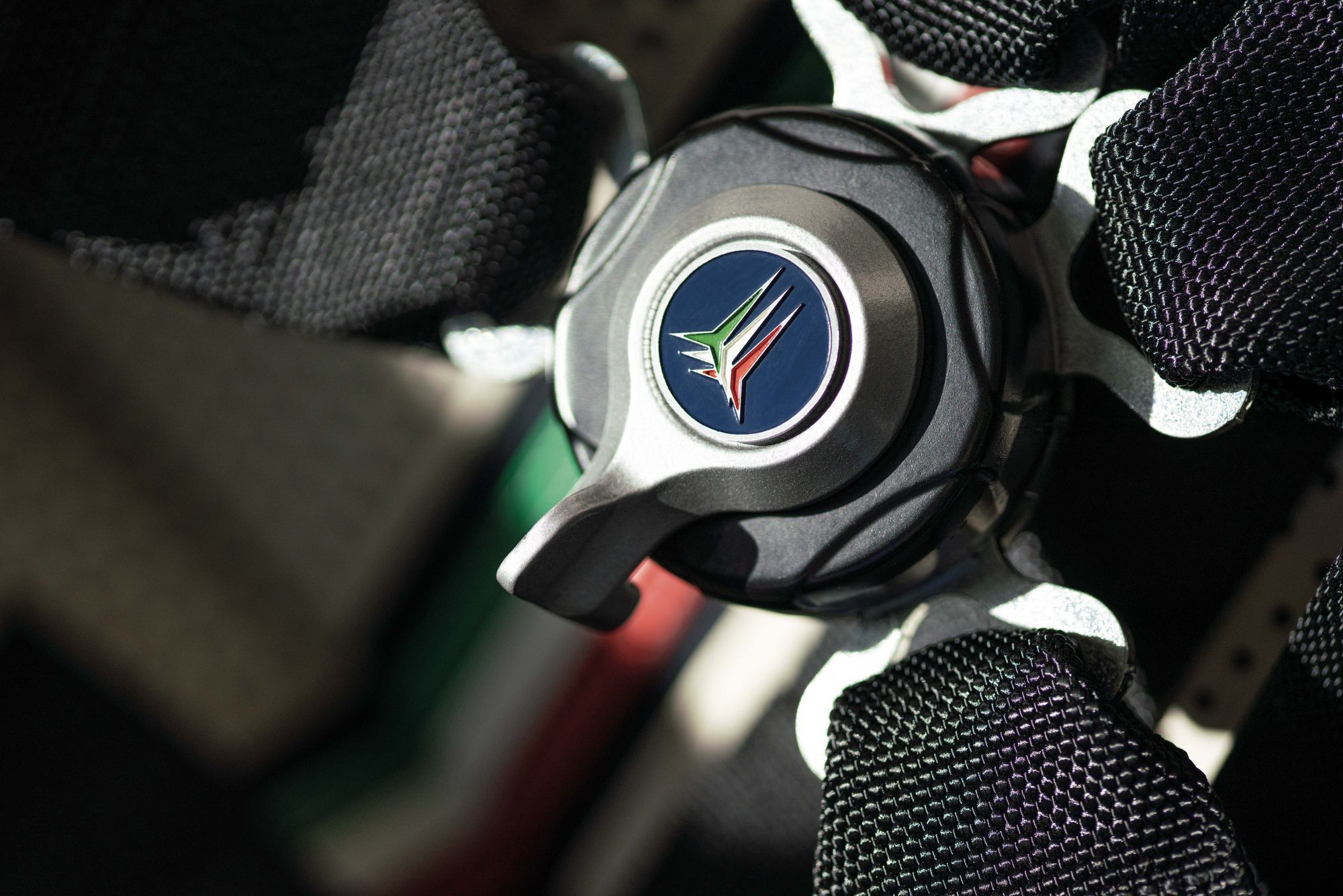 А какое внимание к мелочам! Форма опор того же углепластикового антикрыла должна напоминать хвостовое оперение лёгкого штурмовика Aermacchi MB-339A. А самые внимательные наверняка обратили внимание на крохотный элемент, расположенный между фарами. Это трубка Пито — прямая отсылка к миру авиации, прибор, с помощью которого измеряется скорость полёта у всех летательных аппаратов. А результат показывается анемометром, установленным на центральной консоли в салоне. Ассоциации с Frecce Tricolore должны вызвать застёжка для четырёхточечных ремней безопасности, детали из аэрокосмического алюминия и кожаные вставки белого, красного и зелёного цветов.