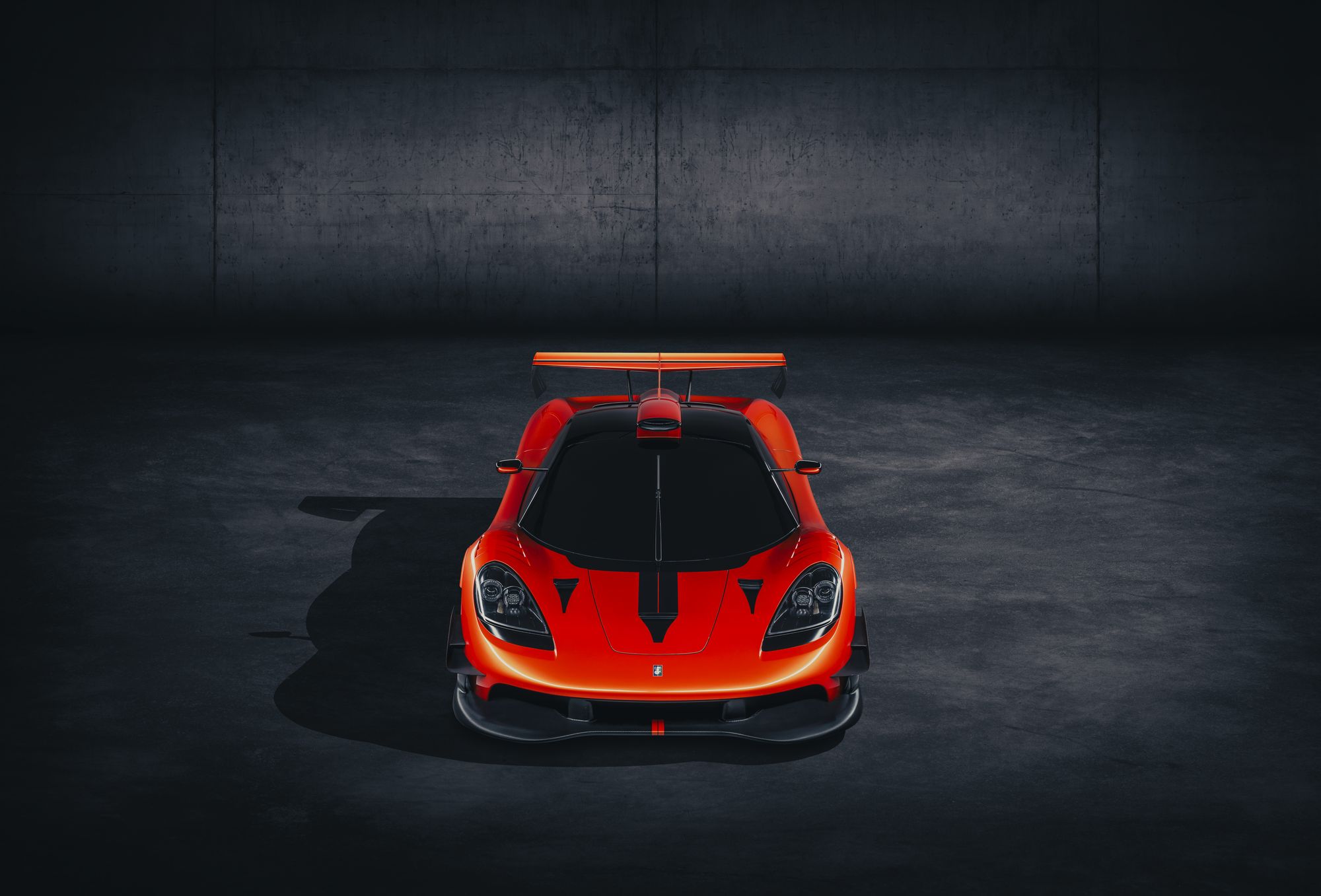Очевидно, что трековая модификация должна быть легче дорожной. Так и есть — снаряжённая масса купе упала с 986 кг до 852! Этому способствовали не только облегчённые элементы трансмиссии, но и новые углепластиковые панели кузова, а также магниевые колёса. Таким образом британским инженерам удалось достичь соотношения более 860 л.с. на тонну — лучше, чем у машин LMP1. Вентилятор на корме тут работает только в одном режиме и вкупе с новым оперением способен создавать прижимную силу равную 1500 кг. Получается, на 280 км/ч купе сможет двигаться по потолку. Теоретически, конечно. Максимальная скорость — до 340 км/ч.