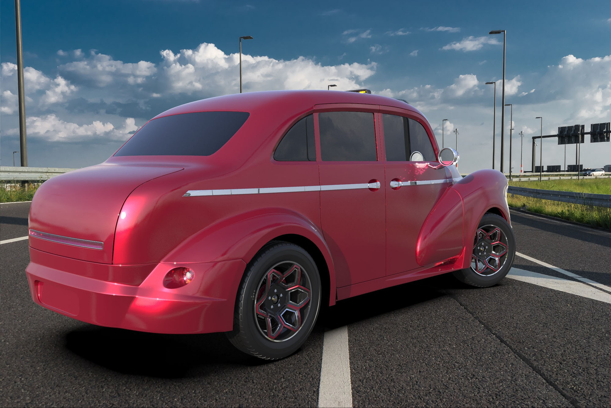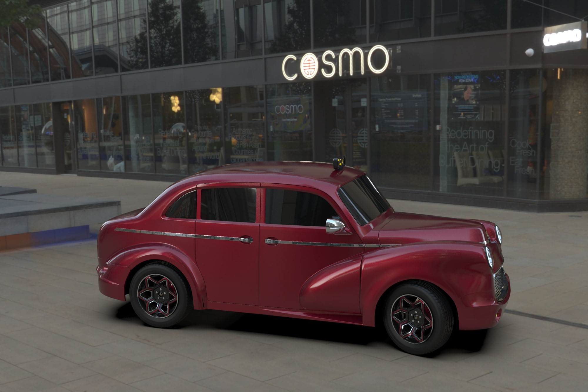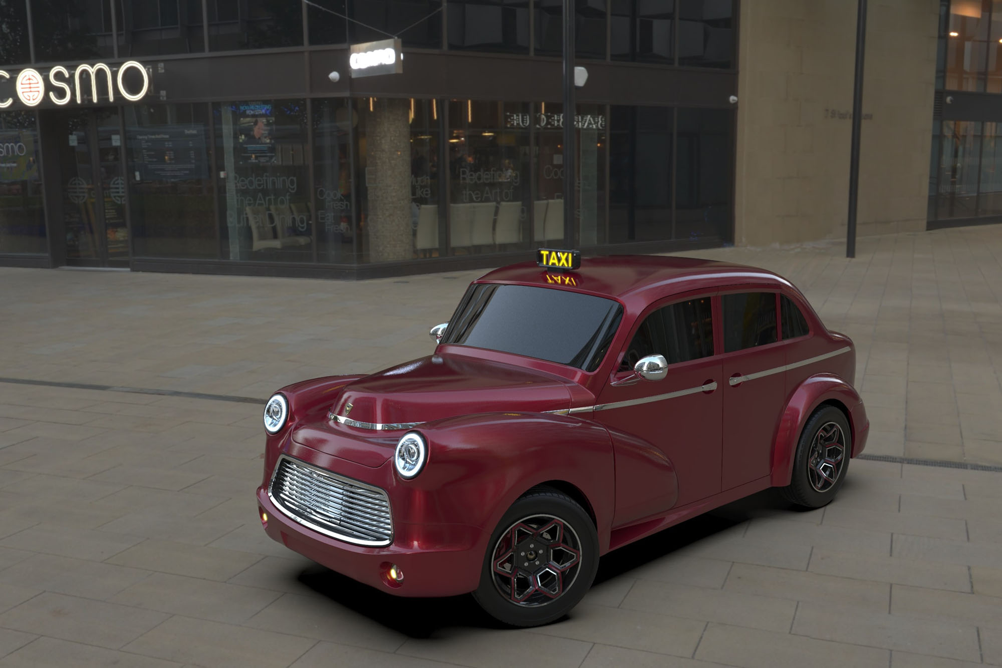 Официальная страничка модели содержит картинки, но по ссылке можно посмотреть на поездку по городу первого прототипа. Живьём машина выглядит ещё более неказисто, чем на рендерах. Экстерьер двухместного спорткара — смесь собственных деталей и линий, заимствованных у ряда других купе. Но тут есть особый символизм: решётка радиатора, по замыслу разработчиков, должна напоминать святилище Купол Скалы в Иерусалиме.
