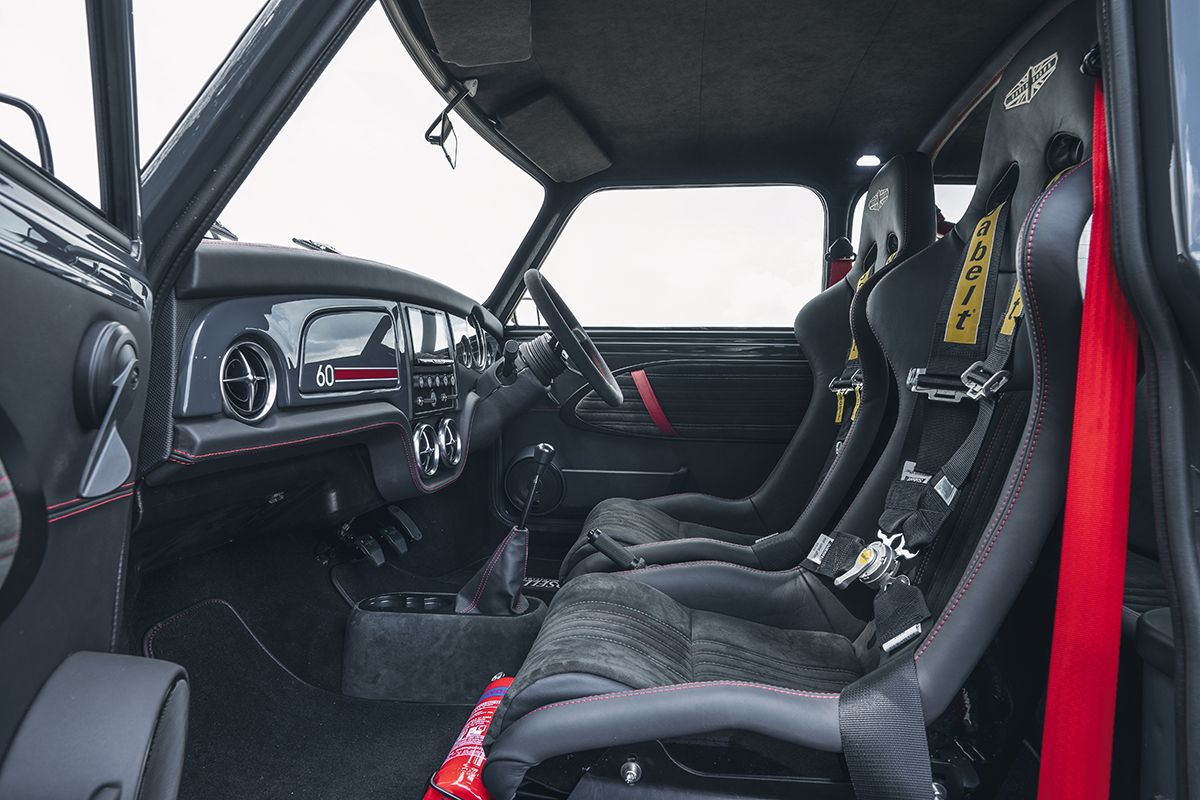 За время пандемии механики сумели увеличить объём атмосферной четвёрки BMC A-серии с 1275 до 1450 см³. Кроме того, у мотора теперь есть пара карбюраторов SU, новая головка блока, современные коленвал и распредвал, а также прямоточная спортивная выпускная система. Итог — 127 л.с. и 153 Н•м, которые идут на переднюю ось через пятиступенчатую «механику» с дифференциалом повышенного трения. Разгон с места до 100 км/ч займёт у рестомода 7,8 с, а максимальная скорость составит 160 км/ч. Интересно, что в дополнение к 34-литровому топливному баку можно дозаказать ёмкость ещё на 21 л. Над подвеской работали спецы Bilstein.