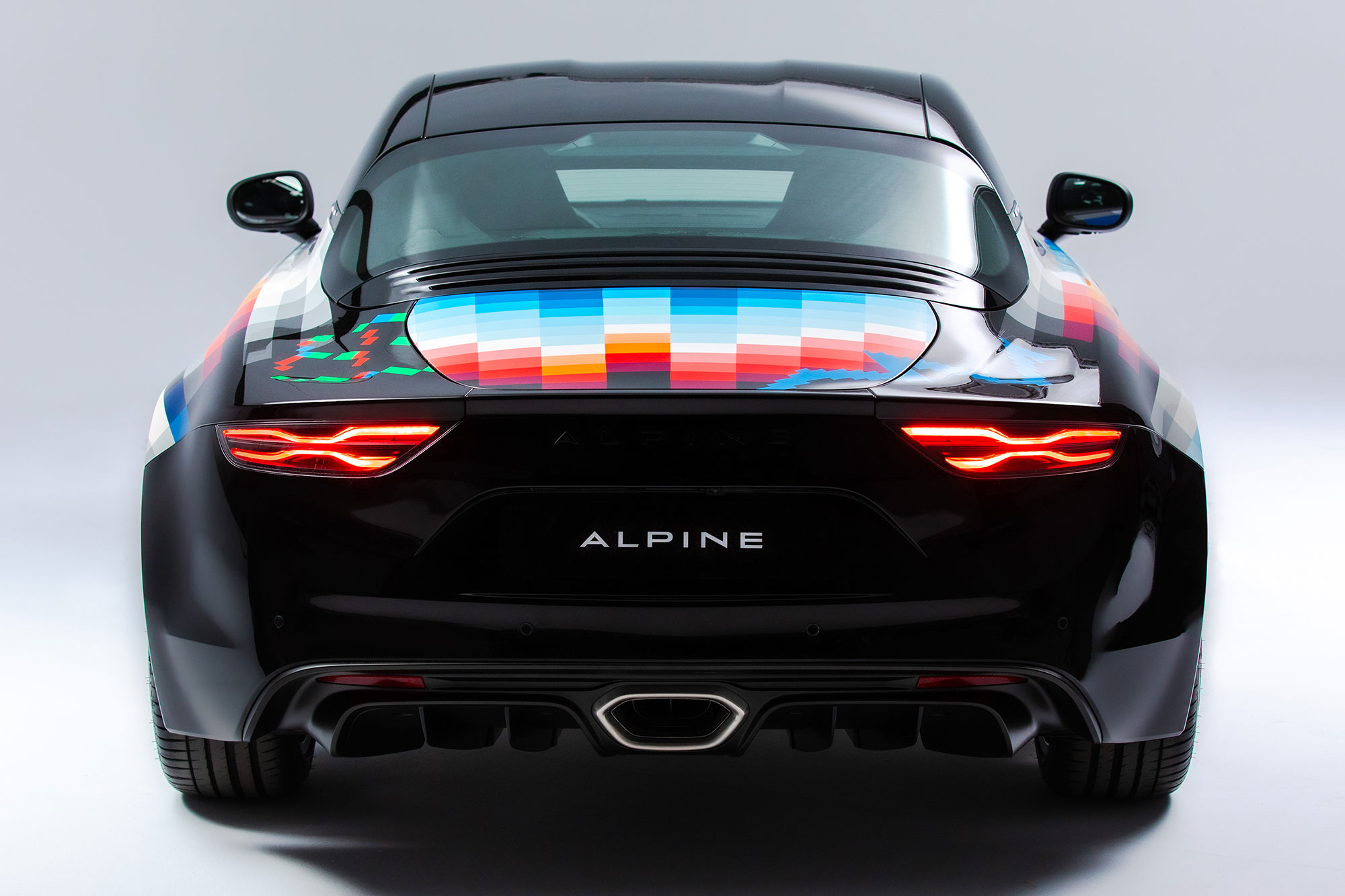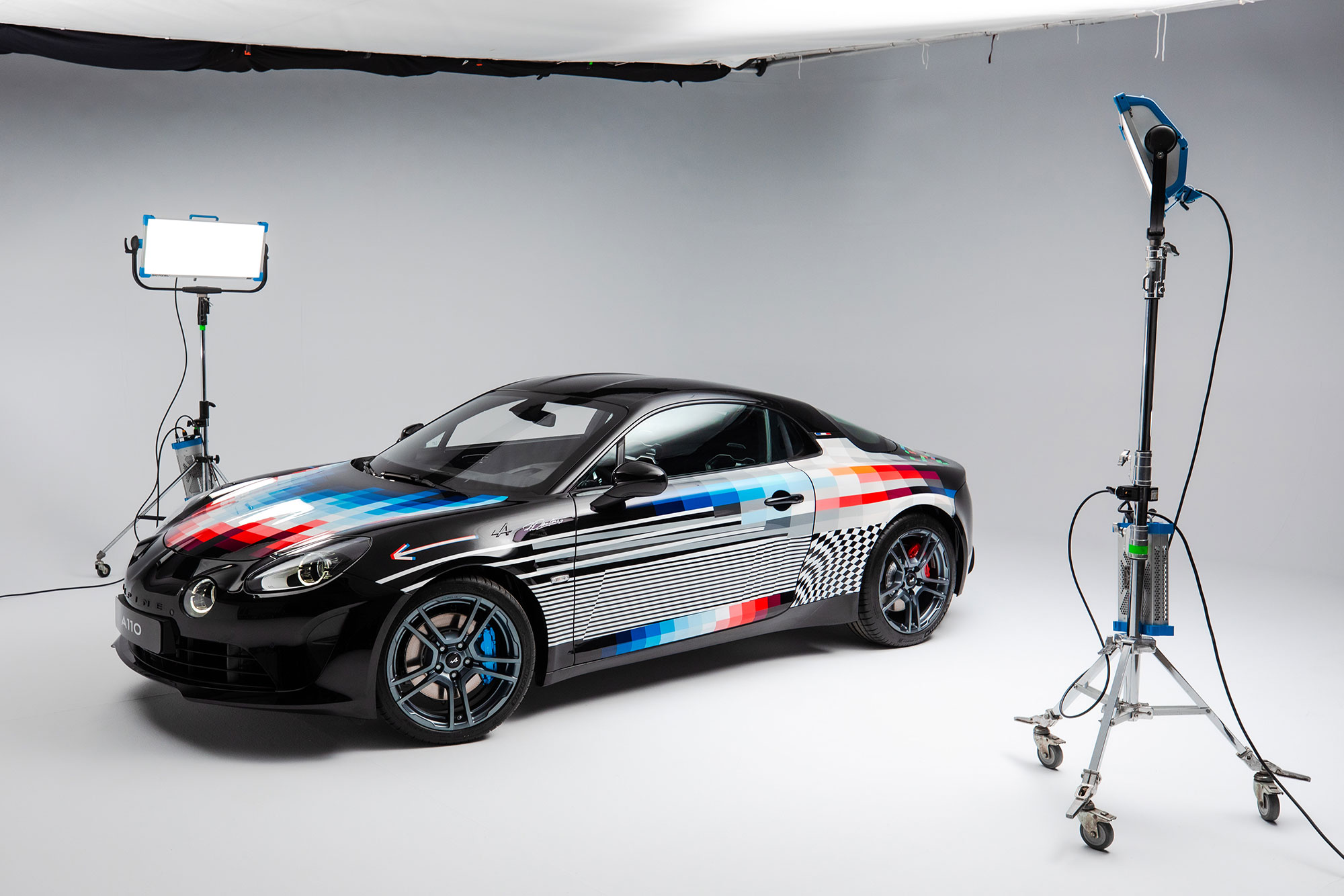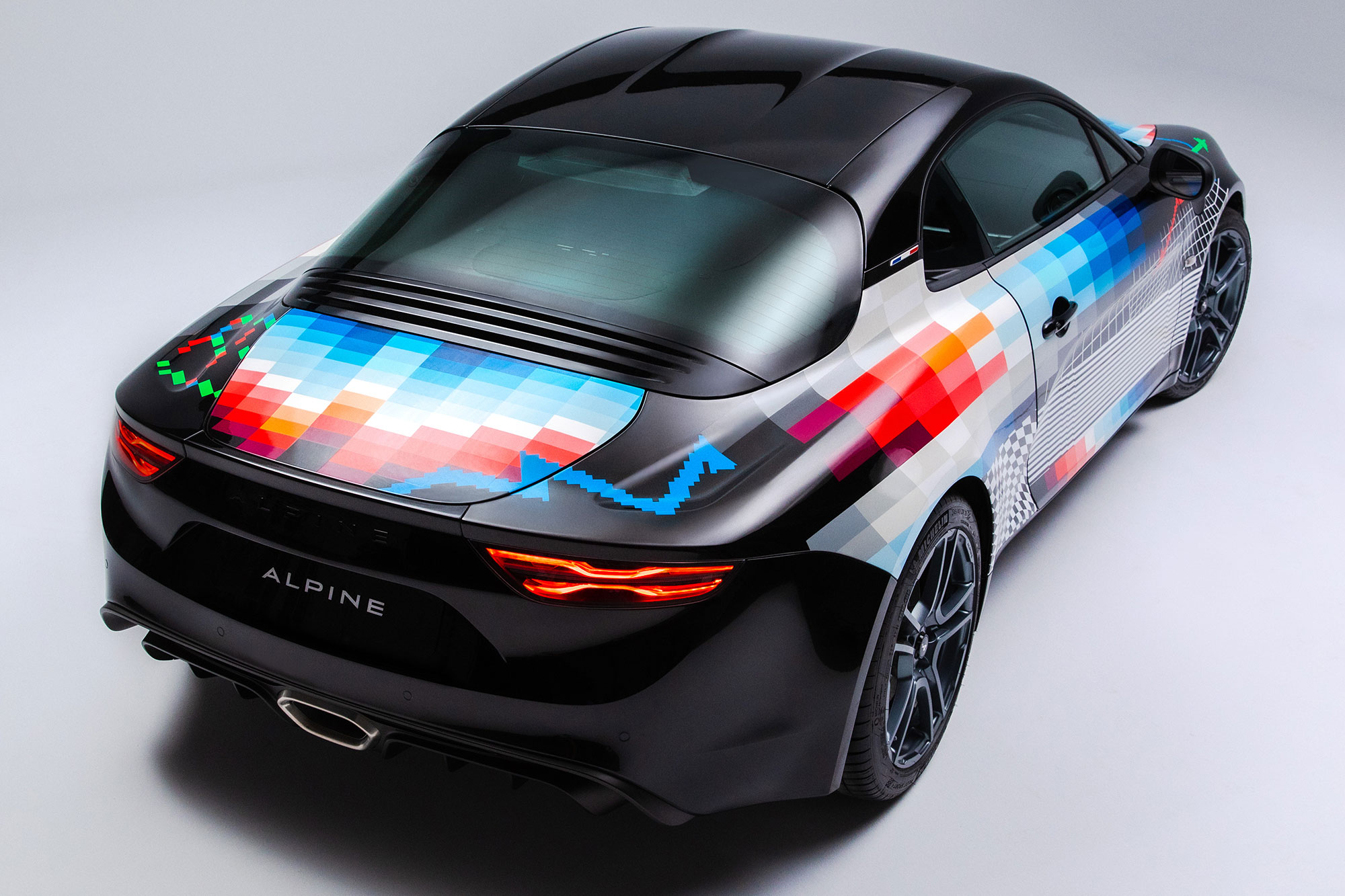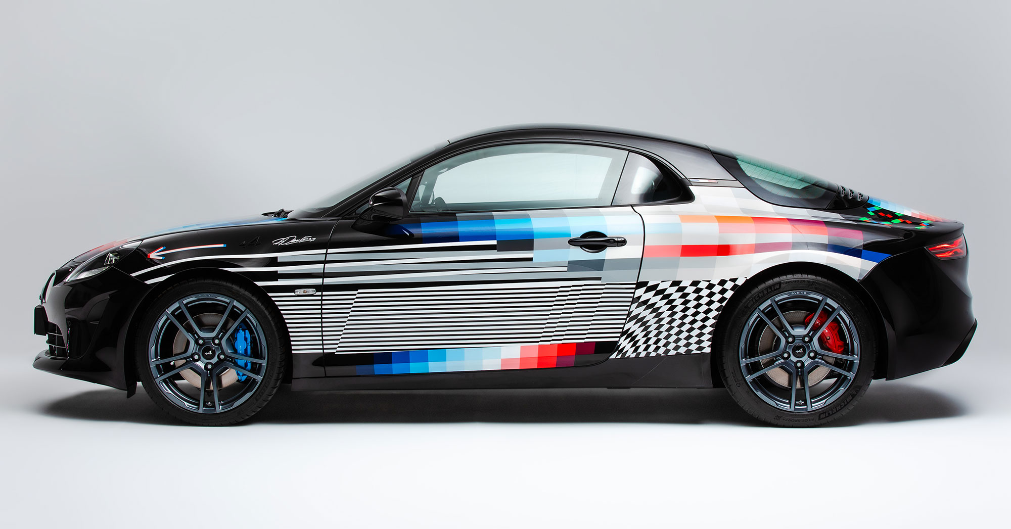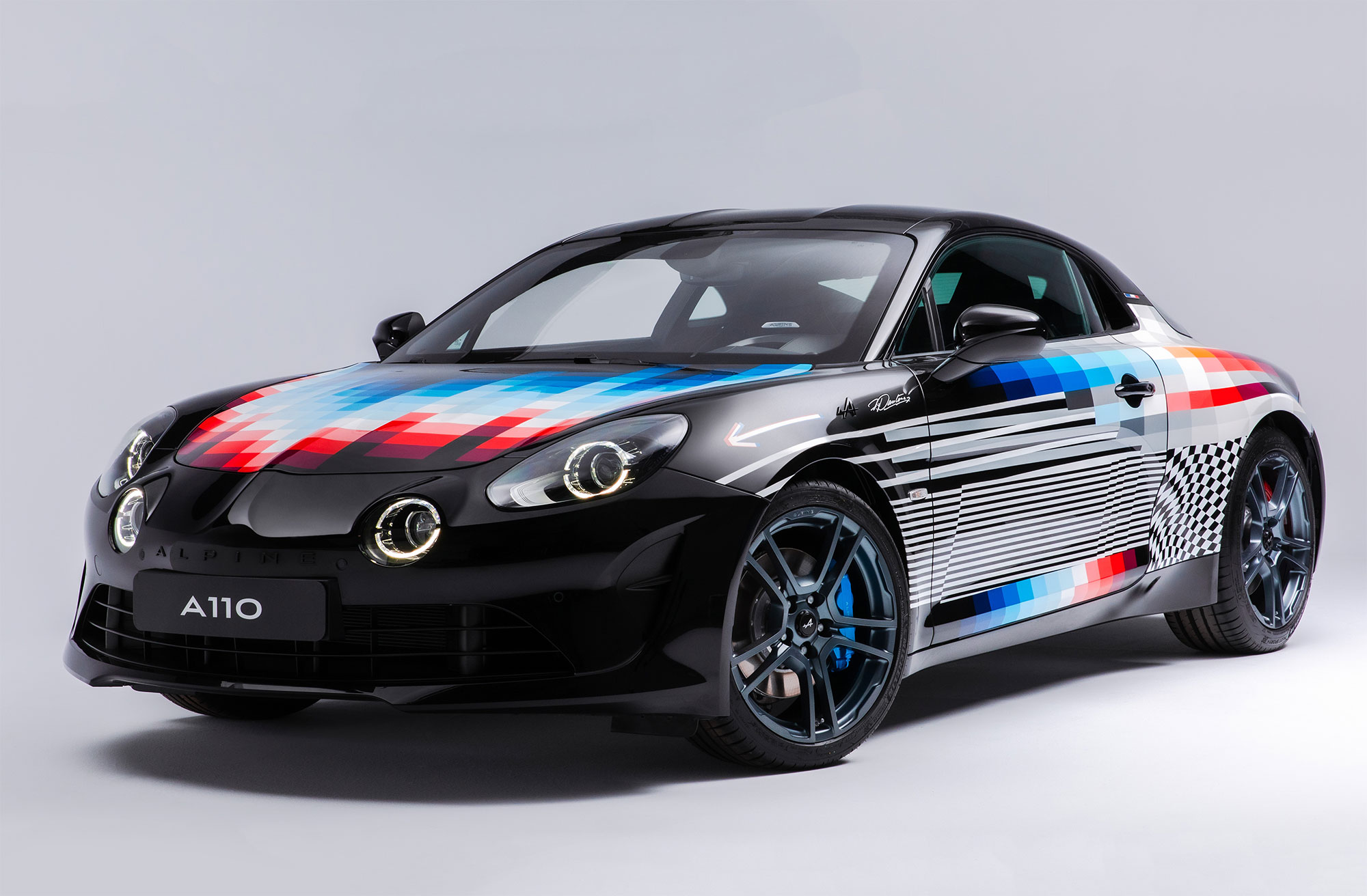 Чтобы «прочувствовать уникальную индивидуальность» французской двухдверки, Пантоне «долгие часы» изучал историю марки и ездил за рулём A110S. Кроме того, Фелипе побывал пассажиром у гонщика Фернандо Алонсо, исполнившего «горячий круг» по трассе Гран-при Монако. В результате графические линии «создают впечатление скорости, даже когда автомобиль стоит на месте».