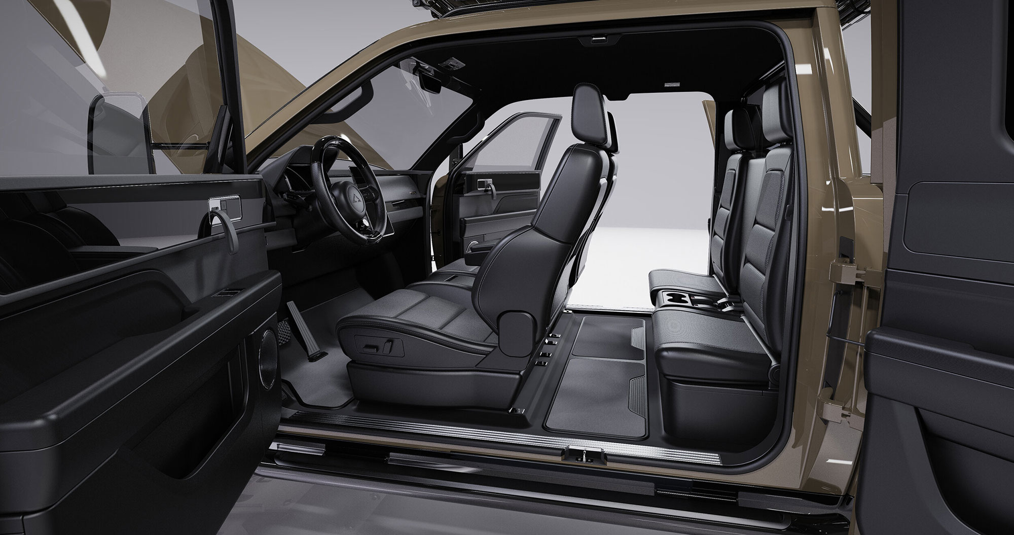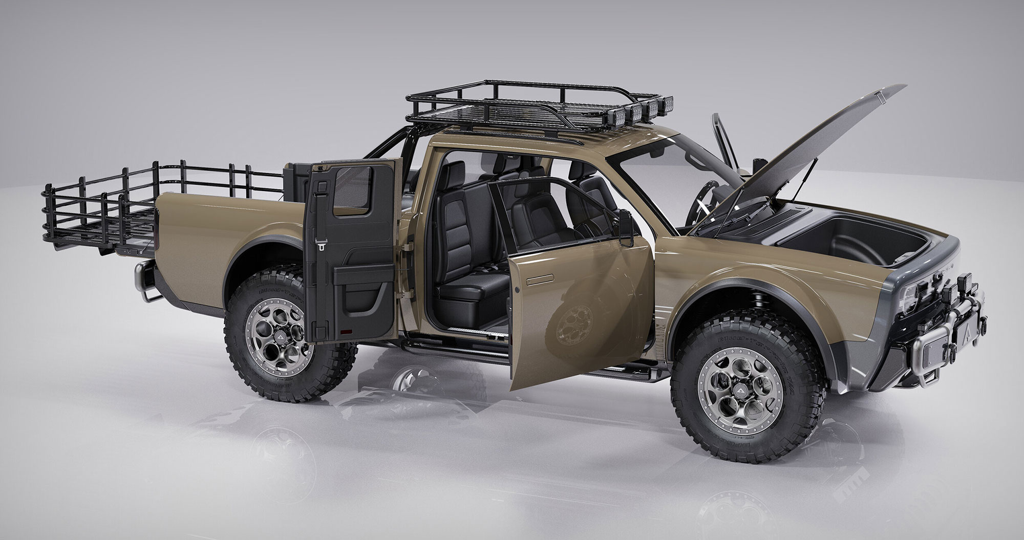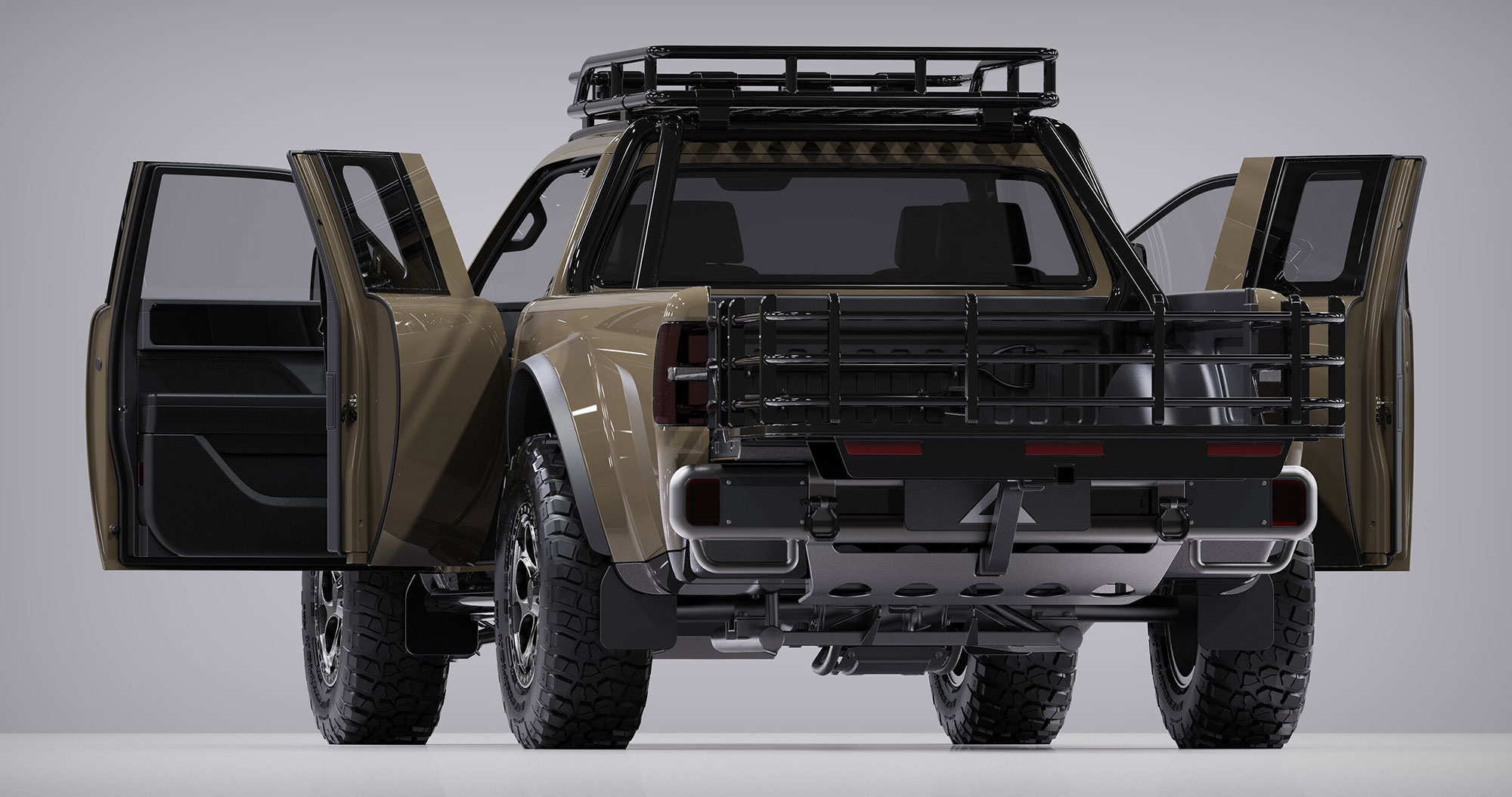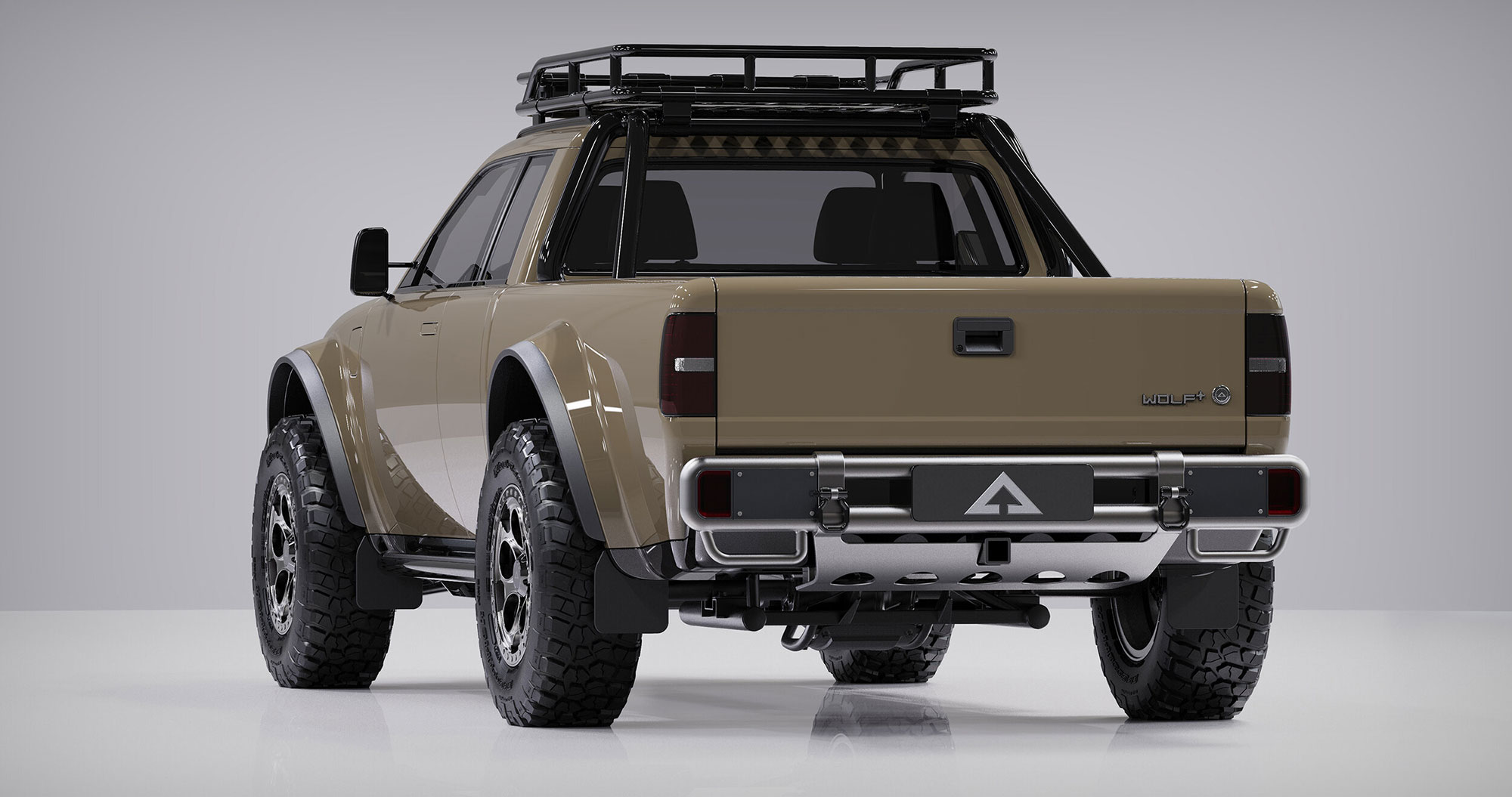 Пикап Wolf расширяет своё семейство, ещё даже не появившись толком на свет. В апреле мы рассказывали о версии Wolf Plus с полуторной кабиной и задними полудверцами, открывающимися против хода. А в конце июля разработчики показали в сети проект Superwolf (коллаж вверху) — пикап с двухрядной четырёхместной кабиной и четырьмя трубчатыми дверьми. Заодно «суперволк» рекламирует возможности индивидуализации, задуманные компанией для всего семейства.