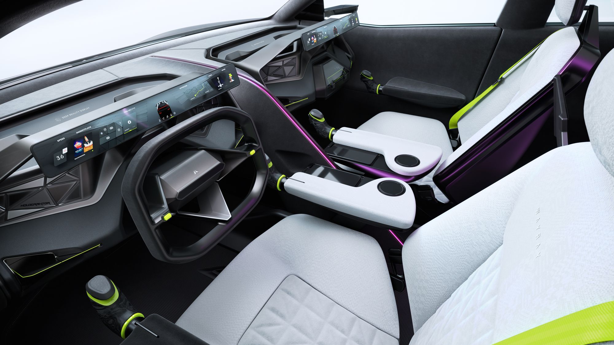 За дизайн отвечал Александр Селипанов. Его кистью, например, нарисован гиперкар Koenigsegg Gemera. Интересно, что основа концепта WayRay — голографическое AR-остекление. Весь автомобиль строился вокруг технологии. Необычна и компоновка — если спереди традиционно разместится пара, то сзади предусмотрено только одно кресло. Разработчики прочат машине будущее в такси: согласно проведённым исследованиям, в 80% случаев Uber вызывает один пассажир. Во время поездки он сможет погрузиться в виртуальный мир развлечений, а стоимость получится снизить за счёт демонстрации рекламы.