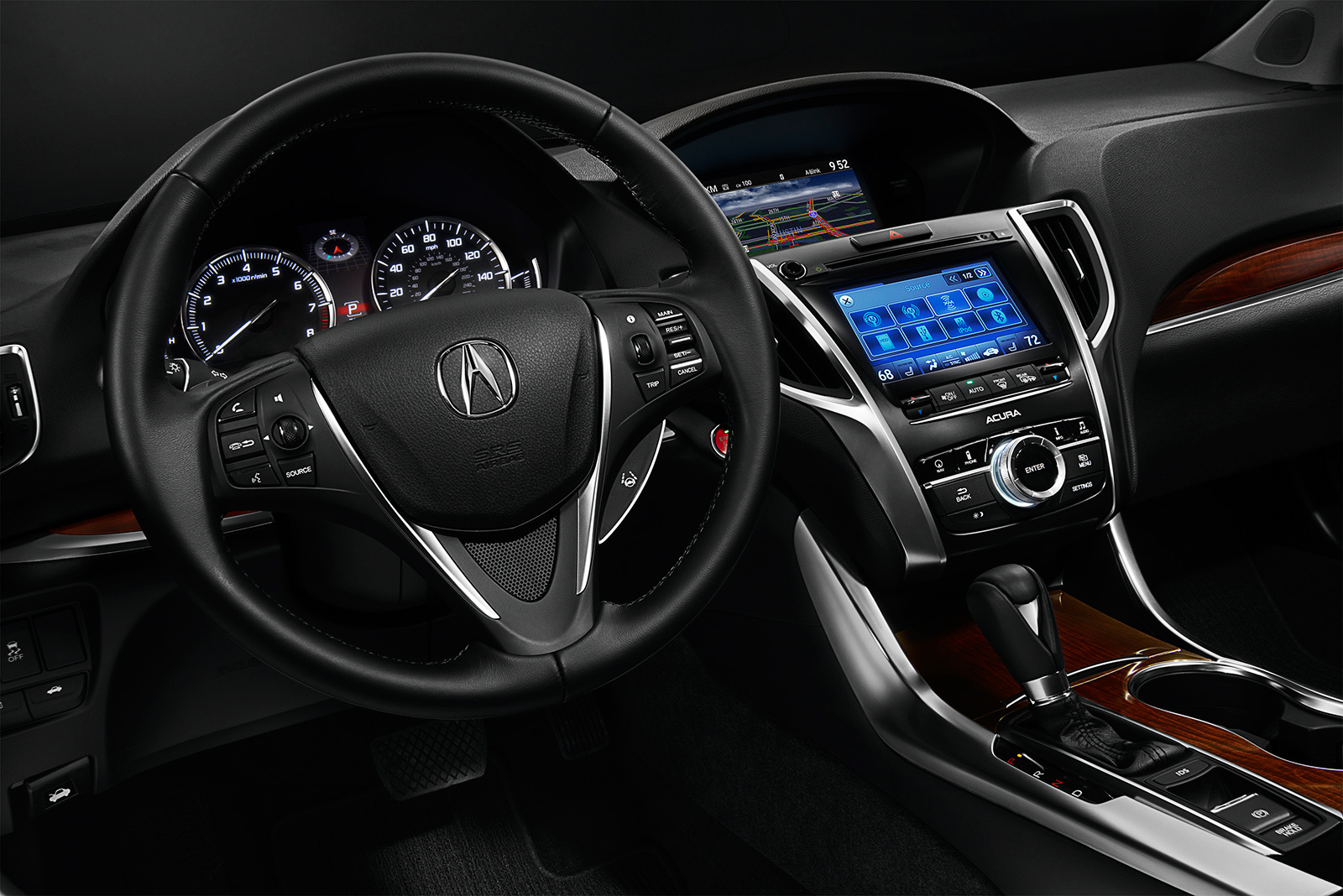 Кроме того, инженеры решили добавить автомобилю перчинки, расширив перечень режимов Integrated Dynamics System — системы настроек шасси. Она меняет алгоритм работы рулевого усилителя, двигателя, трансмиссии, P-AWS или SH-AWD, системы стабилизации, а также «климата». Теперь к прежним экономичному, нормальному и спортивному прибавился режим Sport+, позволяющий полнее раскрыть возможности шасси. А оно, кстати, полностью новое, разработанное, как сообщает компания, с нуля (см. «Технику»). Жаль, фирма пока не раскрывает полные технические данные TLX. Но зато уже есть предварительные показатели экономичности: 8,4 л/100 км в комбинированном цикле для седана с «четвёркой» и 9,4 л/100 км для версии с мотором V6.