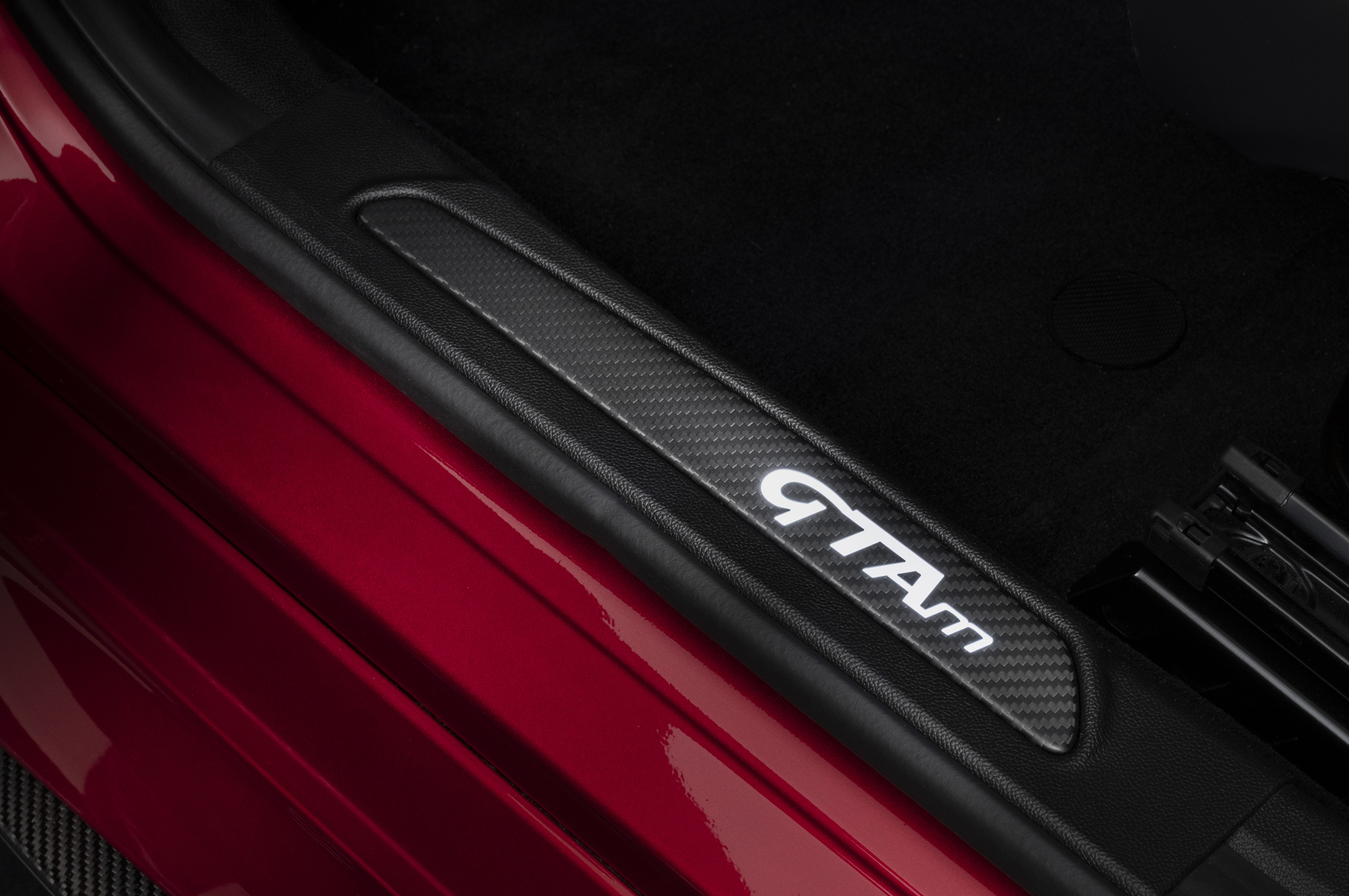 Помимо того, у GTAm как раз сзади расположено большое углепластиковое антикрыло, а передний сплиттер более развит, чем у просто GTA. В салоне же, помимо общих с GTA элементов, появляются внутренние дверные ручки в виде петель. А меры по снижению веса тут дополнены боковыми и задними окнами из материала Lexan из группы поликарбонатов. При всём этом GTAm — допущенный на дороги общего пользования автомобиль.