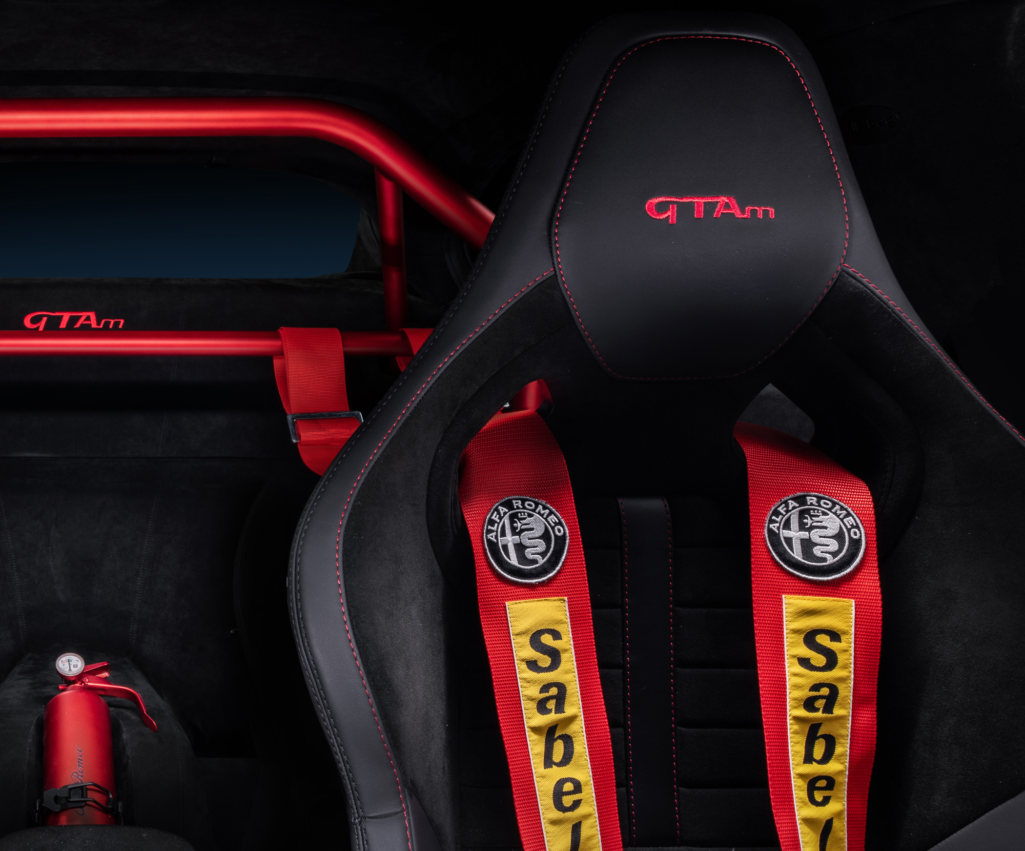 Доработки «четырёхлистника» на этом не завершились. Помимо просто Джулии GTA с четырёхместным салоном, была разработана версия Giulia GTAm (она и показана на снимках). В отличие от GTA, вместо заднего дивана здесь усилитель кузова и отсек для шлемов и огнетушителей. Спереди установлены ковшеобразные кресла с углепластиковым каркасом и шеститочечными ремнями.