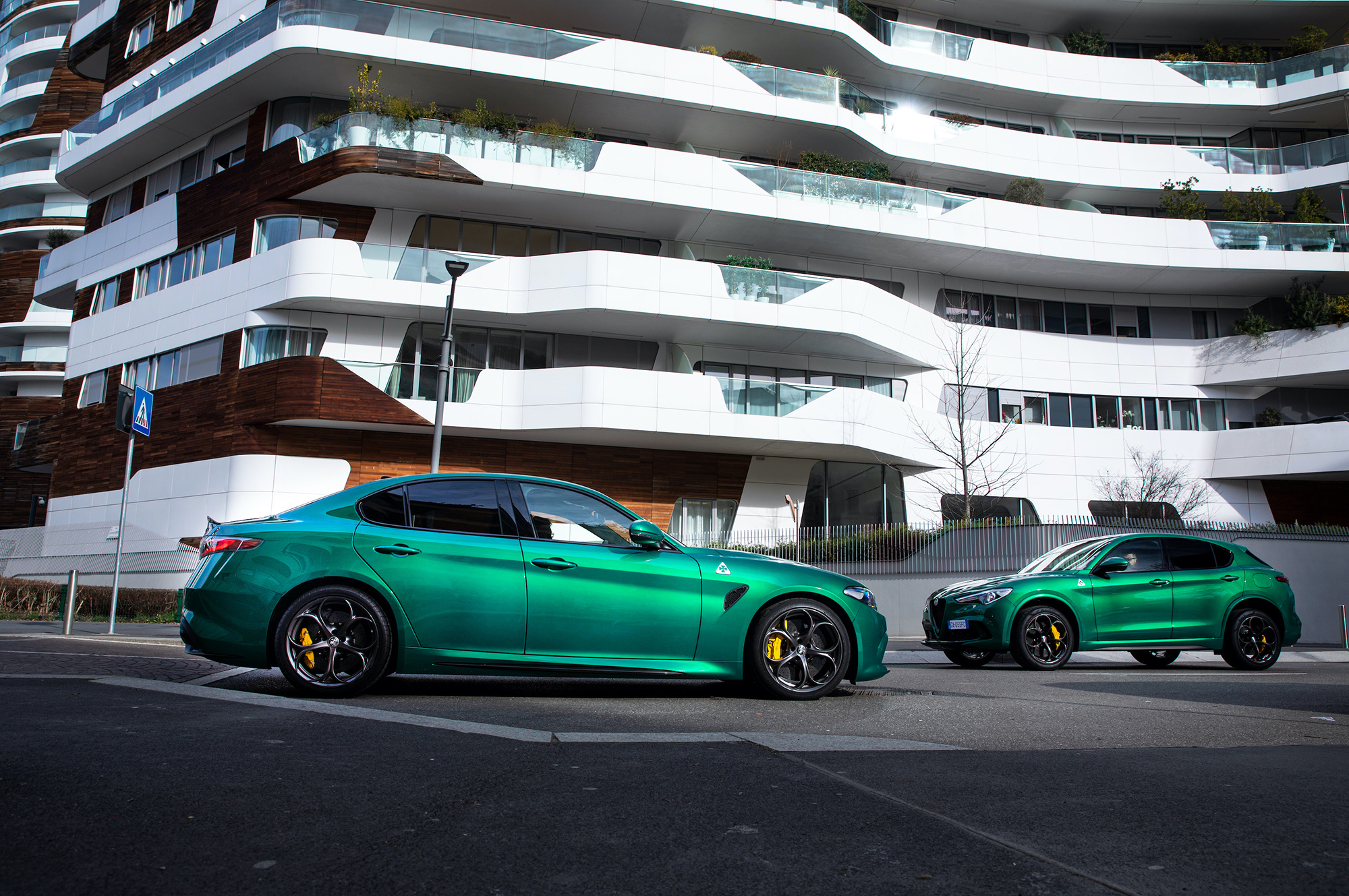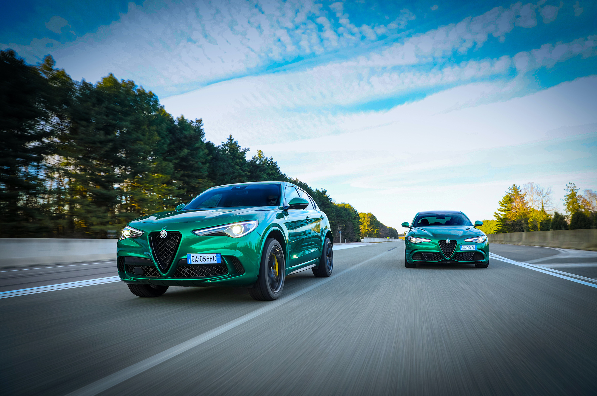 Трудно узнать рестайлинговые Alfa Romeo Giulia QV и Stelvio QV. Снаружи обе машины отличаются лишь чёрной глянцевой окантовкой решётки радиатора и новым светодиодным фонарям, а Stelvio Quadrifoglio Verde ещё получил новые колёса (21 дюйм). Техника же и вовсе осталась нетронутой. Зато быстрейшие в своих семействах версии обзавелись комплексом автономного вождения второго уровня ADAS (Advanced Driver Assistance Systems). В него входят активный круиз-контроль, системы удержания в полосе, мониторинга слепых зон, трафика позади машины и усталости водителя, а также технологии распознавания дорожных знаков.