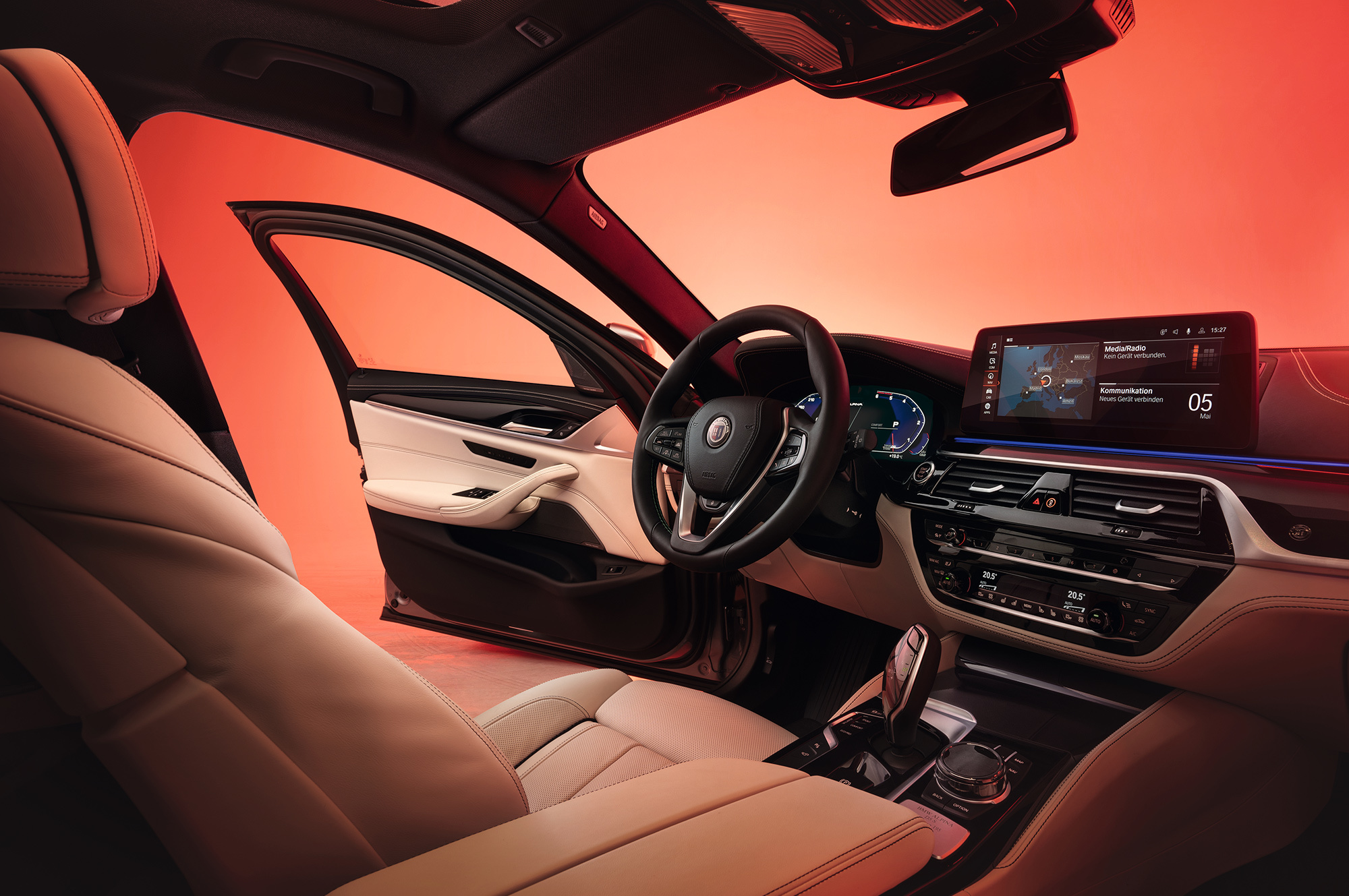 Подняли мощность и дизельной Альпине D5 S. Мотор 3.0 с тремя турбокомпрессорами после модернизации развивает 408 л.с. и 800 Н•м, хотя прежде при том же крутящем моменте агрегат мог похвастаться 388 силами. Правда, это всё никак не сказалось на динамических и скоростных характеристиках: седан и универсал ускоряются до 100 км/ч за 4,4 и 4,6 с и могут разогнаться до 286 и 283 км/ч соответственно. По умолчанию Альпины пятой серии комплектуются полным приводом, адаптивными амортизаторами и активными стабилизаторами поперечной устойчивости, а для версии B5 есть ещё полноуправляемое шасси. Также впервые B5 и D5 S можно дополнить углеродокерамическими тормозами.