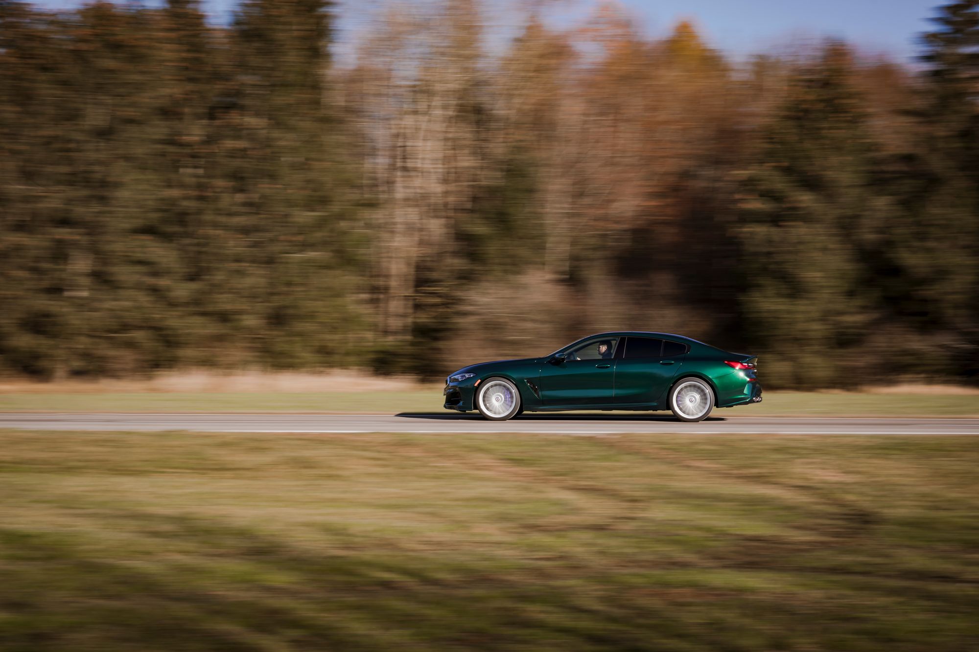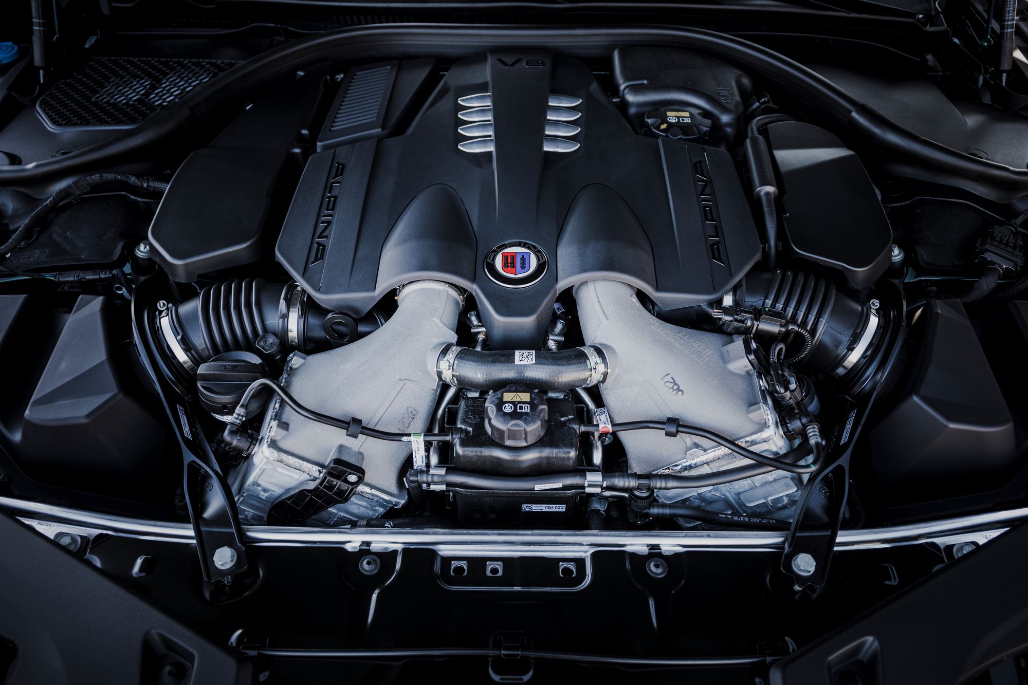 В основу машины легла версия BMW M850i xDrive с битурбомотором 4.4 V8 отдачей 530 л.с. и 750 Н•м. У B8 эти показатели доведены до 621 силы и 800 ньютон-метров. Звание мощнейшей модели в линейке за XB7 не продержалось и года. Седану с перенастроенными системой полного привода и восьмиступенчатым «автоматом» этого достаточно, чтобы выполнить упражнение 0-100 км/ч за 3,4 с (–0,5 по сравнению с донором), а 0-200 — за 11,6. Максимальная скорость не ограничена электроникой и равна 324 км/ч (+74)! Четырёхдверка M8 Competition (625 л.с. и 750 Н•м) тратит на разгон до сотни 3,2 с, а её максимальная скорость с электронным ошейником — 305 км/ч.
