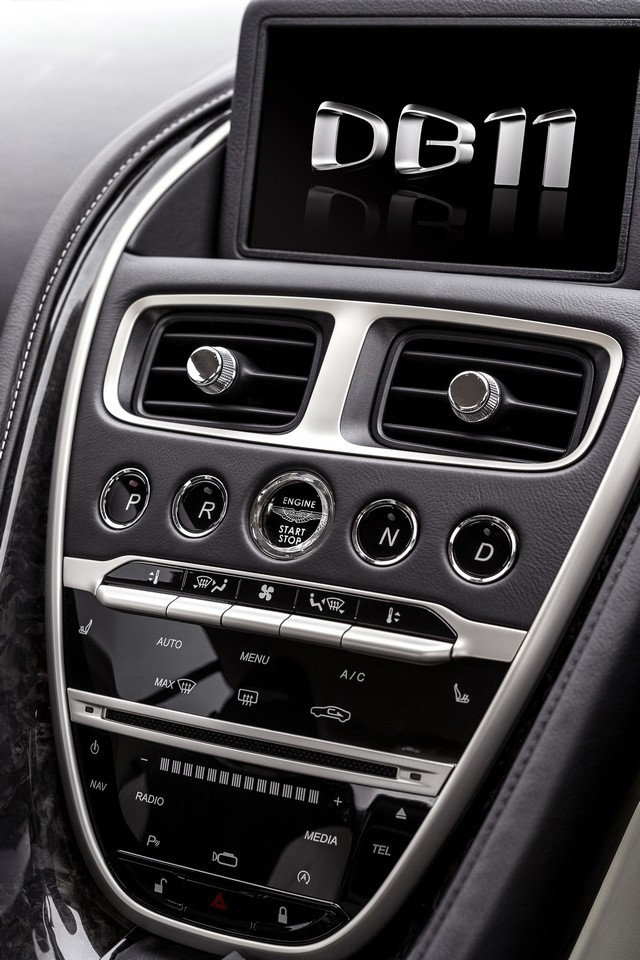 В оформлении задней стойки DB11 угадывается сходство с концептом DBX, а узкие С-образные фонари напоминают оптику лимитированного купе One-77. Колёсные диски — точно как у автомобиля Джеймса Бонда DB10. В целом автомобиль немного шире (1940 мм) и ниже (1279) предшественника. Слегка подросли база (2805) и длина (4739 мм). У DB9 было 2743 и 4709 мм соответственно.