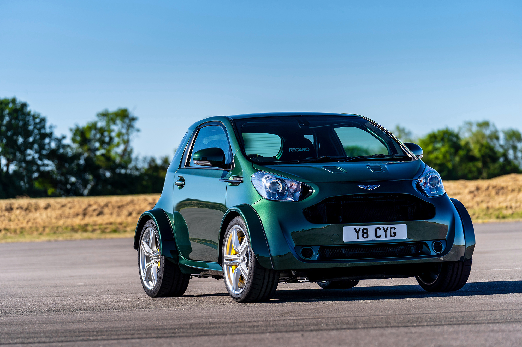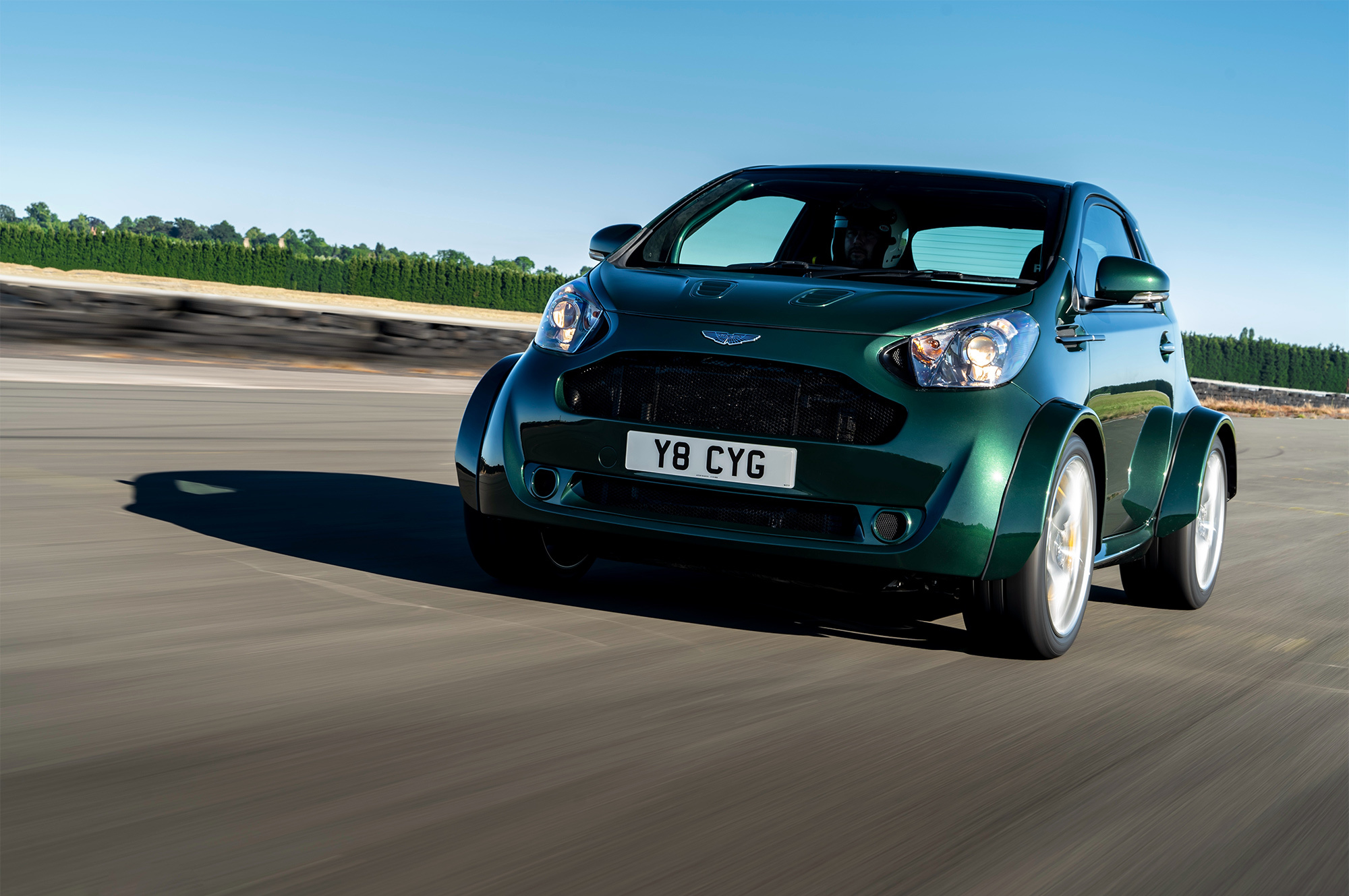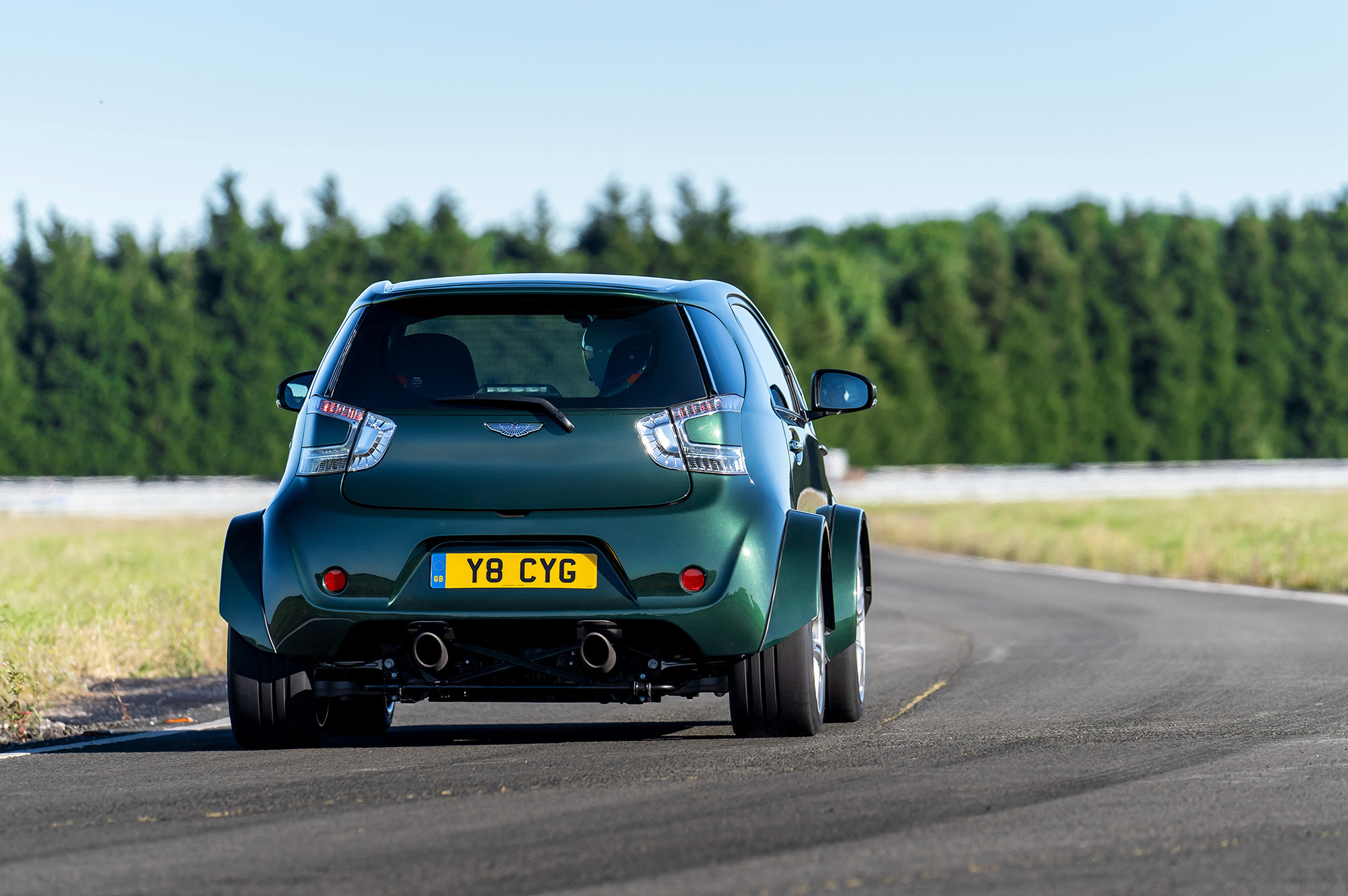Подобная переделка ― не новость в автоиндустрии. Мы уже видели 600-сильный NIssan Juke R ― автомобиль с кузовом, напоминающим кроссовер Juke, и начинкой от купе GT-R. Британская история повторяет этот сюжет. Основа здесь ― именно Aston Martin Vantage V8. Кузов трёхдверки Cygnet сохранил почти все внешние панели, но инженеры серьёзно переделали пол и увеличили длину автомобиля с 2985 до 3708 мм. Надо же было как-то разместить силовой агрегат, подрамники, подвеску и заднеприводную трансмиссию от Вантиджа. О нём, кстати, напомнит оригинальная колея (1570 мм спереди и 1560 сзади) и 19-дюймовые легкосплавные колёса, которые накрыли углепластиковыми расширителями арок.