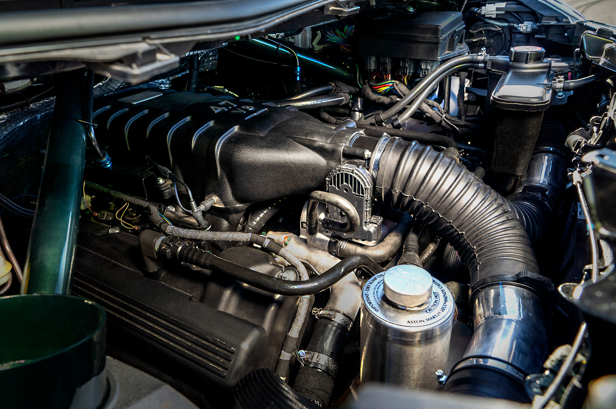 Как и у донора, у хэтча V8 Cygnet атмосферная «восьмёрка» 4.7 расположена спереди, а семиступенчатый «робот» Sportshift II (он же Graziano) сзади. Правда, пришлось укоротить вал, идущий от мотора к коробке передач, и переделать выпускную систему. Отдача двигателя прежняя ― 436 л.с. и 490 Н•м. Но снаряжённая масса у Сигнета составляет всего 1375 кг (у исходного спорткара — 1610 кг). Отсюда и выигрыш в динамике. Высокий хэтчбек набирает 97 км/ч на четыре десятых секунды быстрее ― за 4,2 с. Однако потом неважная аэродинамика берёт своё: если V8 Vantage S способен разогнаться до 305 км/ч, то максимальная скорость Сигнета ― 274 км/ч. Хотя и этот показатель кажется излишним для трёхдверки с колёсной базой 2020 мм.