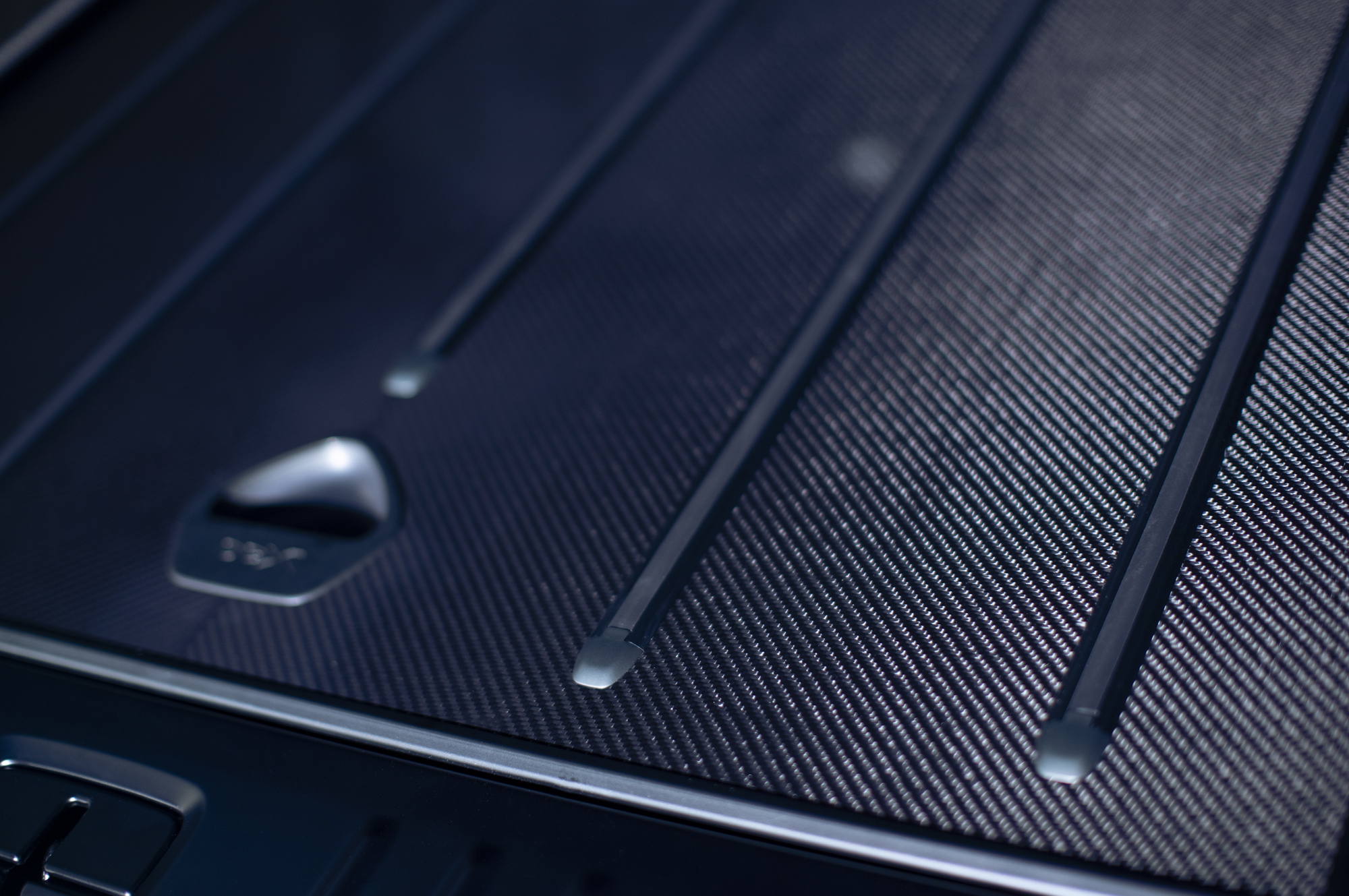 Самым нетривиальным дополнением к исходной модели стали декоративные углепластиковые накладки на дверях и центральной консоли. Для изготовления этих элементов применялась особая техника. Сначала мастера вручную наносили на заготовку 280 слоёв углеволокна. Затем после отверждения связующего материала (процесс занимал 12 часов) исходный кусок композита отправлялся на пятиосевой станок с ЧПУ, где подвергался фрезерованию в течение 90 часов. В итоге получалась деталь с оригинальным сложным рисунком.