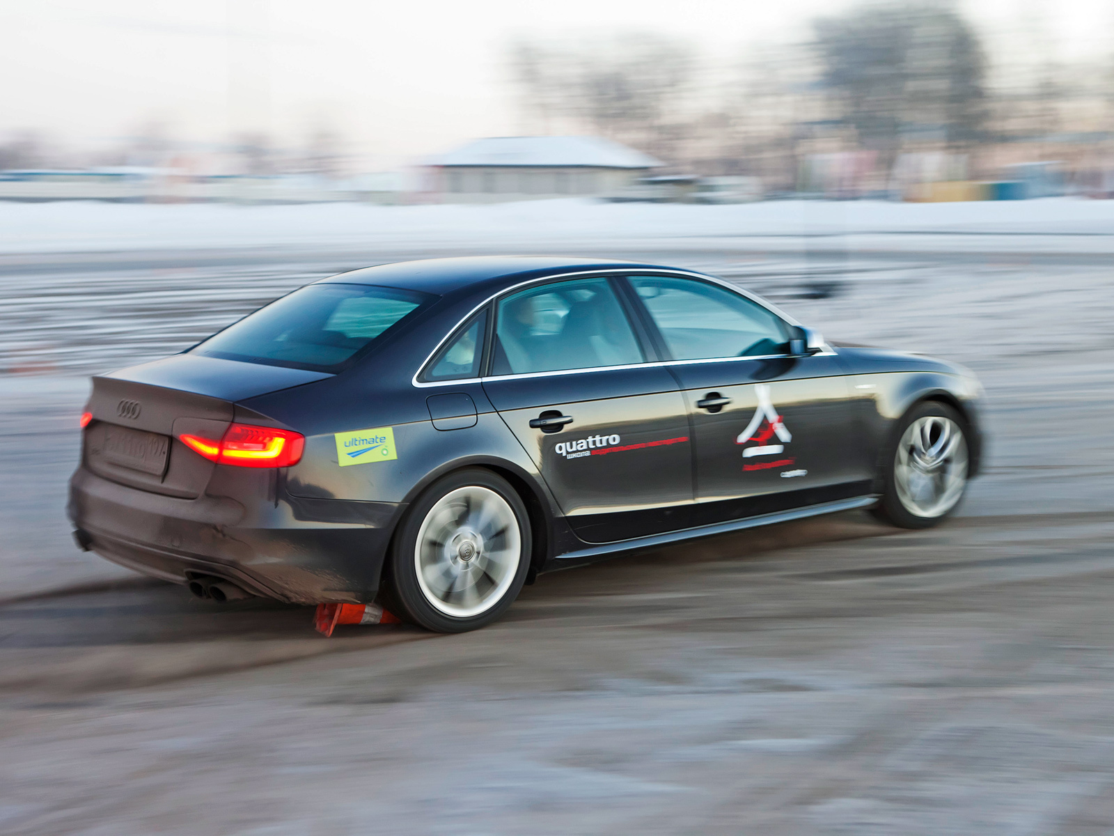 Да, характер Audi остался неизменным. Снег со льдом — прекрасный тому индикатор. В пределе купе скользит передней осью, в лучшем случае всеми четырьмя колёсами. Каждому случайному заносу радуешься как ребёнок. Но что с ним делать? В ответ на подачу топлива "эска" немедленно распрямляет траекторию. Школьные машины не оснащены задним активным дифференциалом, который способен заметно нивелировать врождённую недостаточную поворачиваемость. Без него на змейках всех мастей Audi демонстрирует извечную слабость на передок.