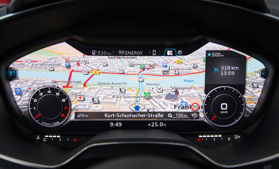 Универсальный экран перед водителем позволил визуально облегчить переднюю панель. Но вспомним, что в своё время погоня за минимализмом во внешности обернулась для ТТ первого поколения конфузом: убрали снаружи всё лишнее — получили аэродинамическую разгрузку задней оси и, как следствие, срыв её в повороте на скорости. Потом добавили спойлер. Единственный дисплей, отвечающий сразу за всё, представляется как минимум спорным решением. На перефокусировку взгляда с дороги на приборку и обратно уходит больше времени, чем на схватывание информации, расположенной на периферии. Не зря компании всё шире внедряют проекции на лобовое стекло, а в последних моделях Пежо, к примеру, конструкторы перенесли комбинацию приборов подальше от водителя и выше обода баранки. Немцы заявляют о радости использования нового интерфейса, но насколько удобным и безопасным он будет в реальности — покажут лишь тесты. Кстати, сама модель должна поступить на рынок уже в нынешнем году.