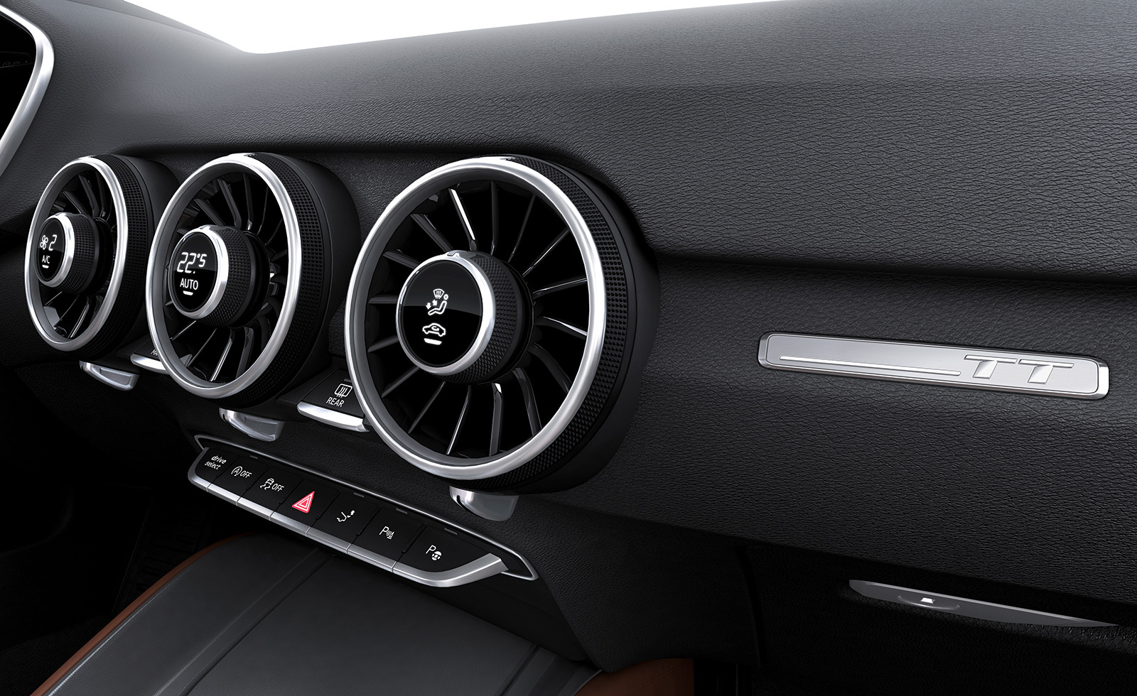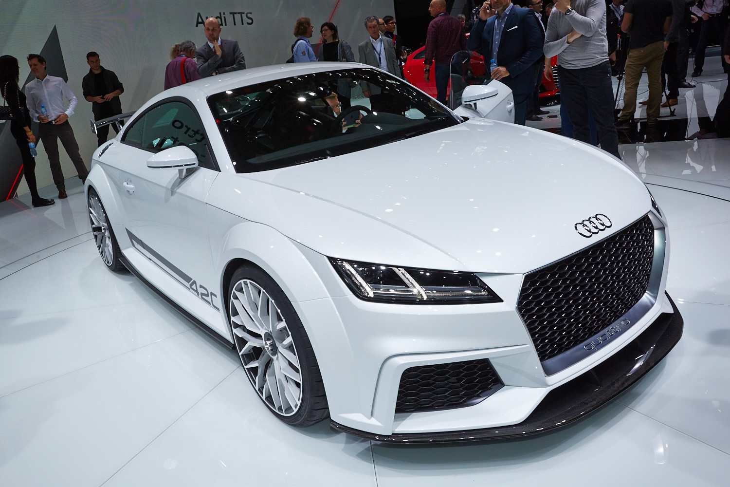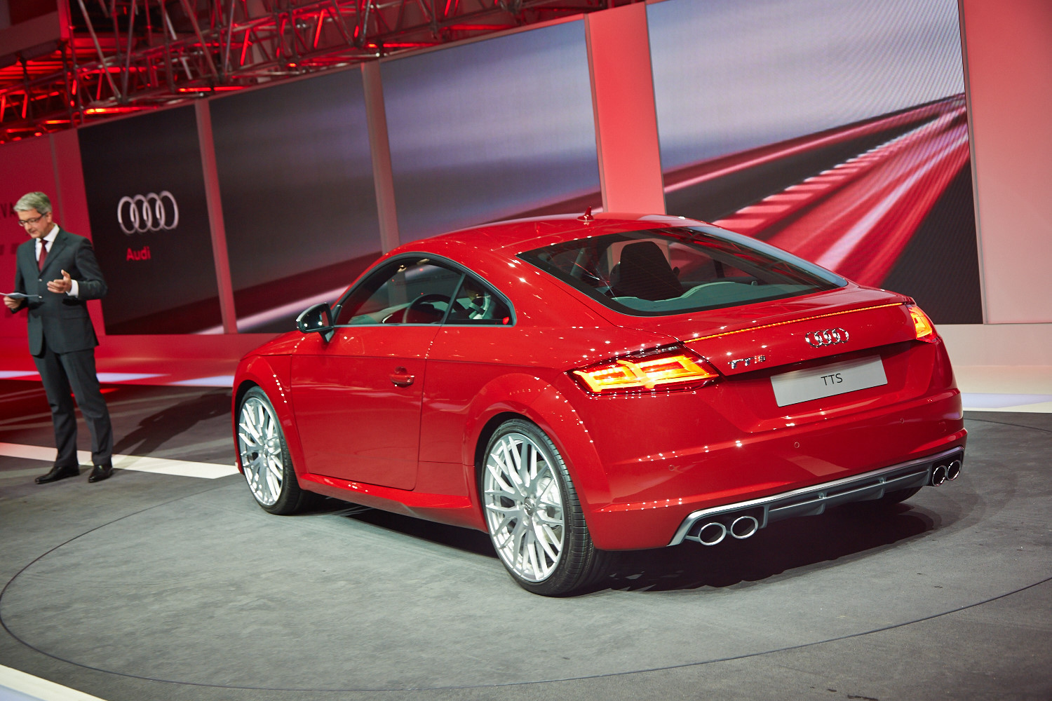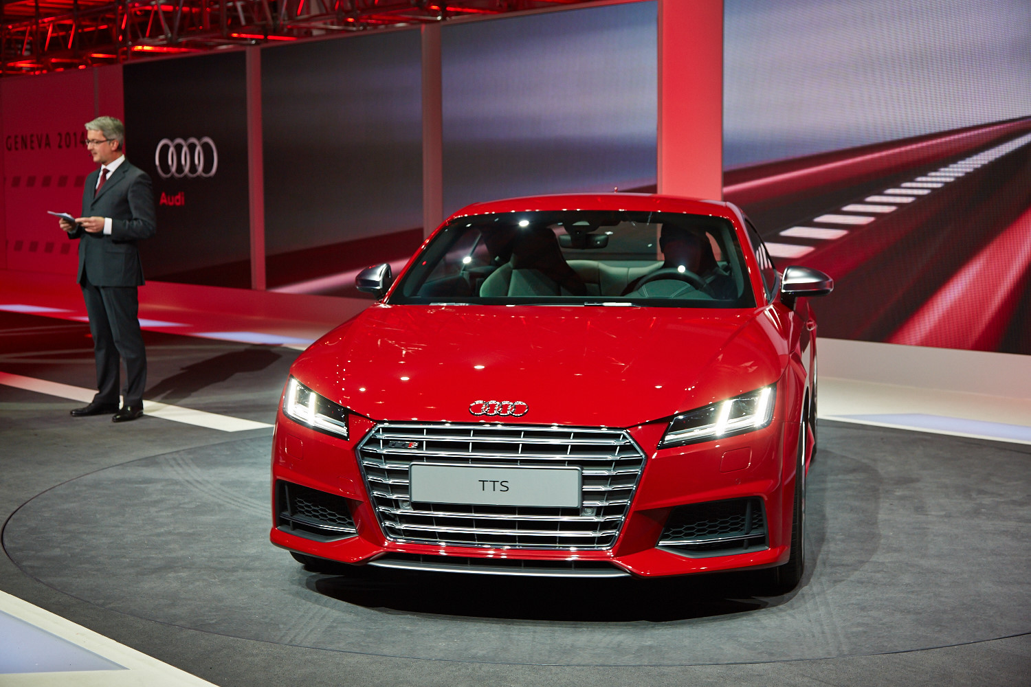 Интерьер выполнен в минималистичном ключе, а передняя панель, лишённая центрального дисплея, благодаря круглым воздуховодам призвана напоминать крыло самолёта (при взгляде сверху). Общий для приборов и мультимедиа-системы экран имеет разрешение 1440 на 540 и может работать в нескольких режимах. Для обычного хэтчбека доступны классическая компоновка с крупными циферблатами и небольшой информационной частью и развлекательная, в которой спидометр и тахометр становятся меньше и освобождают место, к примеру, для карты. В версии TTS есть ещё один вариант дисплея — с крупным тахометром по центру экрана. Кроме того, машину обучили понимать голосовые команды. Продажи начнутся в конце 2014 года, и тогда же станут известны финальные данные по динамике и расходу топлива, а также цены.