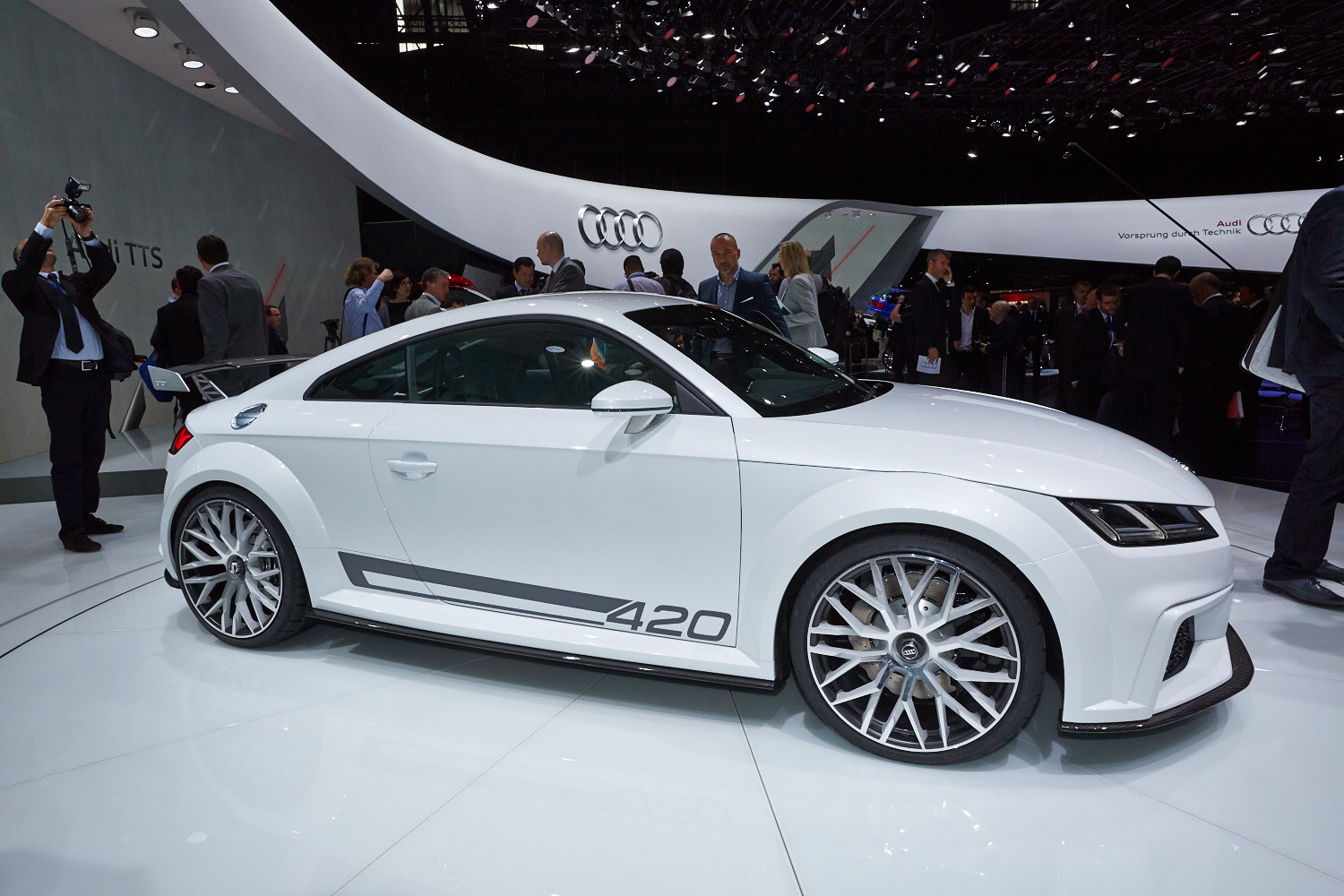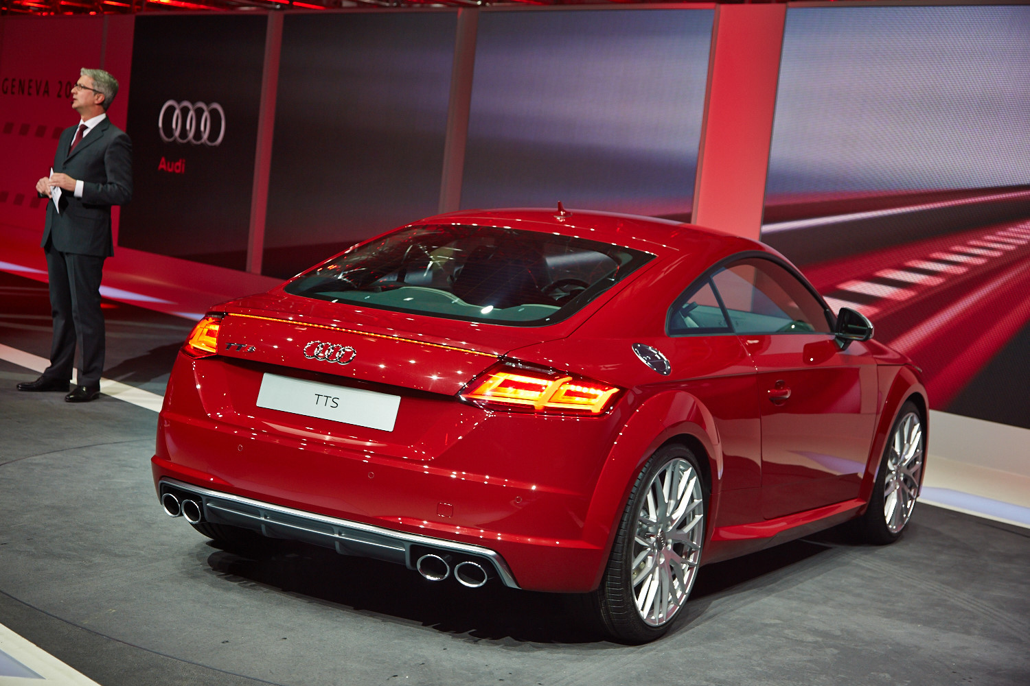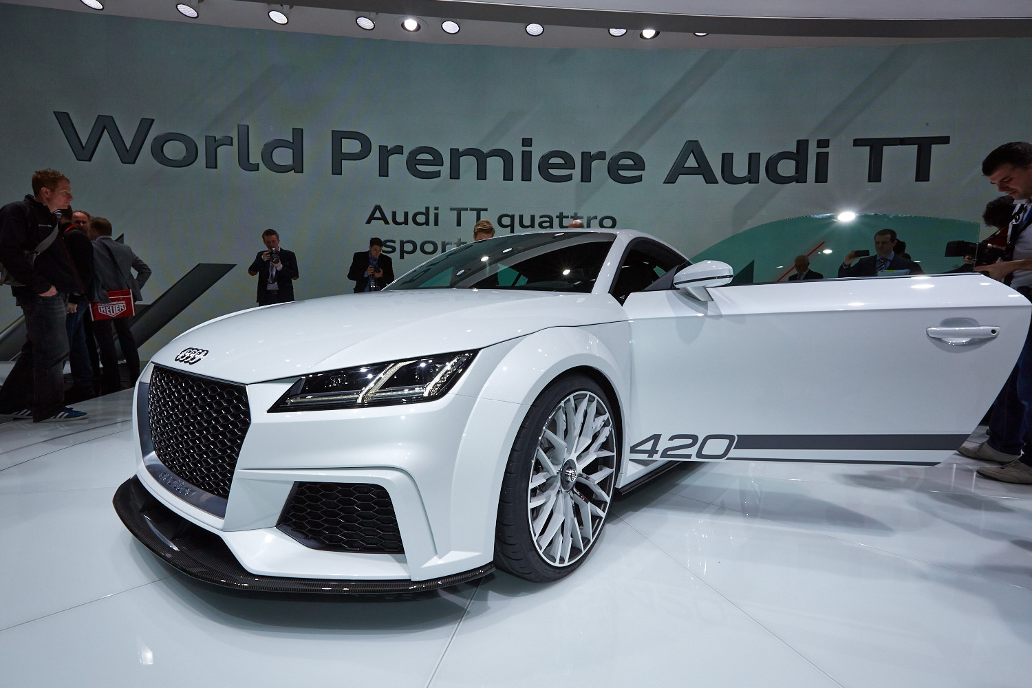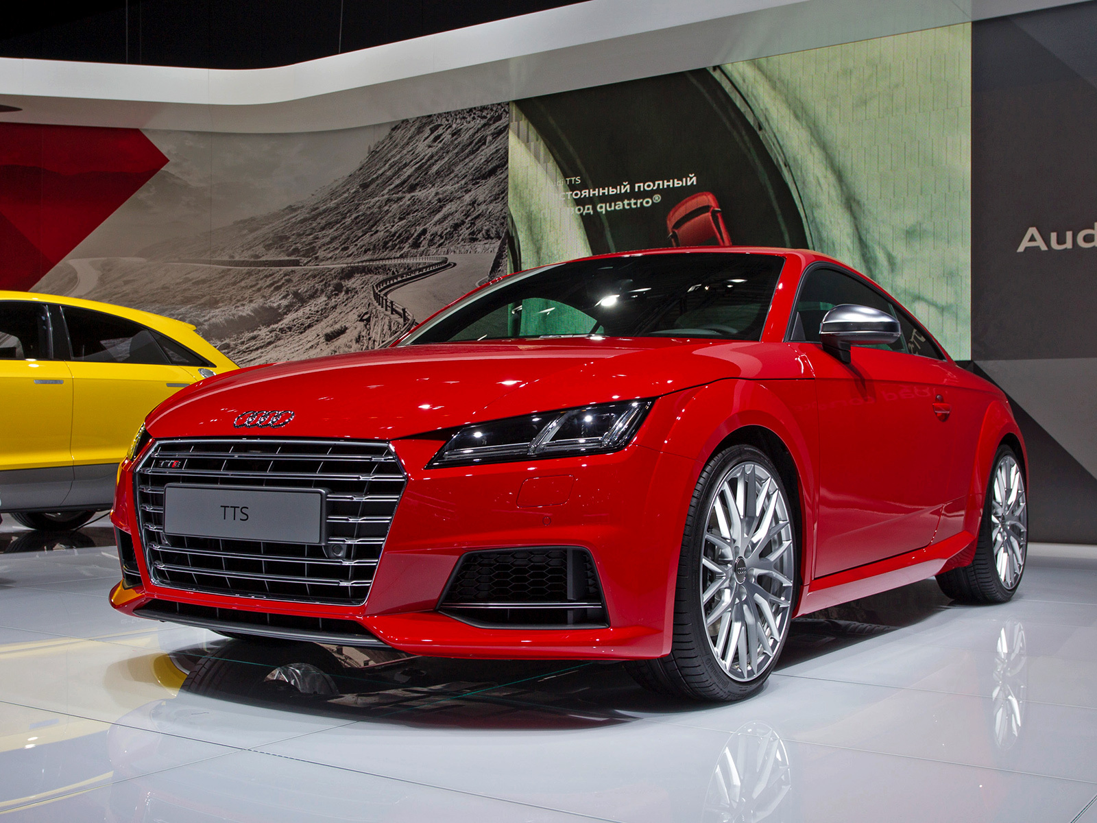 Интерьер выполнен в минималистичном ключе, а передняя панель, лишённая центрального дисплея, благодаря круглым воздуховодам призвана напоминать крыло самолёта (при взгляде сверху). Общий для приборов и мультимедиа-системы экран имеет разрешение 1440 на 540 и может работать в нескольких режимах. Для обычного хэтчбека доступны классическая компоновка с крупными циферблатами и небольшой информационной частью и развлекательная, в которой спидометр и тахометр становятся меньше и освобождают место, к примеру, для карты. В версии TTS есть ещё один вариант дисплея — с крупным тахометром по центру экрана. Кроме того, машину обучили понимать голосовые команды. Продажи начнутся в конце 2014 года, и тогда же станут известны финальные данные по динамике и расходу топлива, а также цены.