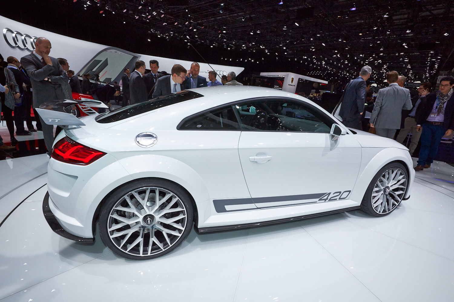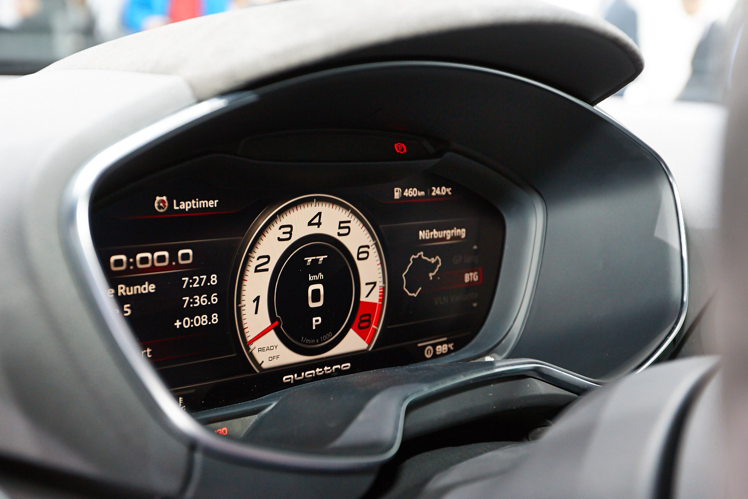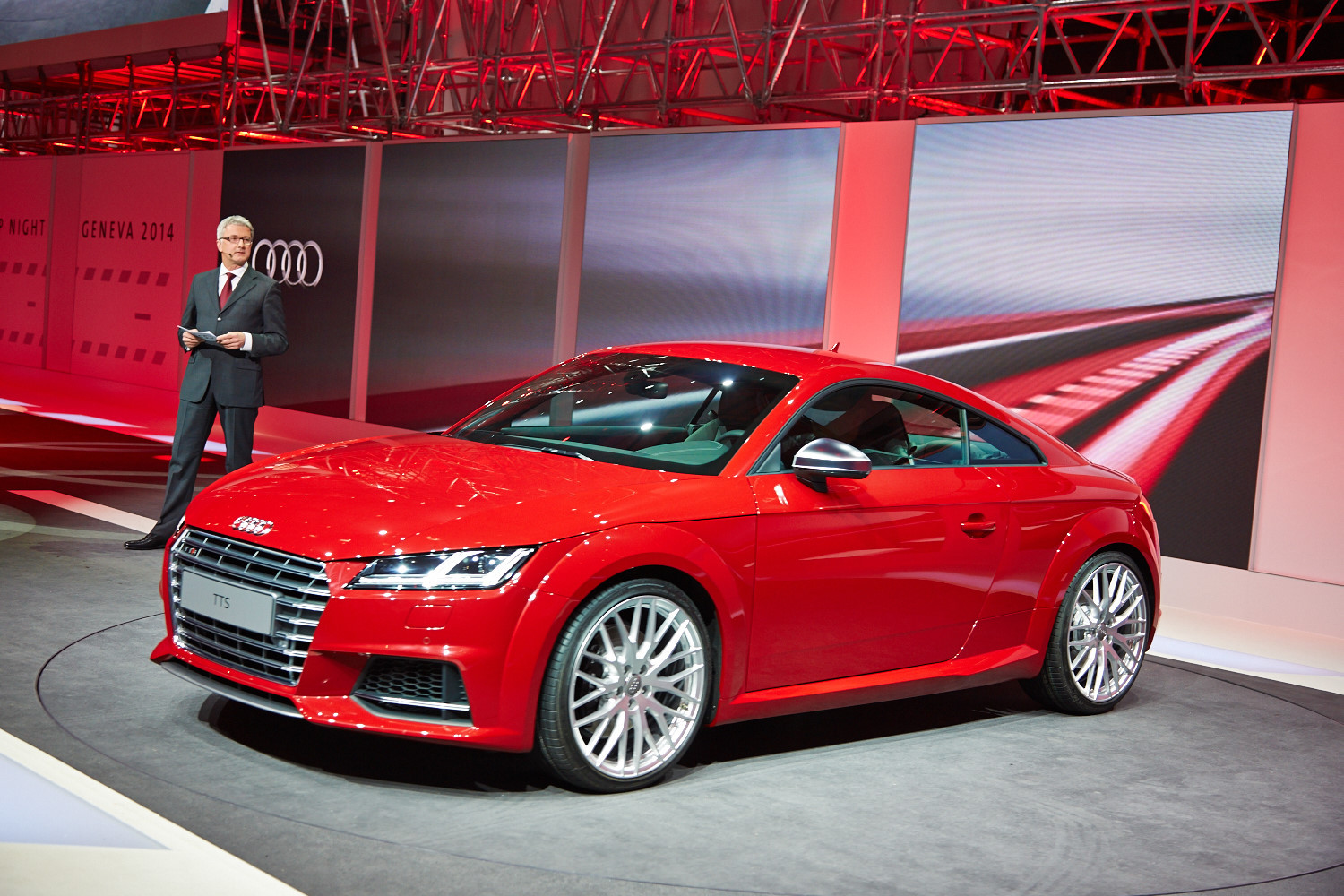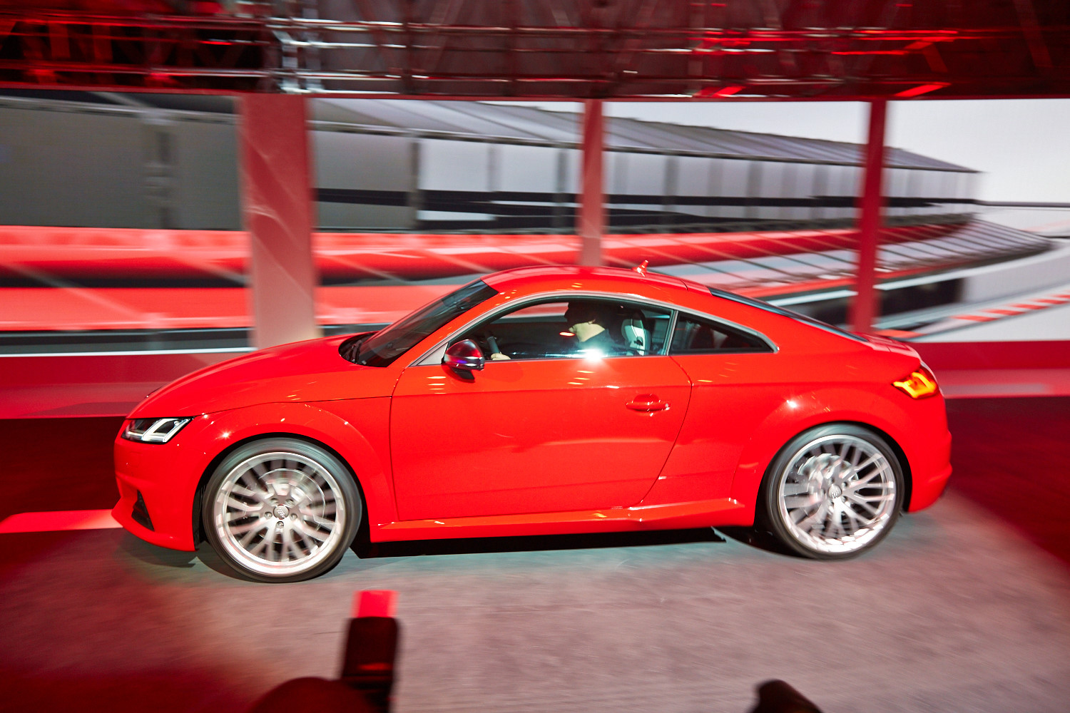 Интерьер выполнен в минималистичном ключе, а передняя панель, лишённая центрального дисплея, благодаря круглым воздуховодам призвана напоминать крыло самолёта (при взгляде сверху). Общий для приборов и мультимедиа-системы экран имеет разрешение 1440 на 540 и может работать в нескольких режимах. Для обычного хэтчбека доступны классическая компоновка с крупными циферблатами и небольшой информационной частью и развлекательная, в которой спидометр и тахометр становятся меньше и освобождают место, к примеру, для карты. В версии TTS есть ещё один вариант дисплея — с крупным тахометром по центру экрана. Кроме того, машину обучили понимать голосовые команды. Продажи начнутся в конце 2014 года, и тогда же станут известны финальные данные по динамике и расходу топлива, а также цены.