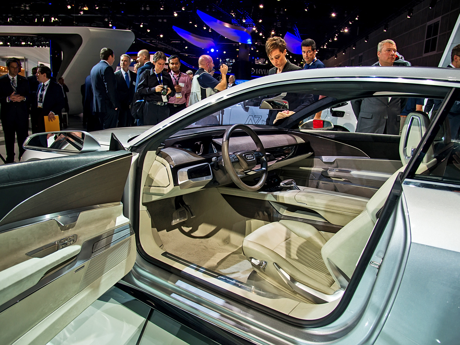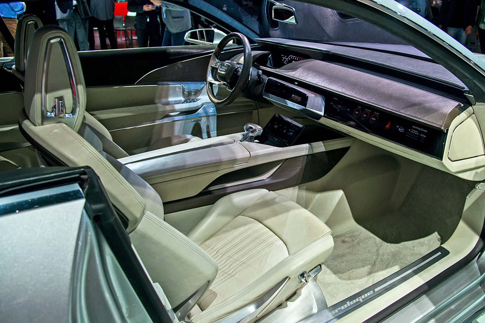 Водителя и пассажиров встречает система butler (дворецкий), которая идентифицирует известных ей людей по их смартфонам и автоматически настраивает сиденья, климат-контроль, «музыку» и навигацию. В переднюю панель интегрированы три сенсорных дисплея (один из них — приборы). Ещё один экран, на органических светодиодах (OLED), примостился на центральном тоннеле: он встроен в консоль заподлицо и почти невидим, а когда автомобиль трогается с места, поднимается. С помощью всего этого (называется «виртуальный кокпит будущего») водитель и передний пассажир могут взаимодействовать друг с другом через информационно-развлекательную систему. В общем, интересно, какие из необычных решений доберутся до конвейерной Audi A9, ожидаемой примерно в 2017 году. А концепт нам ещё предстоит пощупать на мотор-шоу в Лос-Анджелесе.