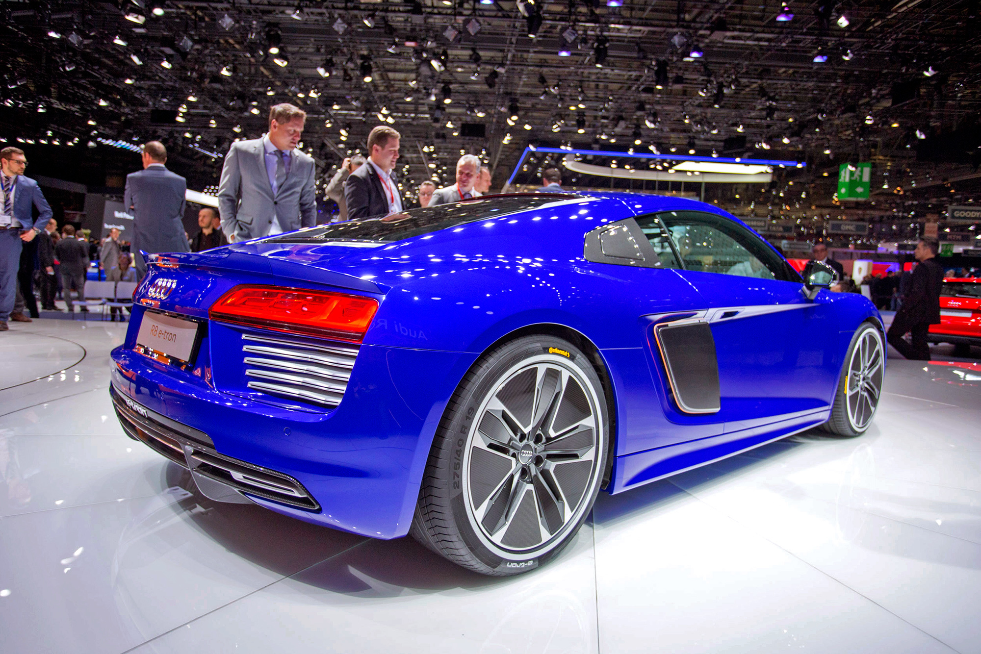 Пара электромоторов на задней оси «е-трона» развивает в сумме 340 кВт (462 л.с.) и 920 Н•м. С нуля до ста купе ускоряется за 3,9 с (всего на 0,4 с медленнее, чем R8 V10). У ранних прототипов было 4,2–4,6 с. Максималка ограничена электроникой на уровне 210 или 250 км/ч (на выбор). Для более уверенного прохождения поворотов предусмотрена система векторизации тяги (раздельное управления моторами). Впрочем, низкий центр тяжести в этом плане тоже помогает.