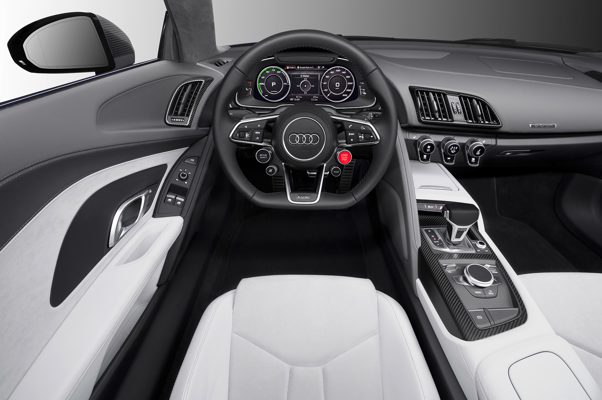 Спорткар оснастили системой zFAS, собирающей данные от лазерных сканеров, расположенных по периметру видеокамер, а также ультразвуковых и радарных датчиков. Основываясь на этих параметрах, компьютер воссоздаёт виртуальную картину окружающего пространства. За управление Audi R8 e-tron полностью отвечает электроника.