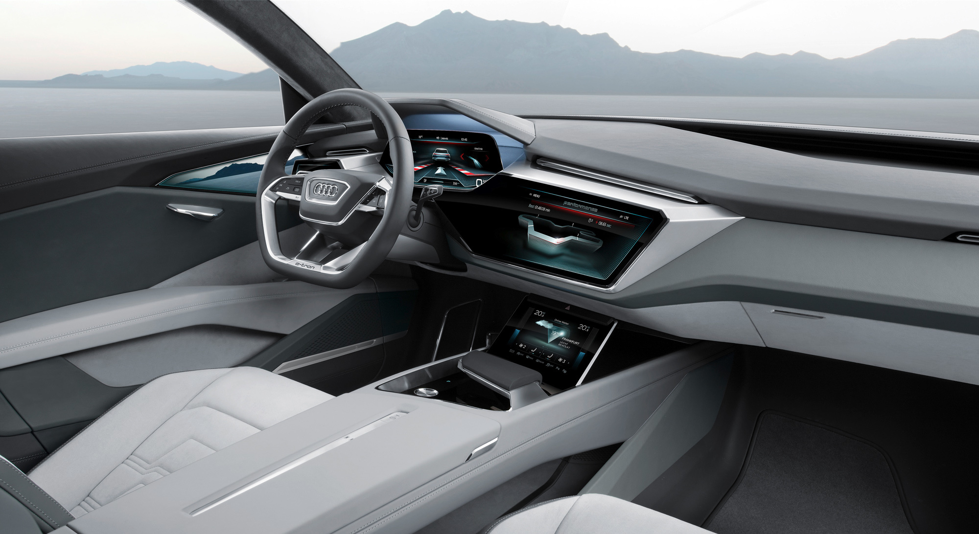 Ёмкость батареи концепта — 95 кВт•ч (на 5 кВт•ч больше, чем у топовой Теслы S P90D). Этого достаточно, чтобы проходить на одной зарядке более 500 км. Всего 50 минут нужно, чтобы полностью зарядить этот аккумулятор от станции экспресс-зарядки мощностью 150 кВт. Также возможно пополнение запаса от обычной сети переменного тока. А ещё в машину встроена система бесконтактной зарядки Audi Wireless Charging.