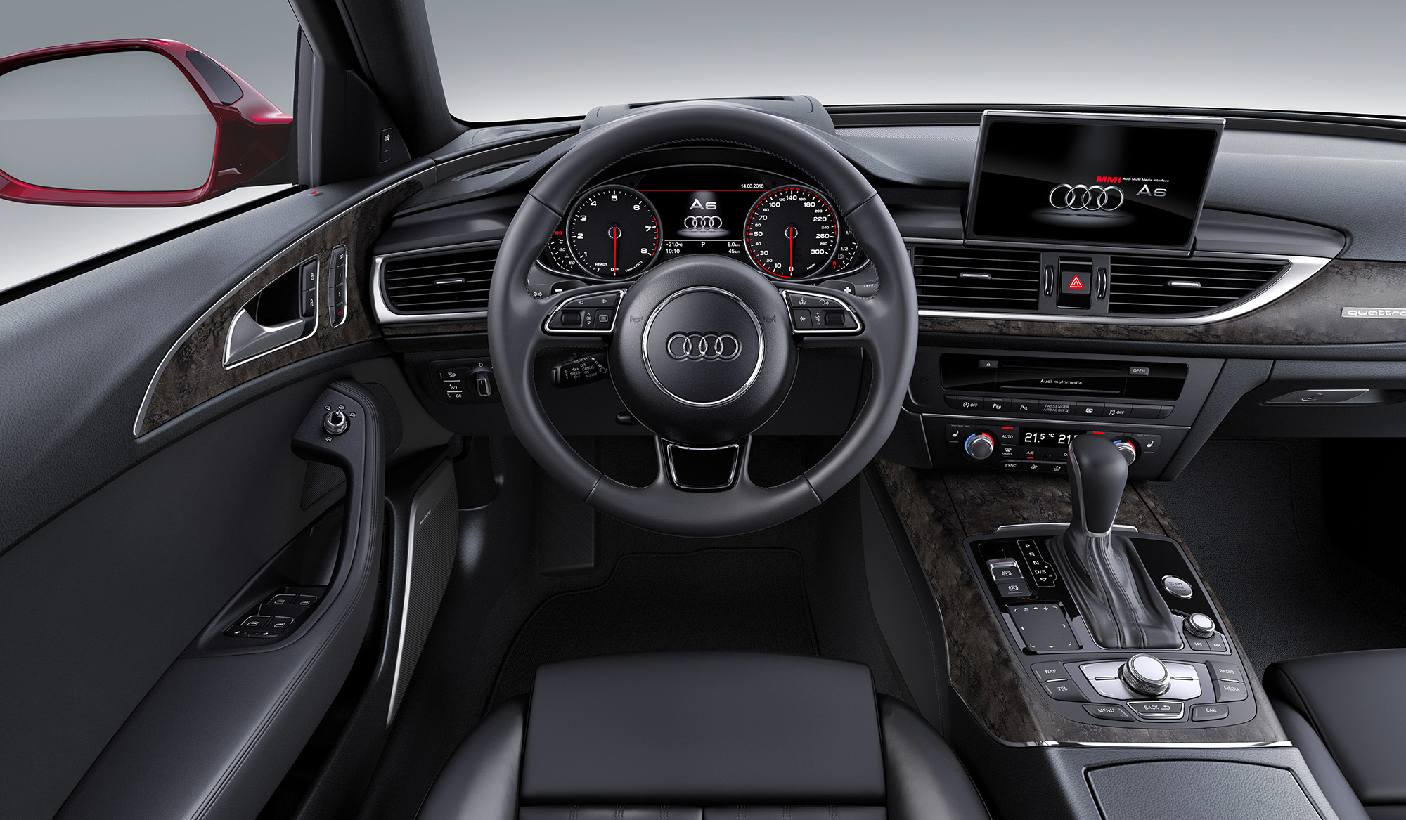 Семейство Audi A6 с пакетом отделки S Line обзавелось обновленной решёткой радиатора, боковые воздухозаборники теперь обрамлены хромом, а на моделях с адаптивным круиз-контролем они дополнены хромированными кольцами. В палитру цветов добавились красный Matador Red, зелёный Gotland Green и коричневый Java Brown, который ранее использовался только для вседорожника Audi A6 allroad.