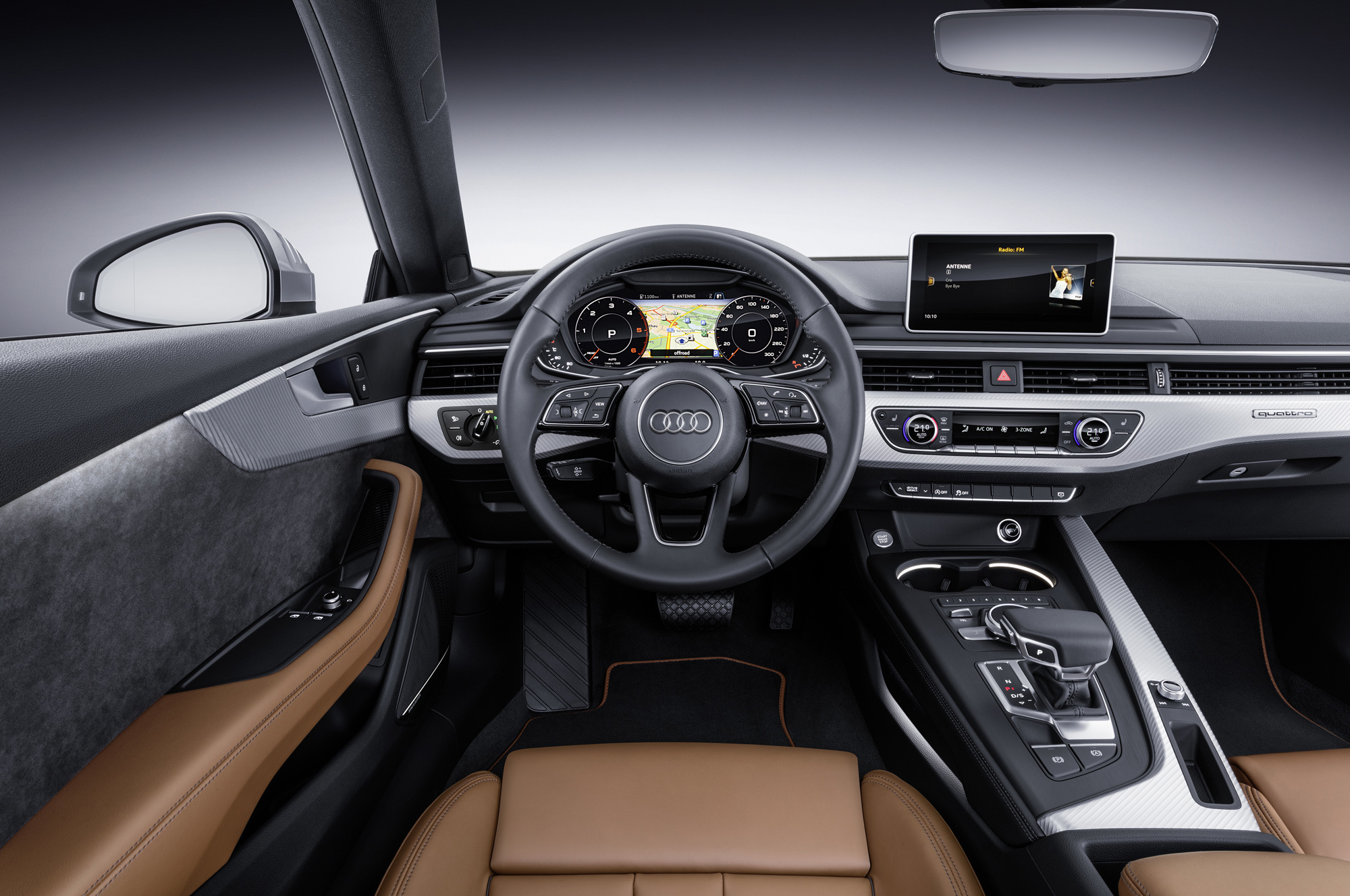 Смена генерации принесла купе цифровую приборку (12,3 дюйма, 1440×540 точек), интерфейсы Apple Car Play и Android Auto, связь смартфона с внешней антенной и индуктивный зарядный коврик. Докупить можно аудиосистему Bang & Olufsen с трёхмерным звучанием. А ещё модель Audi А5 повысила активную безопасность: есть адаптивный круиз-контроль с функцией Stop&Go и автоматическим движением в пробке, системы активного удержания на полосе и слежения за поперечным трафиком сзади, распознавание дорожных знаков и автоматическое торможение на городских скоростях. Есть даже устройство, предупреждающее человека, желающего распахнуть дверцу, о приближении другой машины сзади.