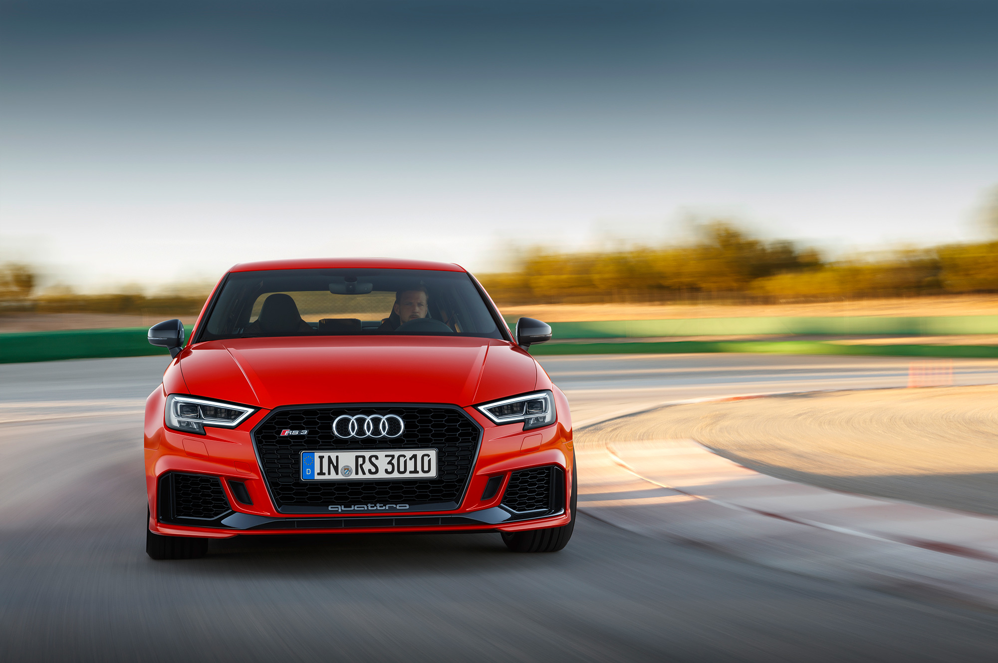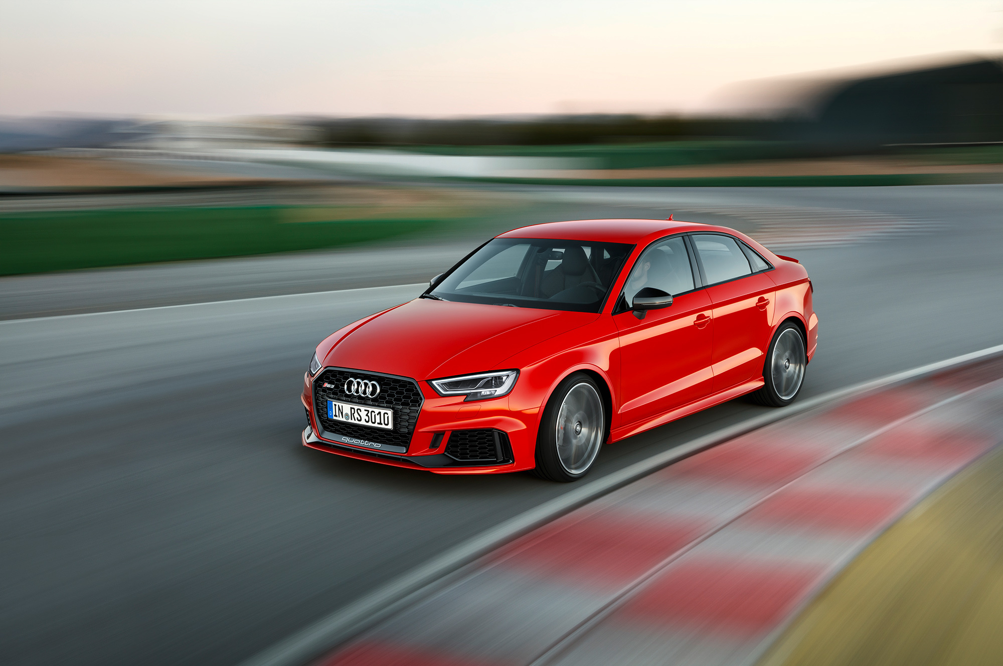 В столице Франции прошла мировая премьера модели Audi RS 3 Sedan, которую на сцене поддержал новый спортивный снаряд по имени RS 3 LMS. В гражданской четырёхдверке внимание привлекает в первую очередь мотор. Как и было предсказано, машина получила полностью новую «турбопятёрку» 2.5 (400 л.с., 480 Н•м). Фирма Audi уверяет, что мощнее пятицилиндровых агрегатов на рынке нет. Его покупатели уже смогли оценить на купе TT RS. Он же должен добраться до хот-хэтча RS 3 Sportback при его обновлении.