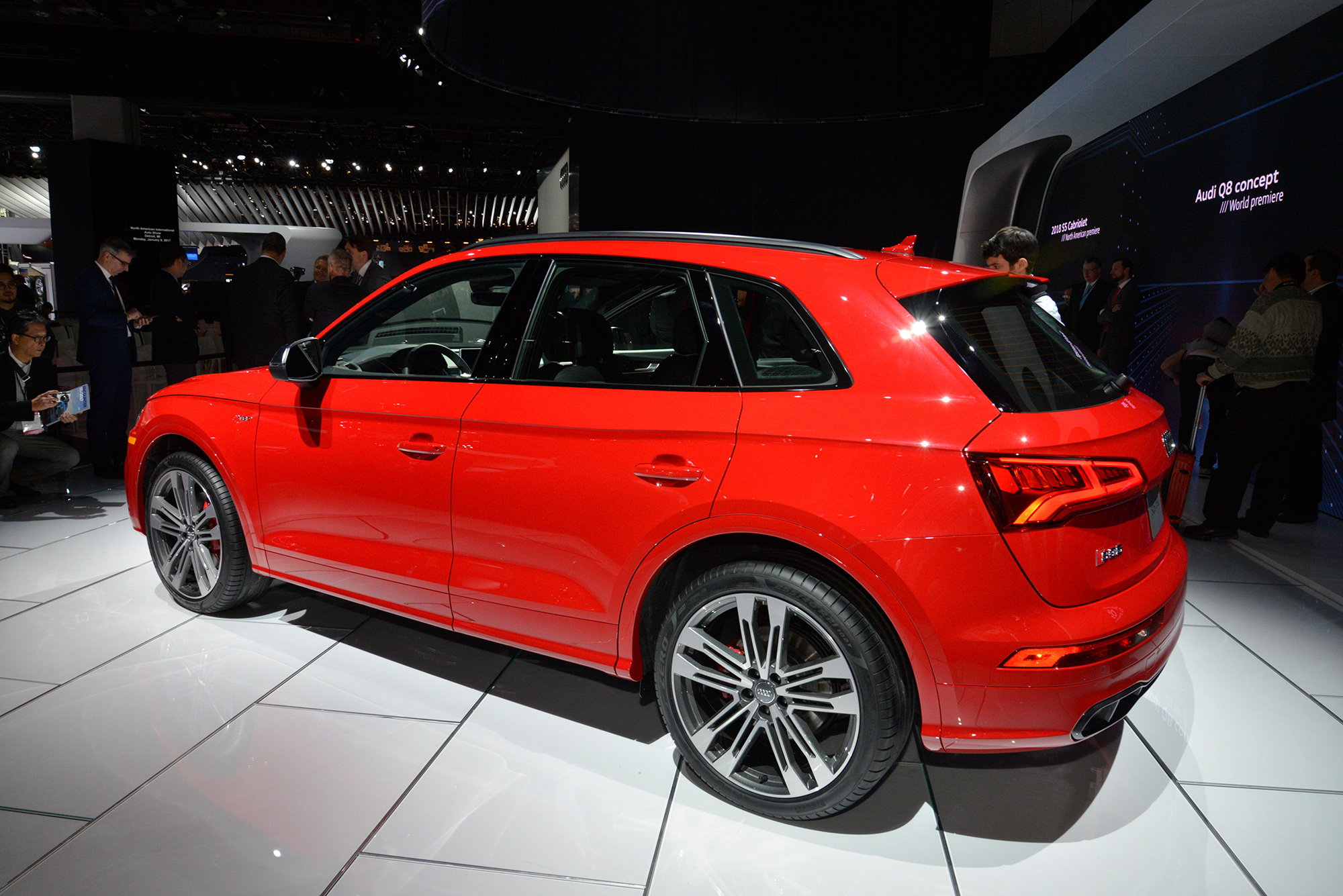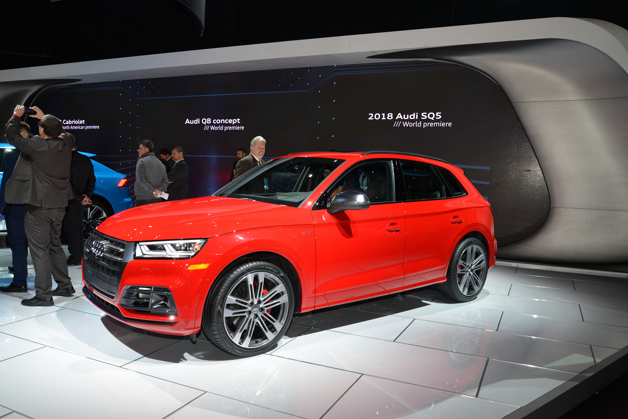 Второе поколение «заряженного» кроссовера Audi SQ5 дебютировало в Детройте и сюрпризов не принесло. Хотя компрессорная «шестёрка» уступила место турбированному двигателю V6 3.0 TFSI, мощность осталась прежней — 354 л.с. Правда, тяги стало больше на 30 ньютон-метров. Теперь в распоряжении Audi SQ5 те же 500 Н•м, что есть у моделей S4 и S5. Полный привод quattro и восьмиступенчатый «автомат» tiptronic альтернативы не имеют.