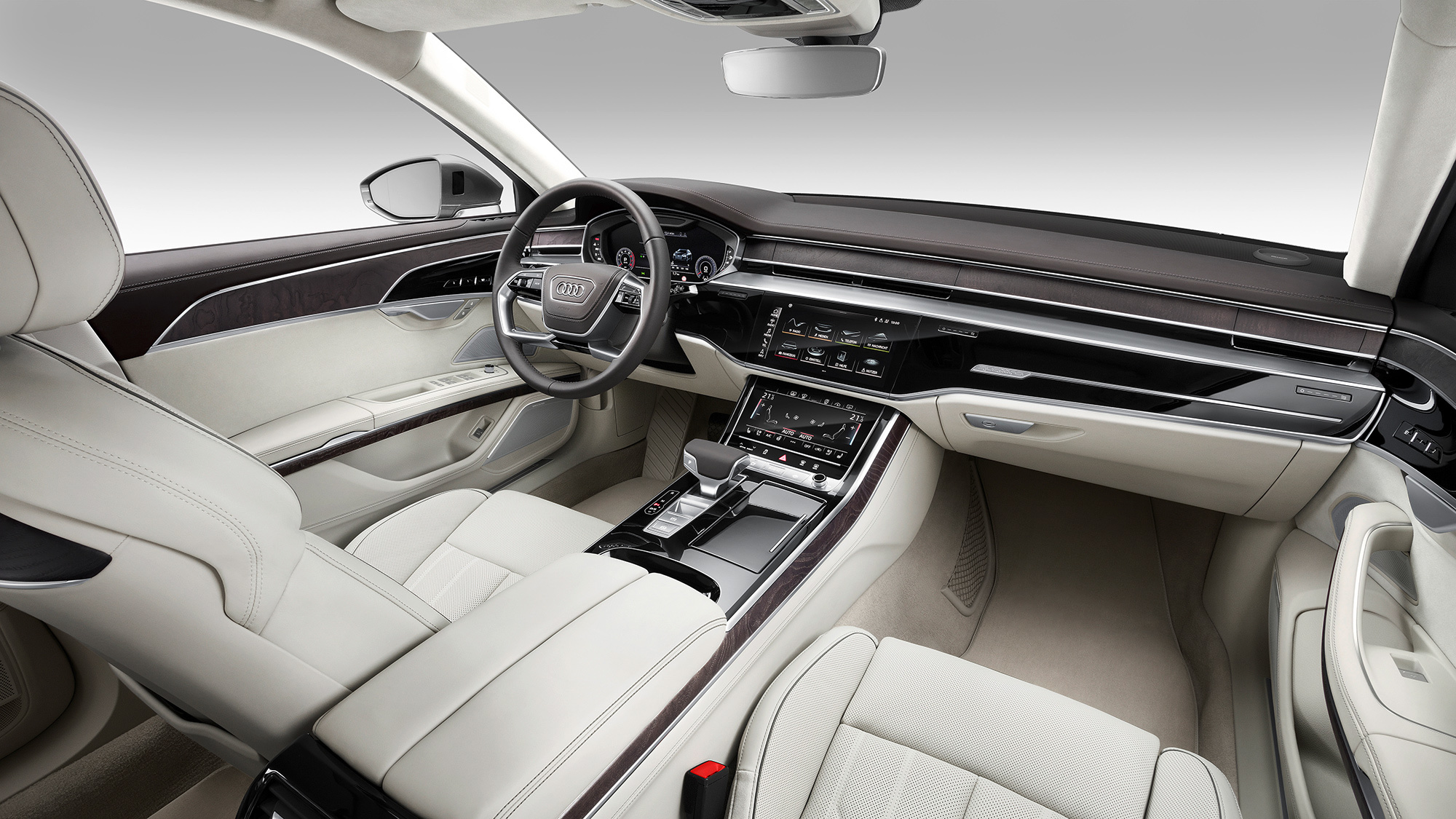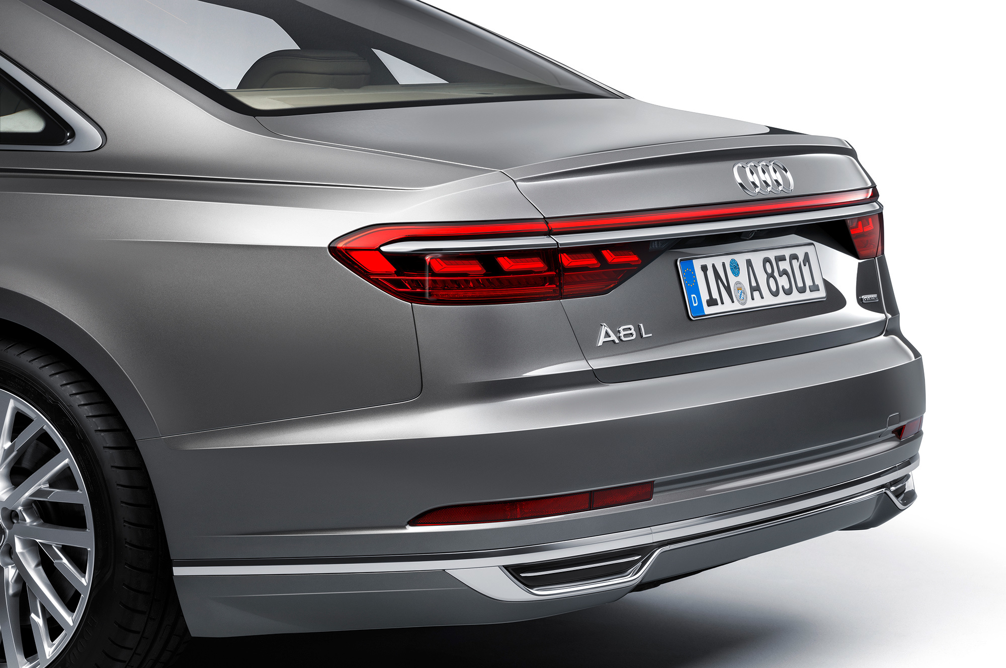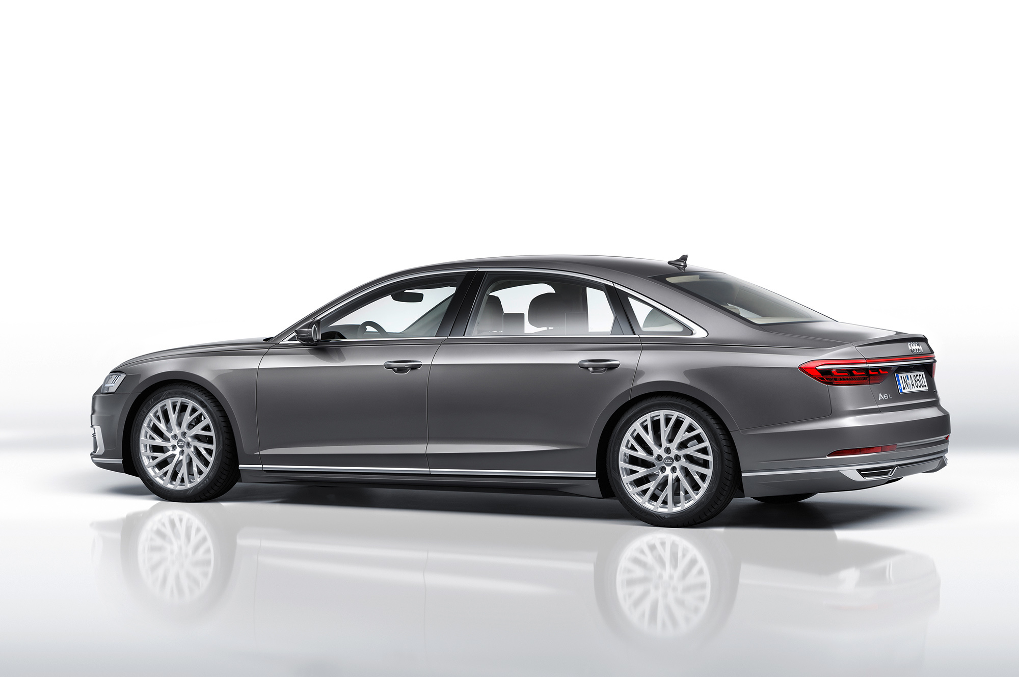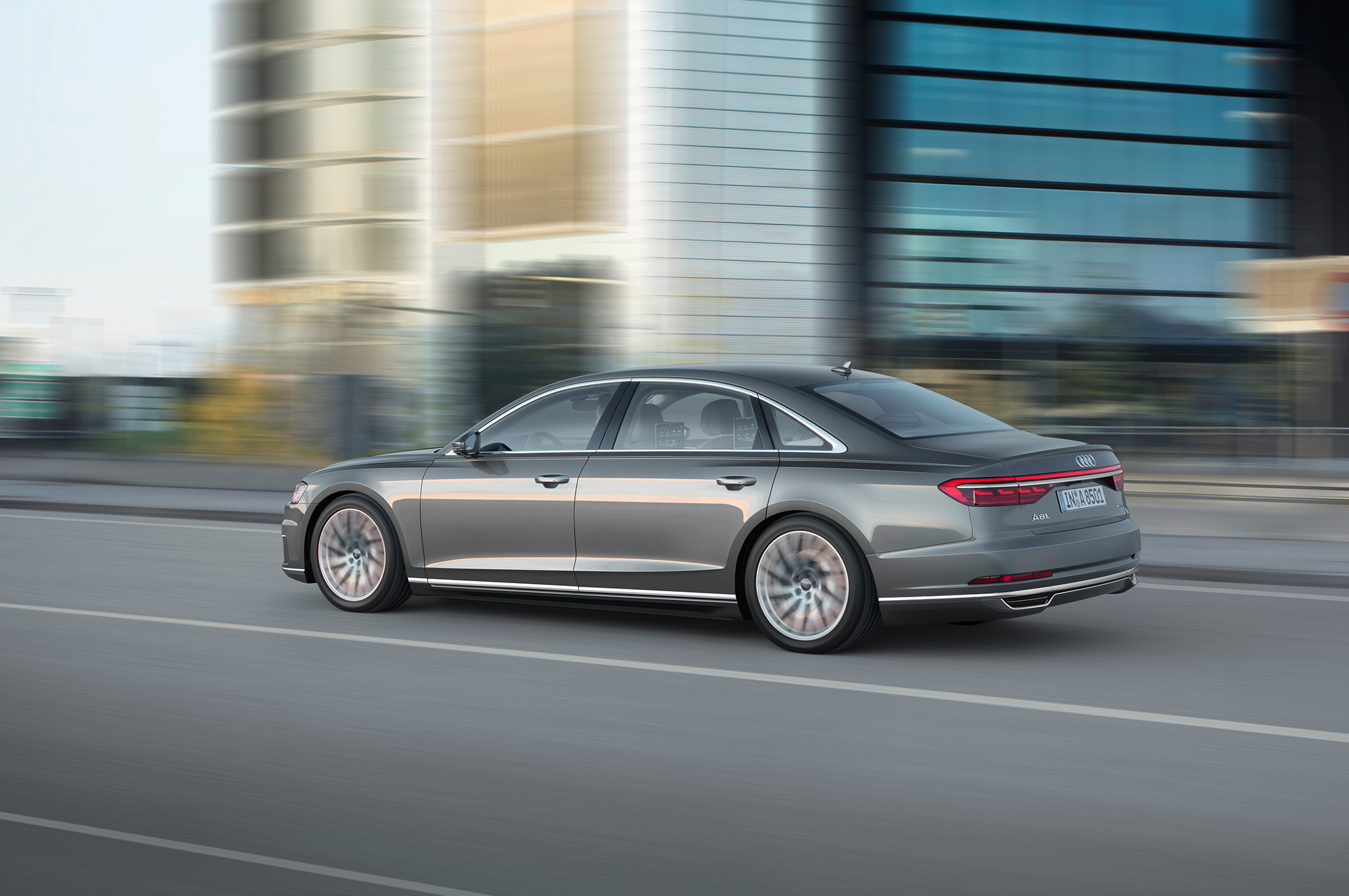 Эта система не только помогает мотору, но и умеет питать вспомогательное оборудование во время свободного выбега с заглушённым ДВС на скоростях от 55 до 160 км/ч. Компания подчёркивает, что А8 стала первой моделью среди премиальных марок, все модификации которой электрифицированы (W12 тоже получит систему Mild Hybrid). Все моторы сочетаются с новым более эффективным восьмиступенчатым «автоматом» и полным приводом (центральный самоблокирующийся дифференциал в норме делит тягу в пропорции 40:60 в пользу задней оси). С 2018 года бензиновые агрегаты обзаведутся фильтром твёрдых частиц.