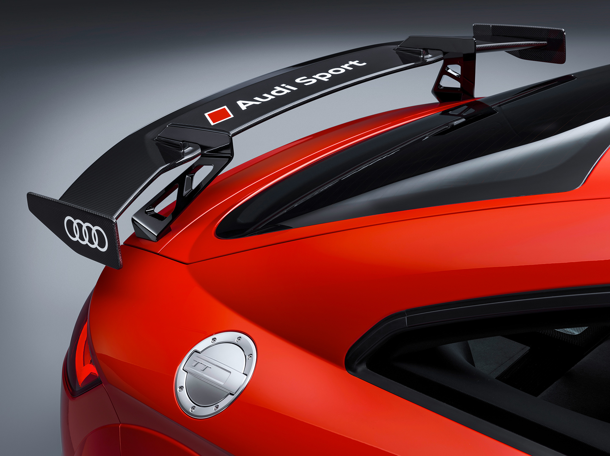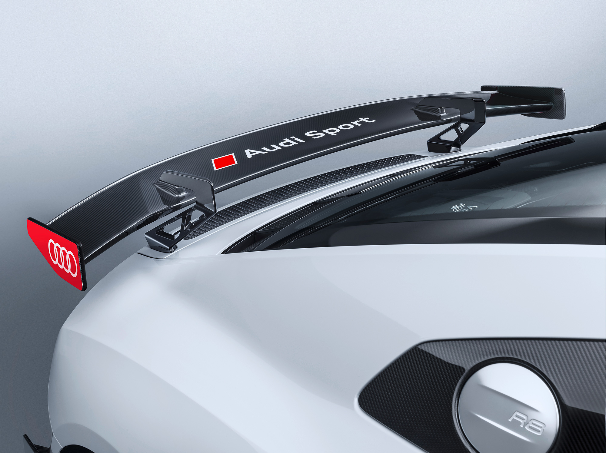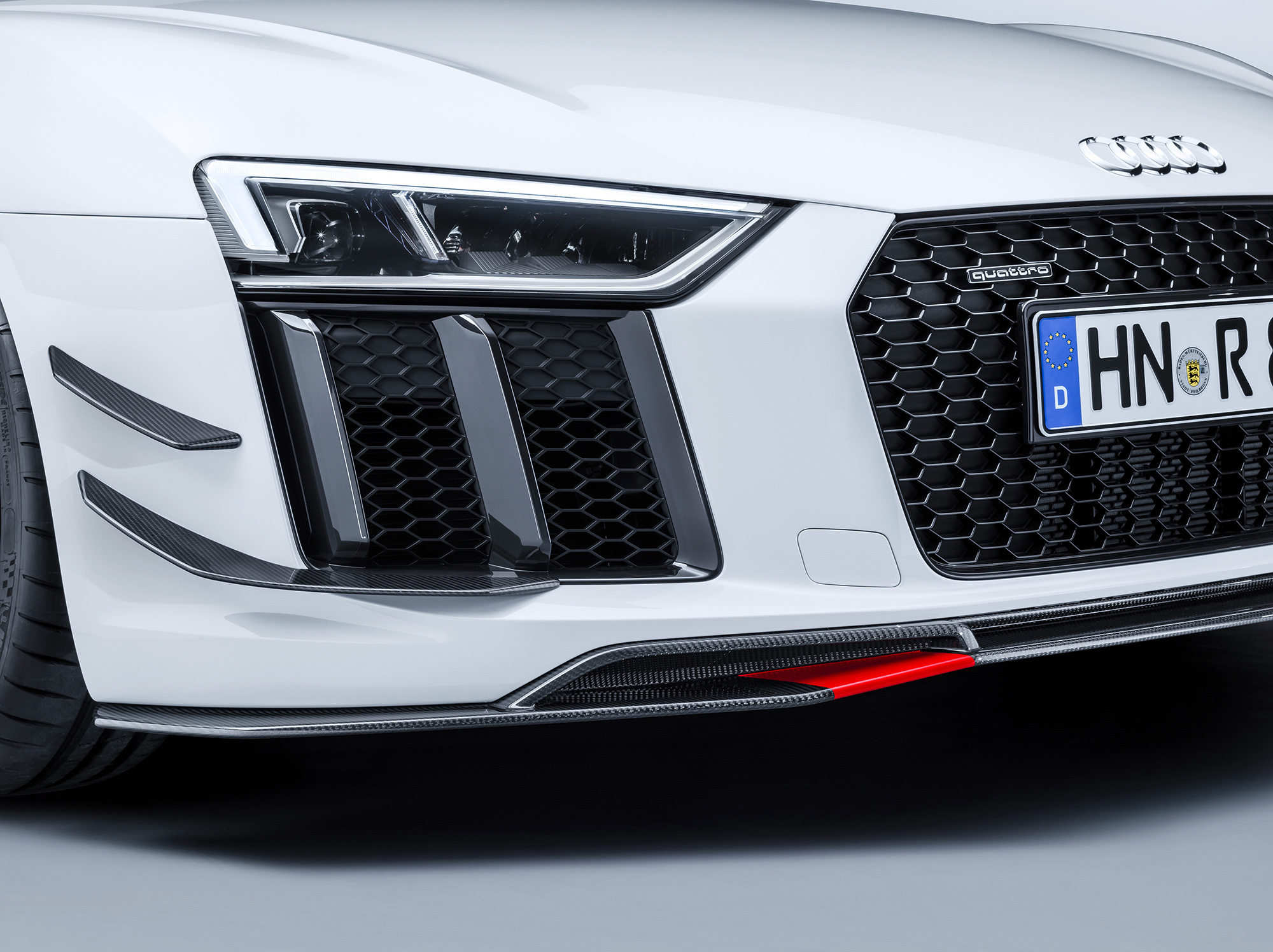 Снаружи машины с опциональным пакетом невозможно не узнать. Семейство Audi TT и суперкар R8 получили аэродинамические элементы из углепластика ― канарды и спойлер в переднем бампере, расширенные накладки на пороги, диффузор и выросшее сзади стационарное антикрыло. Также на Audi TT можно докупить капот с вентиляционным отверстием. Эти изменения не только выглядят круто, но и аэродинамику оптимизируют. Например, на Audi R8 при скорости 330 км/ч действует прижимная сила в 250 кг, что на 100 кг больше, чем на версии без аэрокита. А на 150 км/ч этот же показатель составляет 52 кг, что вдвое больше, чем на стандартной машине.