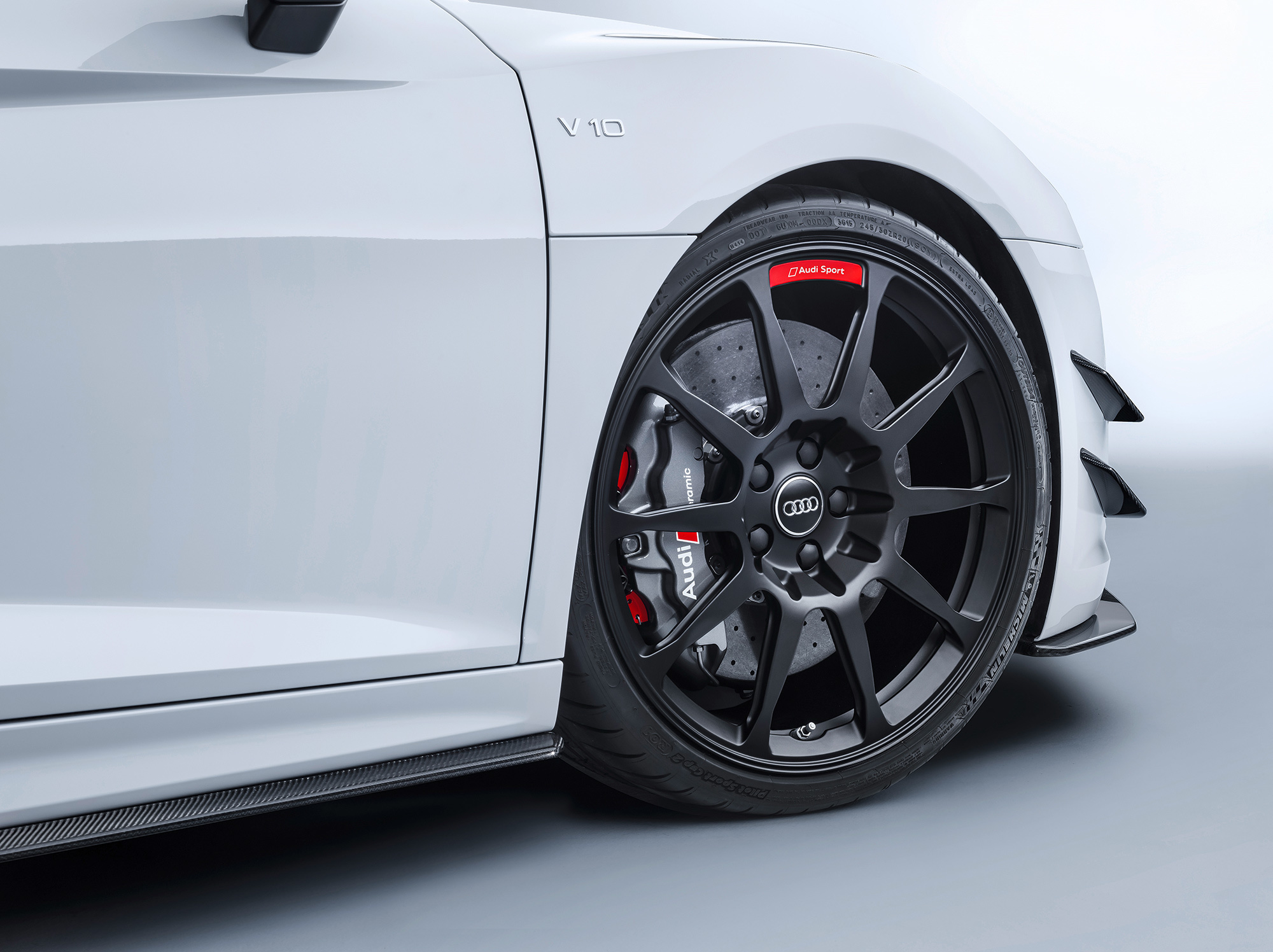 Для всех версий Audi TT и R8 предлагается винтовая подвеска с двумя или тремя регулировками, а на полноприводные «тэ-тэшки» дополнительно ставят металлическую растяжку-усилитель на задней оси. Плюс в пакете по умолчанию идут 20-дюймовые кованые колёса чёрного цвета. Благодаря им экономия веса на TT, TTS и TT RS может достигать 7,2 кг, а на «эр-восьмой» ― до восьми килограммов. Немцы доработали и тормоза: обеим моделям улучшили их охлаждение, поставили облегчённые колодки с титановым корпусом (в случае с R8 минус килограмм от базовых) и более цепкими фрикционными накладками. Это касается как обычных тормозов, так и углеродокерамических.