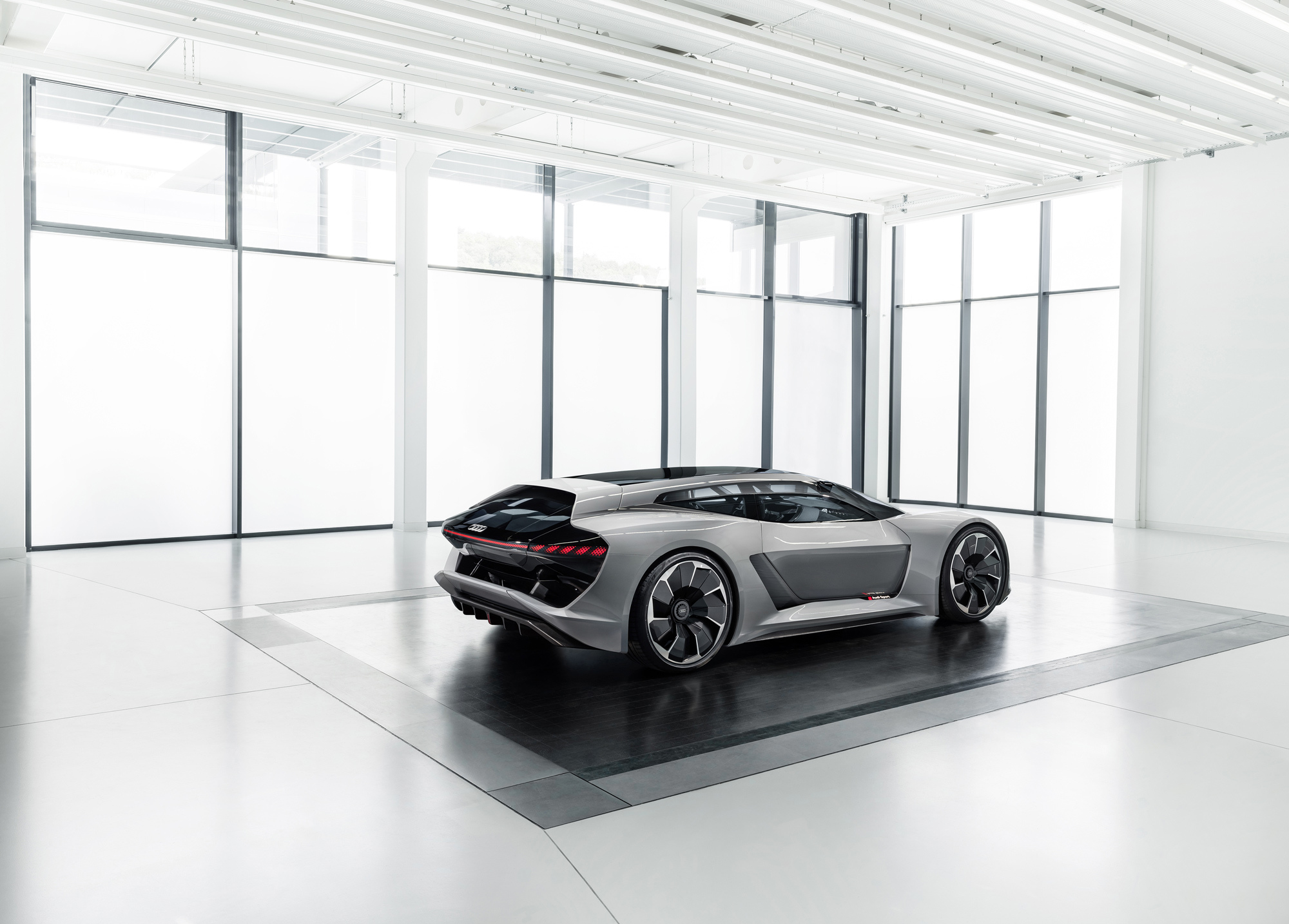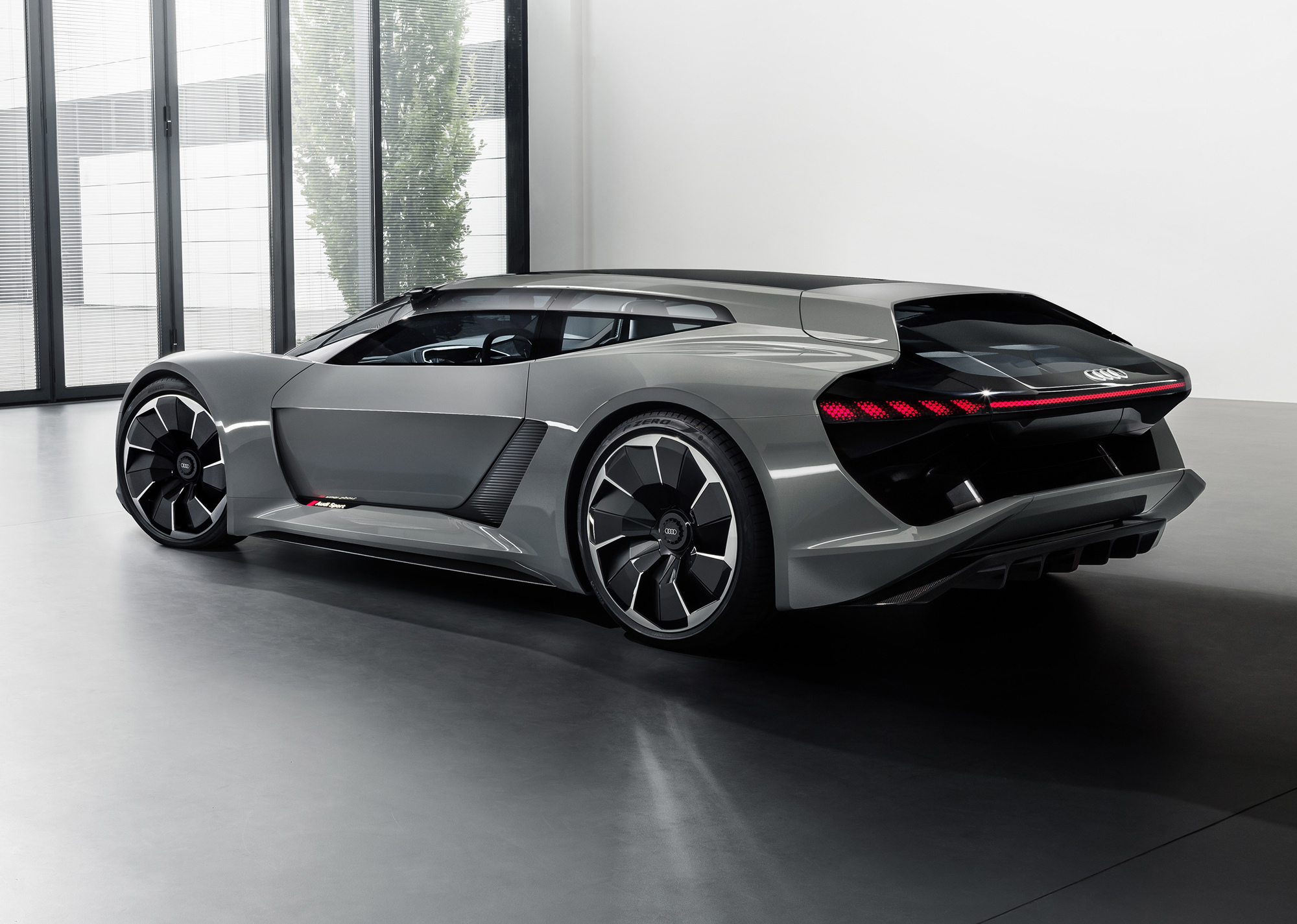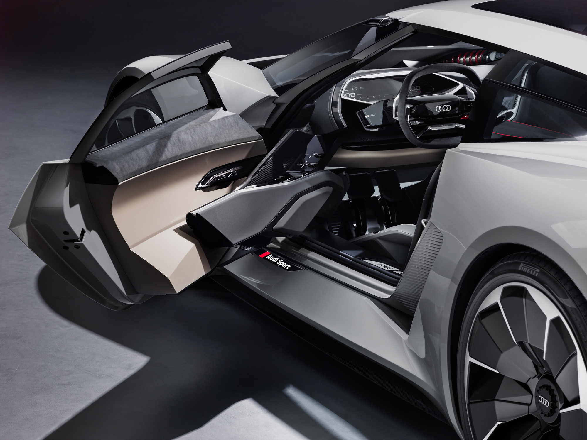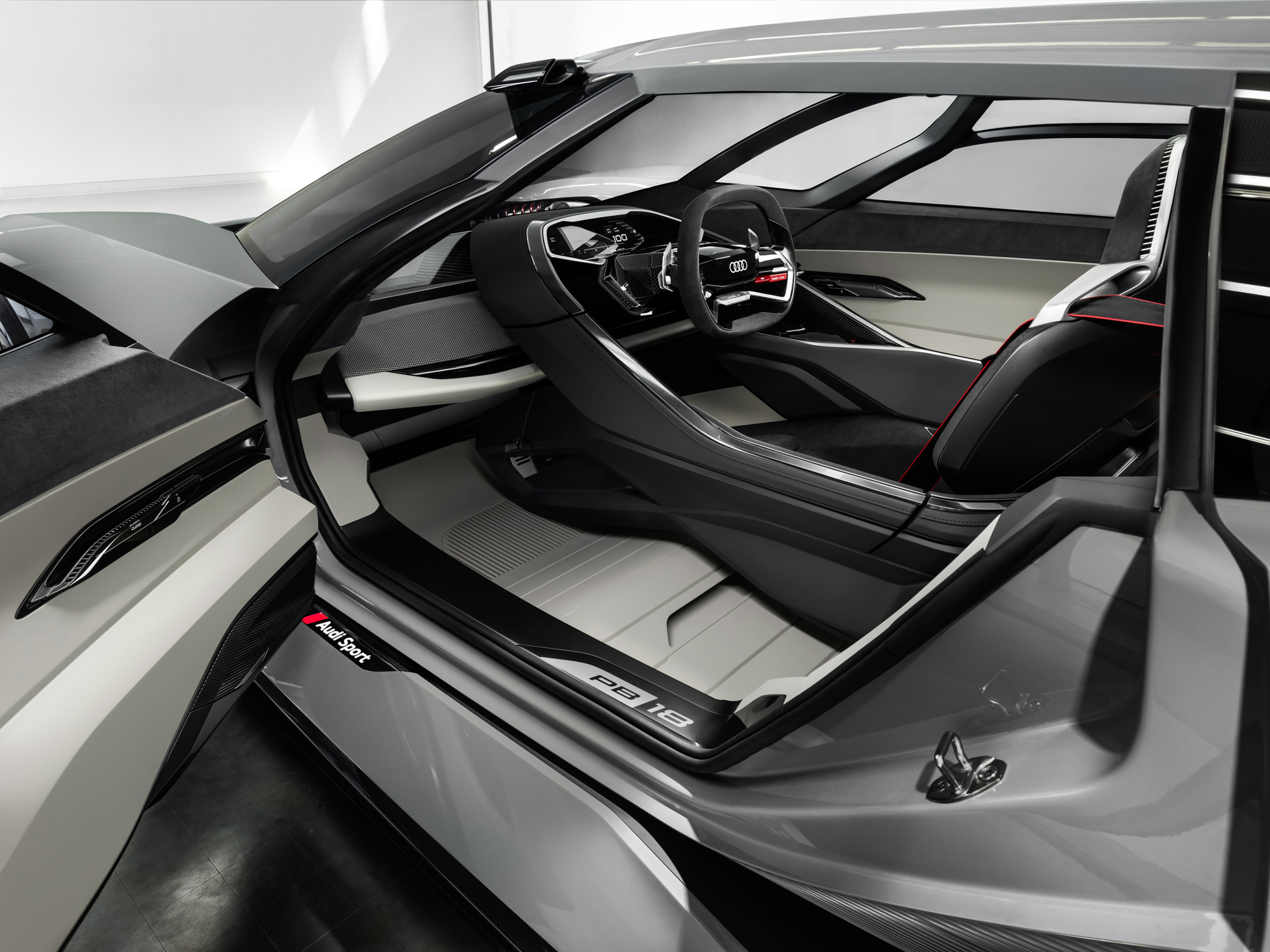 То ли спорткупе, то ли хэтчбек, то ли трёхдверный универсал, в общем PB18 e-tron, впитал опыт, полученный при разработке мелкосерийного спорткара R8 e-tron и прототипа Audi F12, череды электрических концептов вроде хэтчбека Aicon или спортивного e-tron Vision Gran Turismo, а в особенности — лемановского гибридного спортпрототипа Audi R18. Последний отмечен особо: именно от него в названии нового концепта цифра 18 (это вовсе не год), ну а PB — это Pebble Beach, место премьеры.